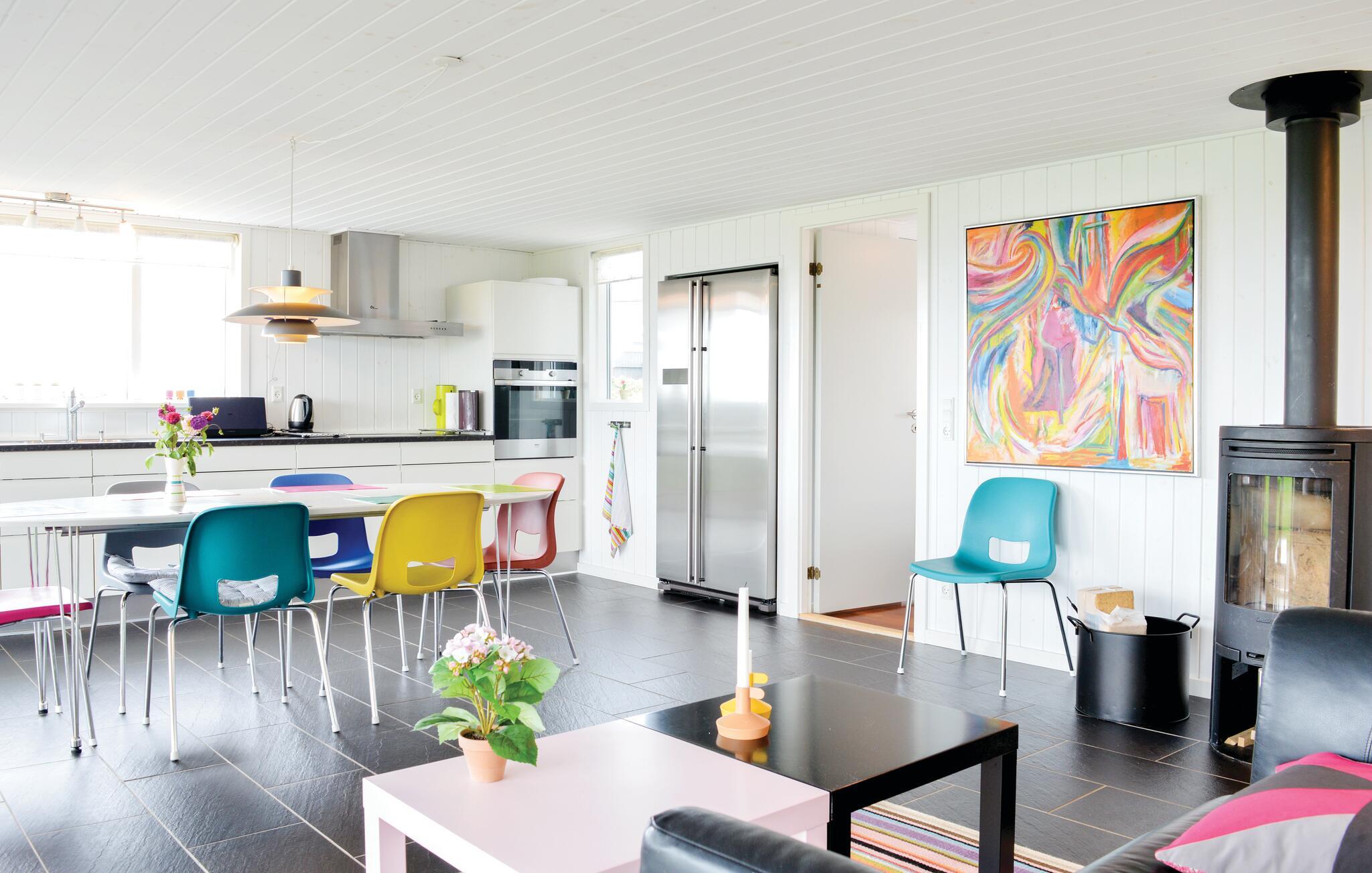 Kun få skridt fra Ringkøbing Fjord byder det indbydende hus velkommen og er med sine lyse, moderne indrettede værelser det perfekte sted til en afslappende stund ved havet. Find jer godt til rette med jeres nærmeste og tryll lækre feriemåltider frem i det åbne køkken, som I kan nyde sammen med en smuk udsigt til det fri gennem store vinduespartier. Efter en begivenhedsrig dag kan I sætte jer ned i siddeområdet og snakke længe, ??mens flammerne knitrer i brændeovnen.