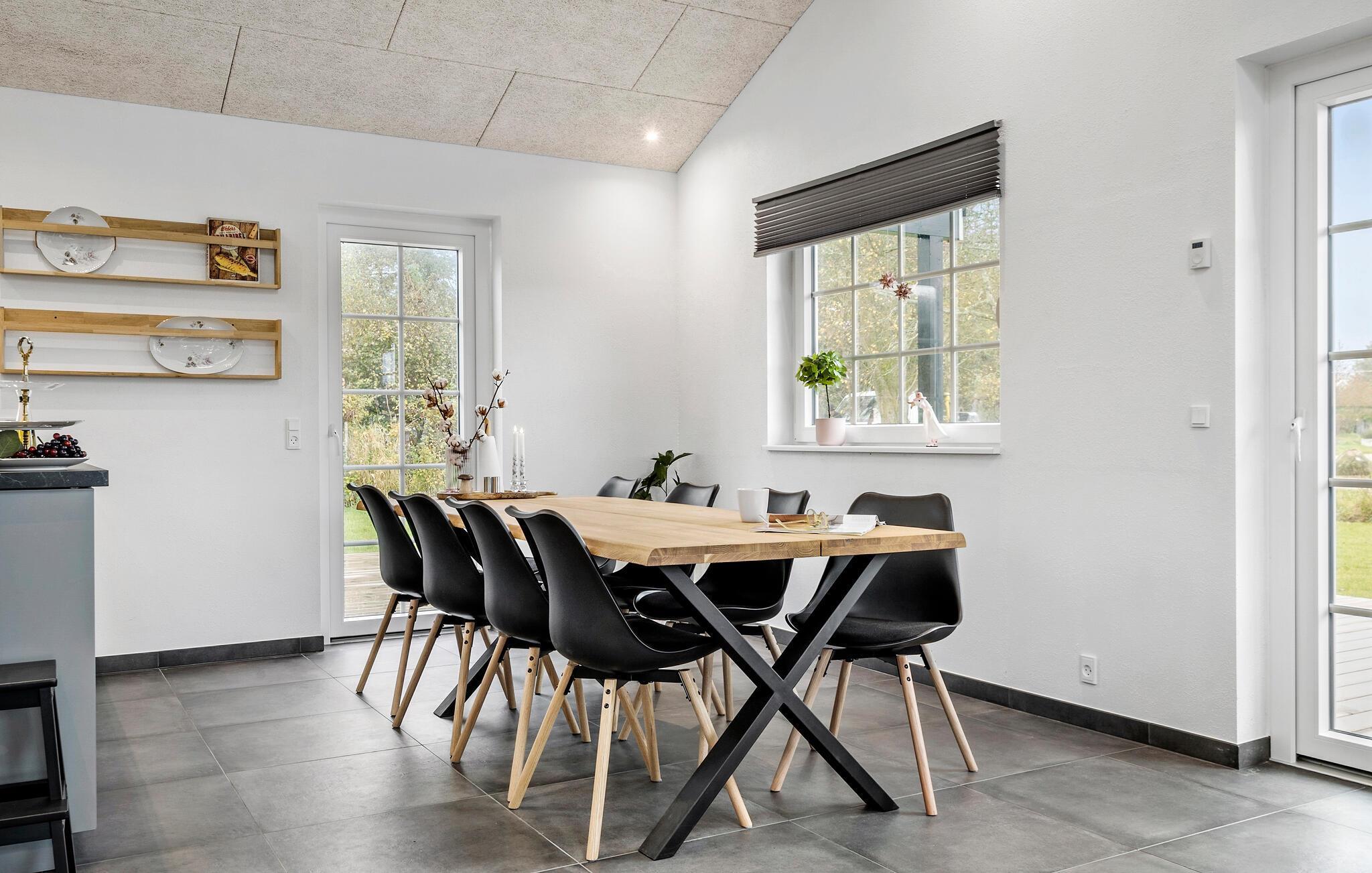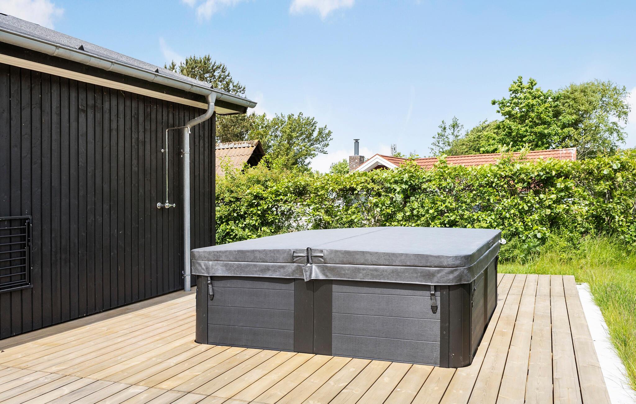 Kun en kort gåtur fra kysten i Bork Havn finder I jeres komfortable feriebolig med alt, hvad I behøver for en afslappende ferie. Start dagen med morgenmad på den rummelige træterrasse, hvor I kan nyde den friske luft og roen i omgivelserne. Om aftenen indbyder det luksuriøse udendørs spabad til afslapning. Læg hverdagen bag jer og forkæl jer selv med en pause.