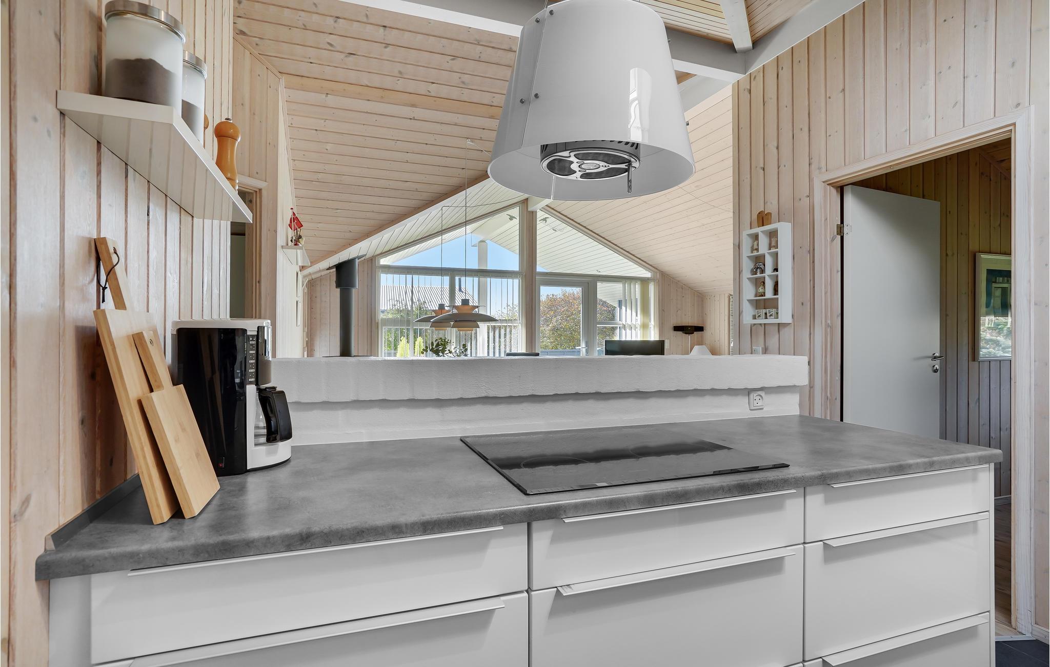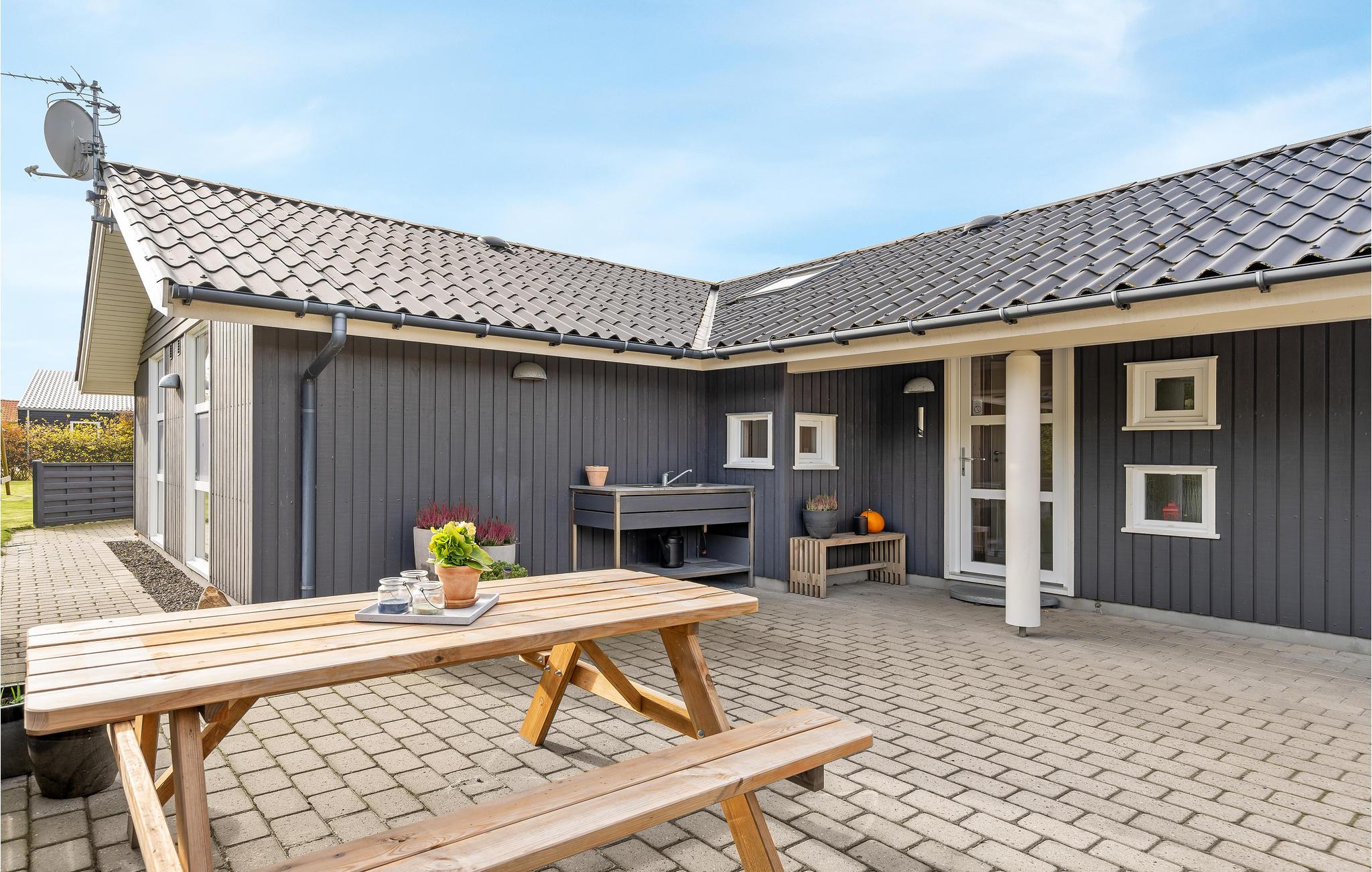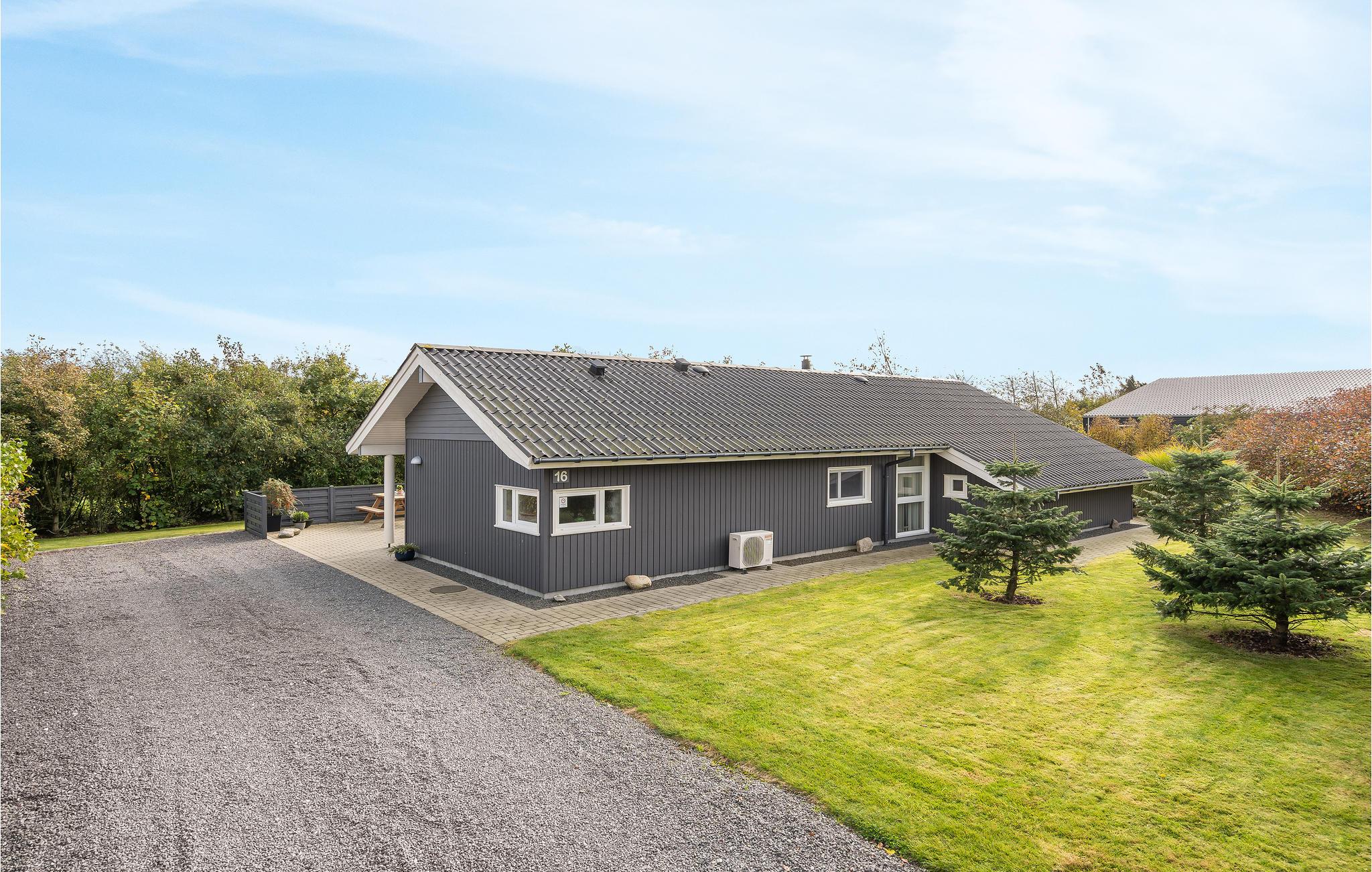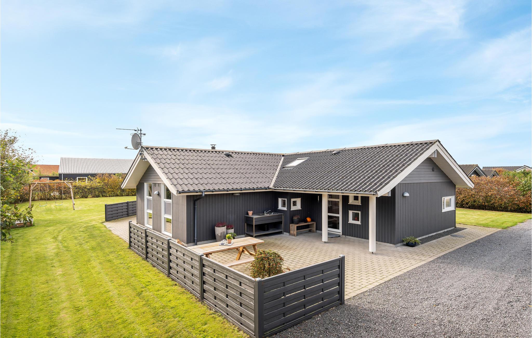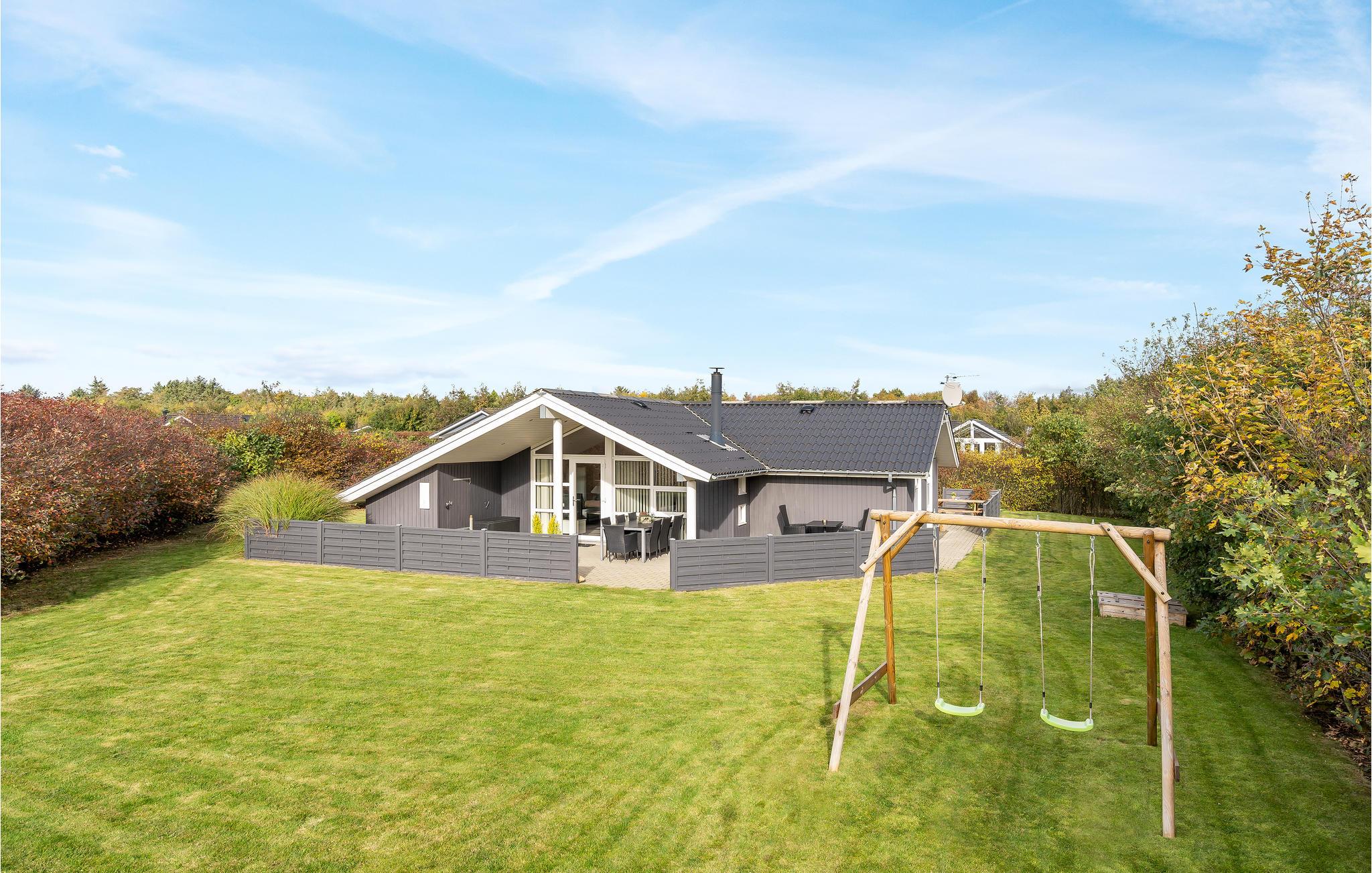 Dette lækre hus er godt udstyret med alt til en afslappet ferie. Huset ligger for enden af en lukket vej, helt uden trafikstøj. Huset ligger på en ugeneret grund med læ, trods det at huset er fra 2009. Der er rig mulighed for at finde sol og læ på en af de tre terrasser. Huset ligger nær Fahl kro, vikinge-landsbyen og kun 800 meter fra fjorden. Der er rig mulighed for en gå, løbe- eller cykeltur i området. Blåbjerg mountainbike bane ligger kun 10 km væk. Det brusende Vesterhav ligger otte km væk.