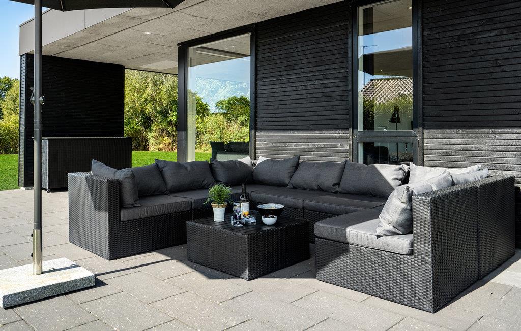 Hyggeligt sommerhus nær Bork Vikingehavn med stor terrasse, spa, sauna og moderne faciliteter til en afslappende ferie.
