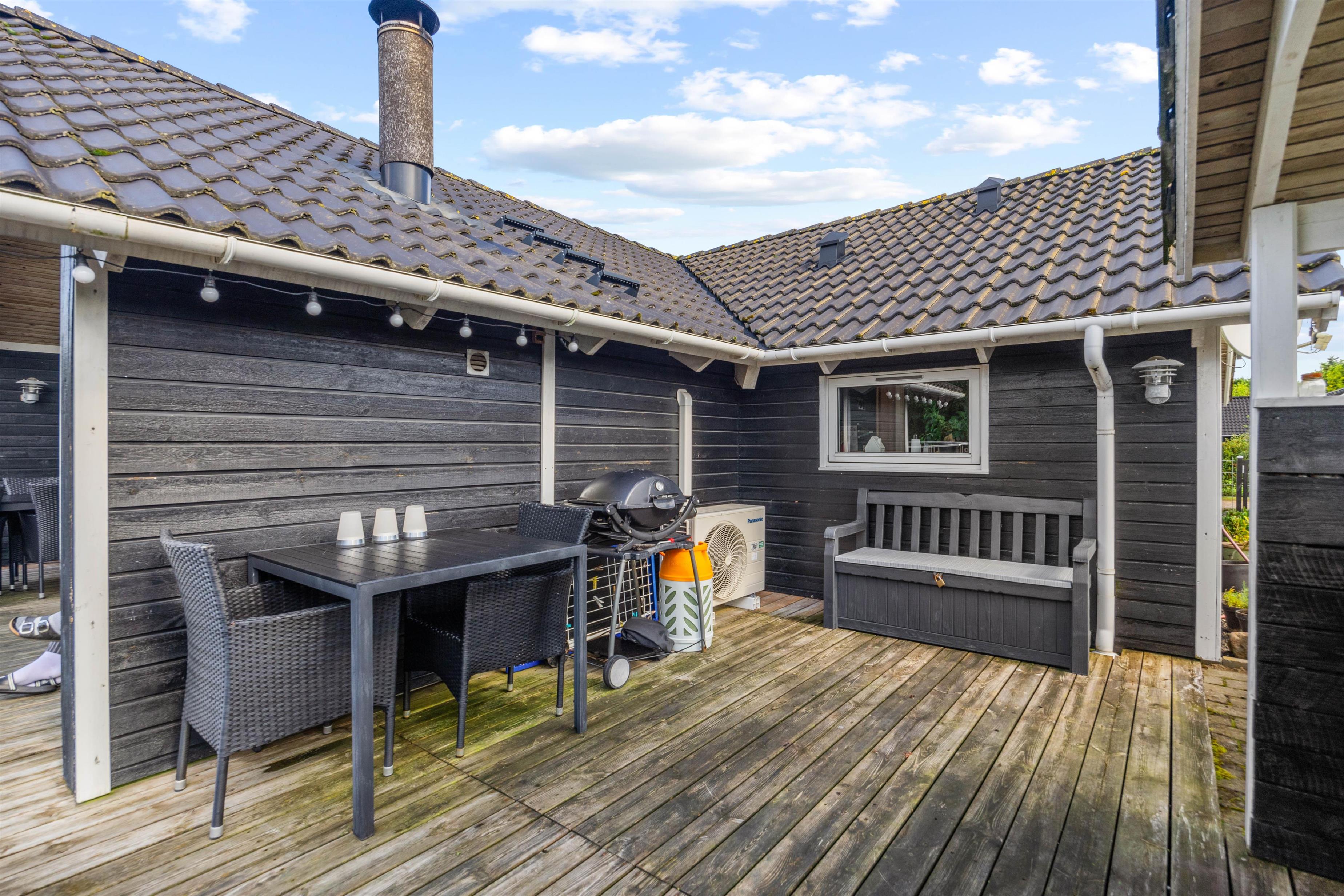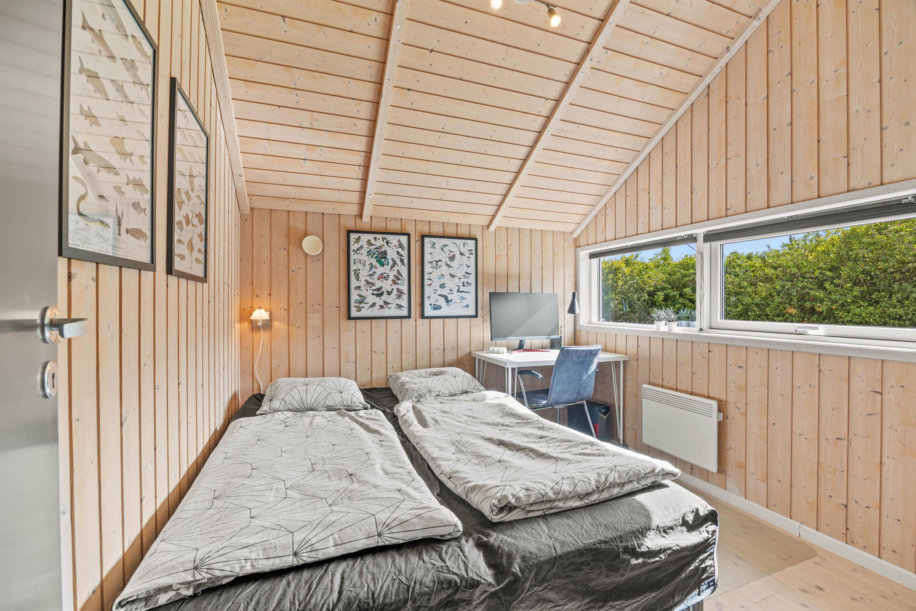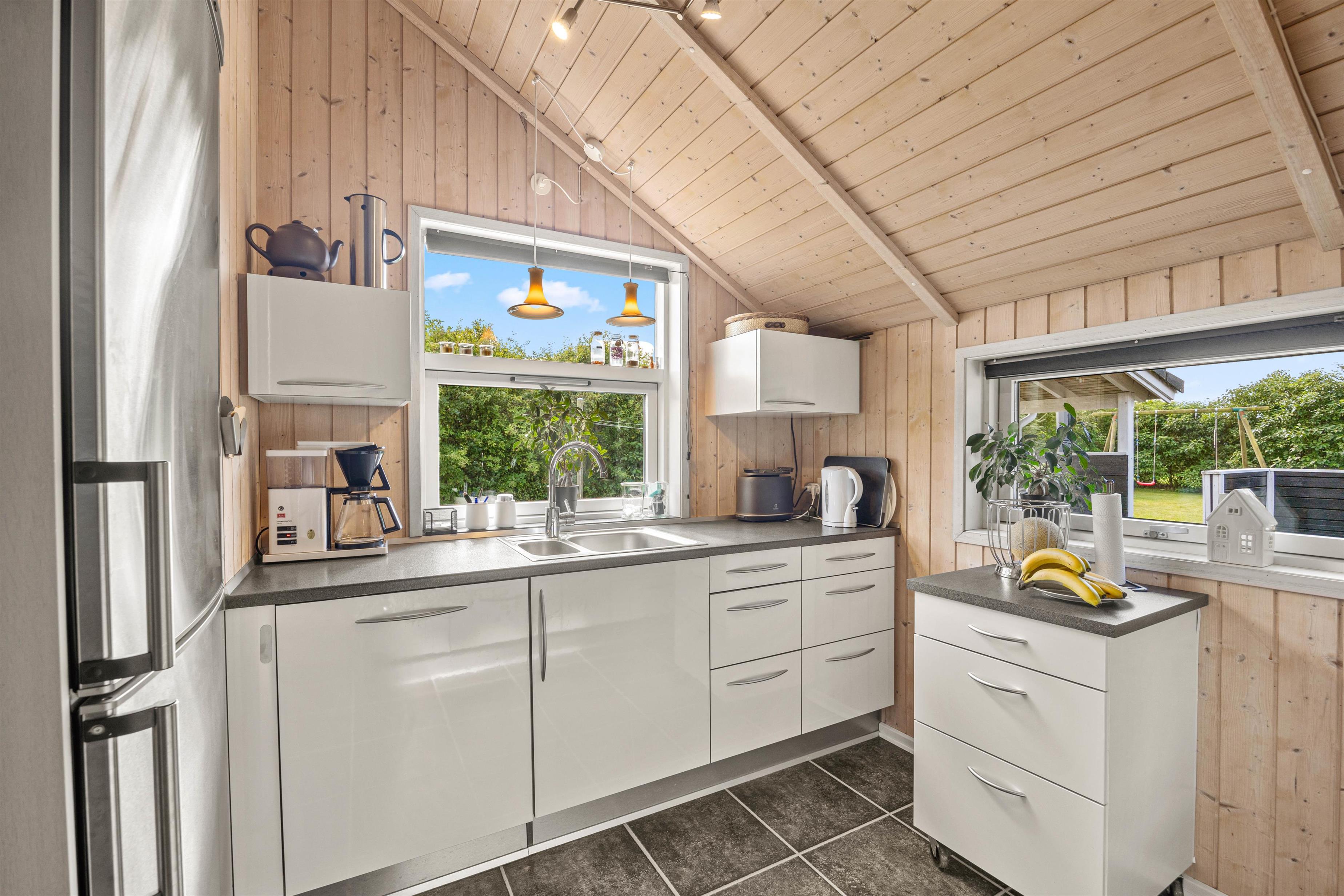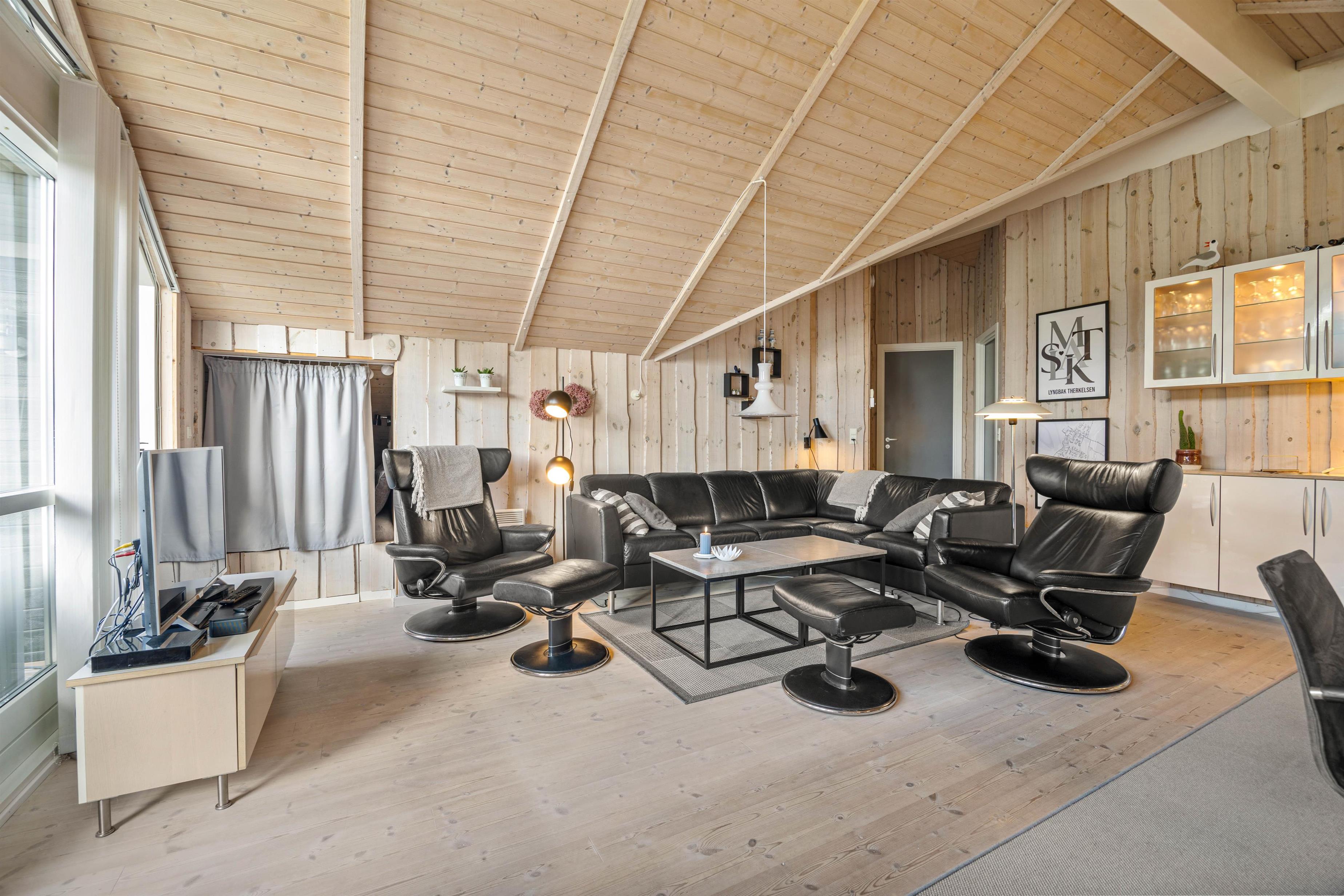 Indendørs byder sommerhuset på 3 rummelige og gode soveværelser, der alle er indrettet med henblik på at sikre jer den bedste komfort. I kan nyde hyggelige aftener foran den knitrende brændeovnen, hvor flammerne skaber en varm og afslappet sommerhus atmosfære. I kan streame jeres yndlingsindhold fra telefonen og direkte op på fjernsynet via Chromecasten og nyde mange dejlige stunder indendørs. Sommerhuset er også udstyret med en effektiv og energibesparende luft-til-luft varmepumpe, der sørger for et optimalt indeklima året rundt. Moderne faciliteter som opvaskemaskine, vaskemaskine og tørretumbler er til jeres rådighed, hvilket gør ferien lettere.