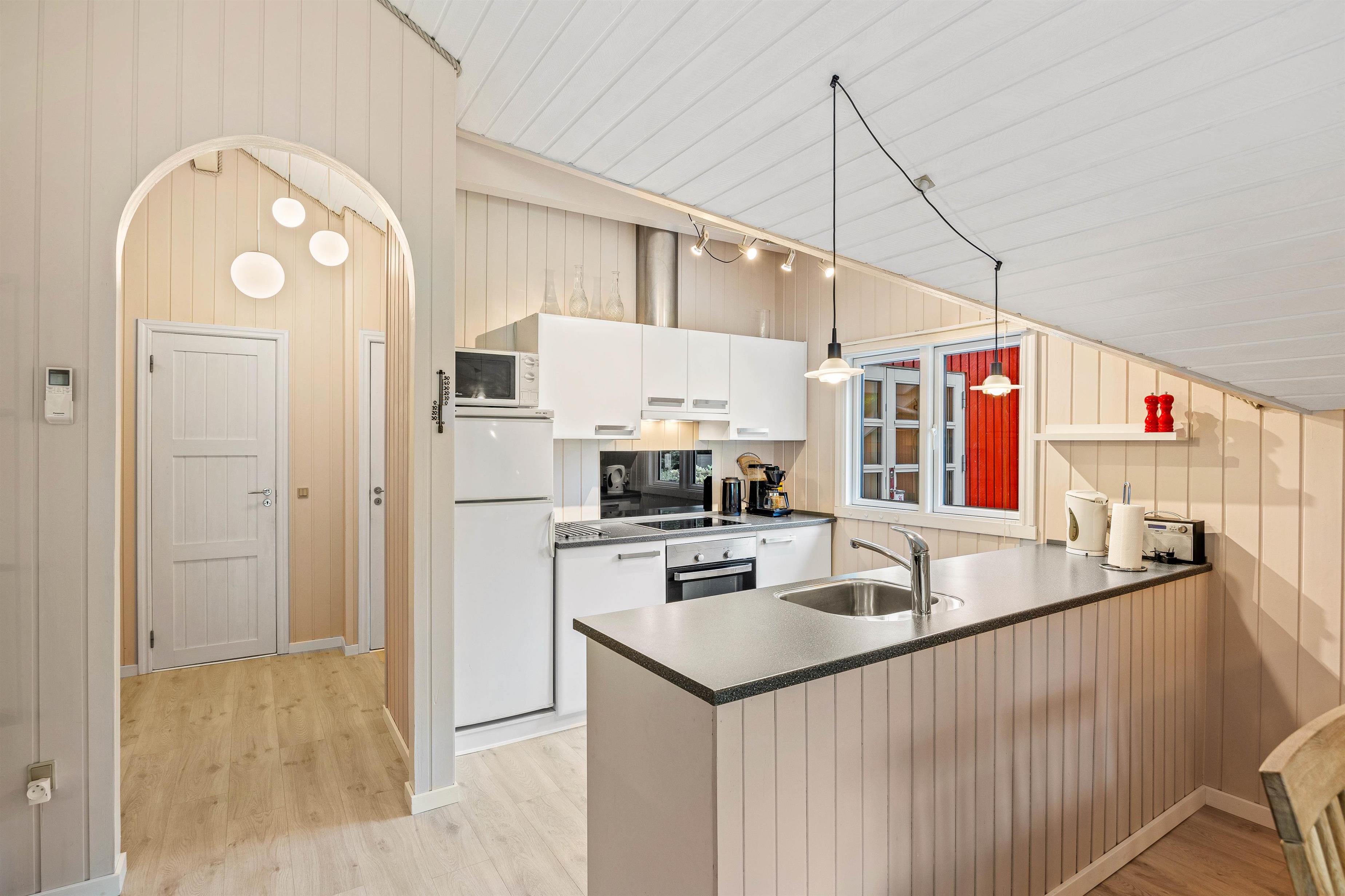 Køkkenet i sommerhuset er veludstyret med en opvaskemaskine, som letter oprydningen, så I hurtigt kan komme tilbage til hyggen eller ud på dagens eventyr uden at bekymre jer om opvasken. I den hyggelige stue finder I en brændeovn, der skaber en varm og indbydende atmosfære, perfekt til kølige aftener. Derudover er sommerhuset udstyret med en energivenlig varmepumpe, der sikrer behagelige temperaturer året rundt.