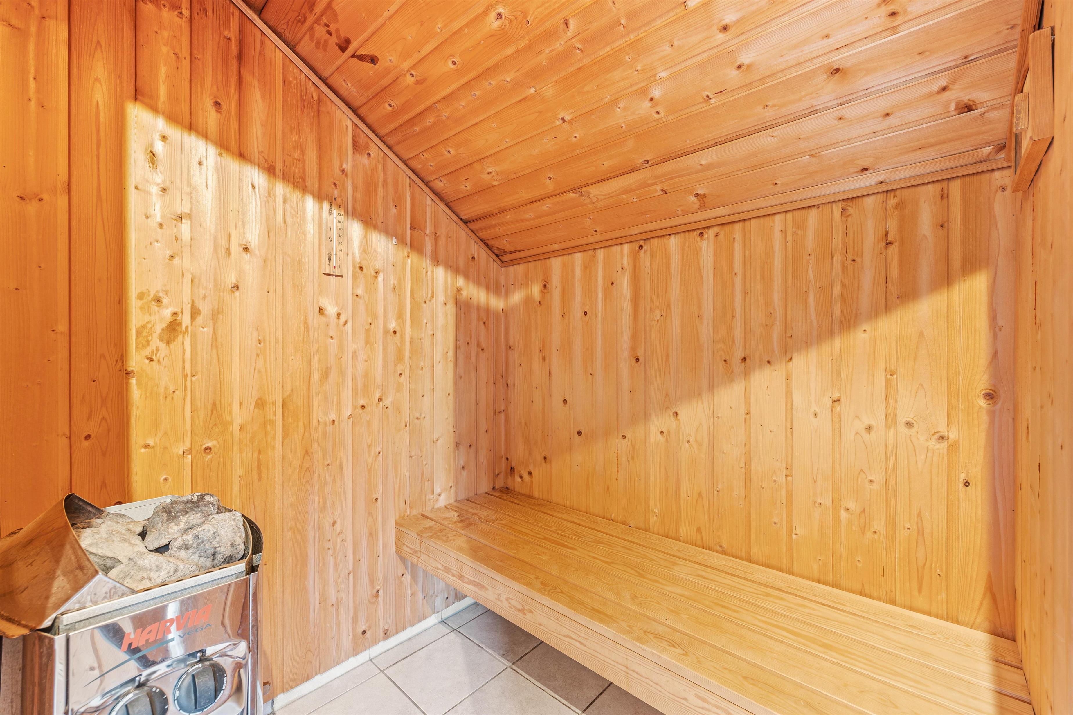 Sommerhuset rummer 3 soveværelser, hvoraf 2 er indrettet med dobbeltsenge og det tredje med to enkeltsenge, hvilket giver rigelig plads til en god nats søvn for alle. Badeværelset er designet til afslapning, med gulvvarme, sauna og tømmespa, hvilket giver mulighed for at lade op og virkelig nyde ferien. Derudover er der et gæstetoilet med en praktisk vaskemaskine, som gør det nemt at holde styr på garderoben under hele jeres ophold.