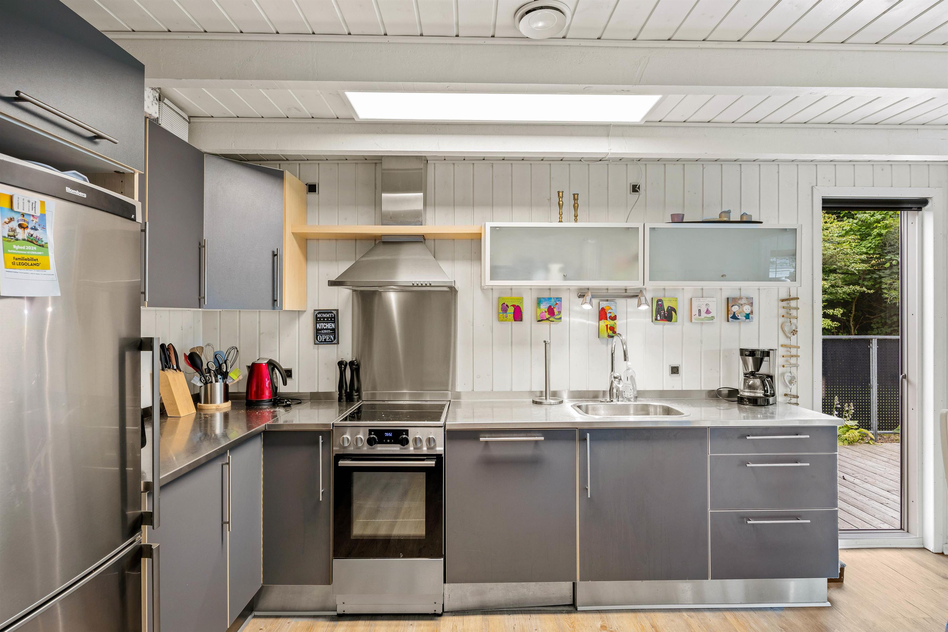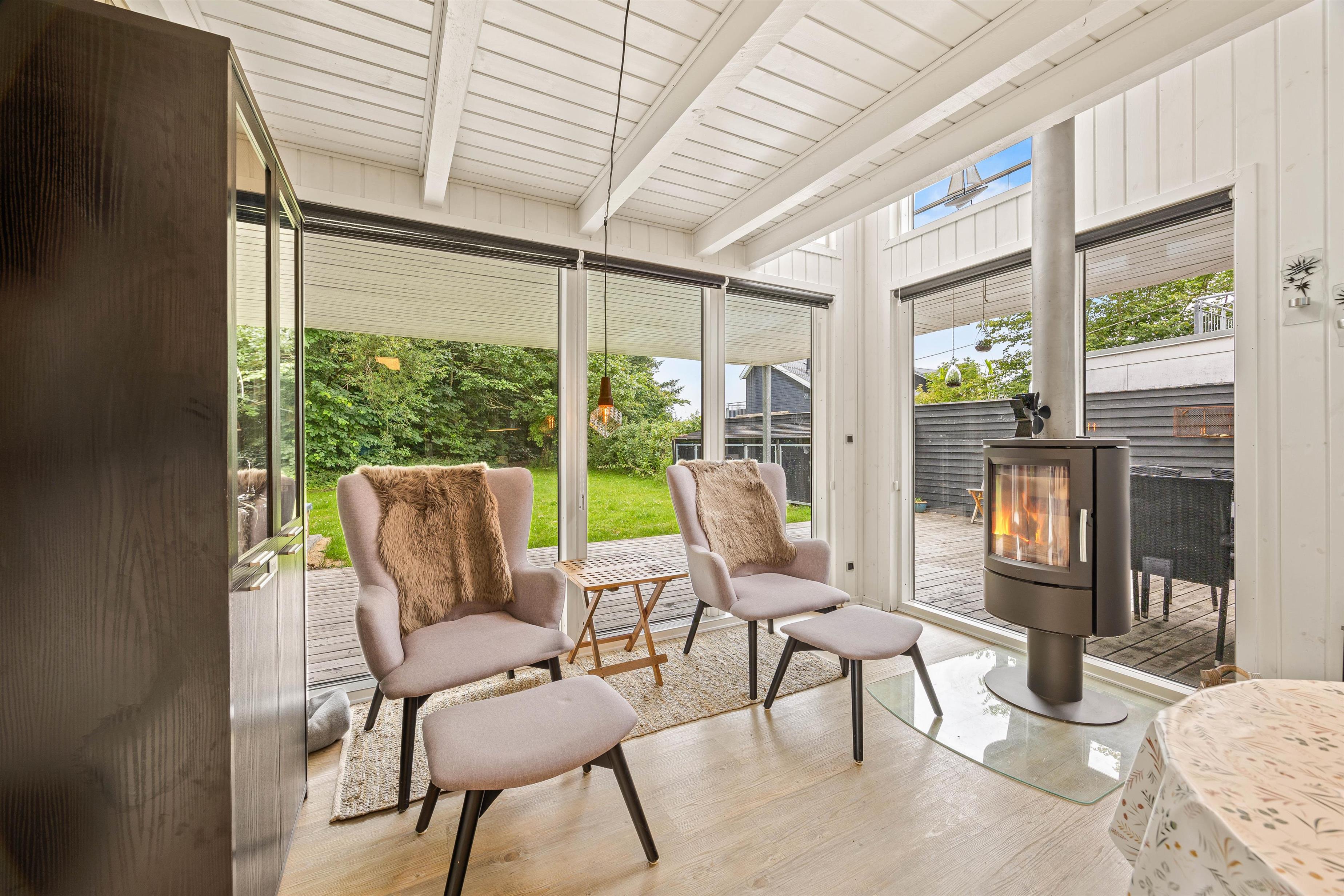Det lyse sommerhus er fordelt på to etager og byder på masser af plads til hyggelige stunder. Store vinduer sørger for, at der strømmer naturligt lys ind, hvilket skaber en varm og indbydende atmosfære. I køkkenet slipper I for besværet med opvask takket være en opvaskemaskine, så I kan bruge mere tid på afslapning eller på at udforske havnebyen.