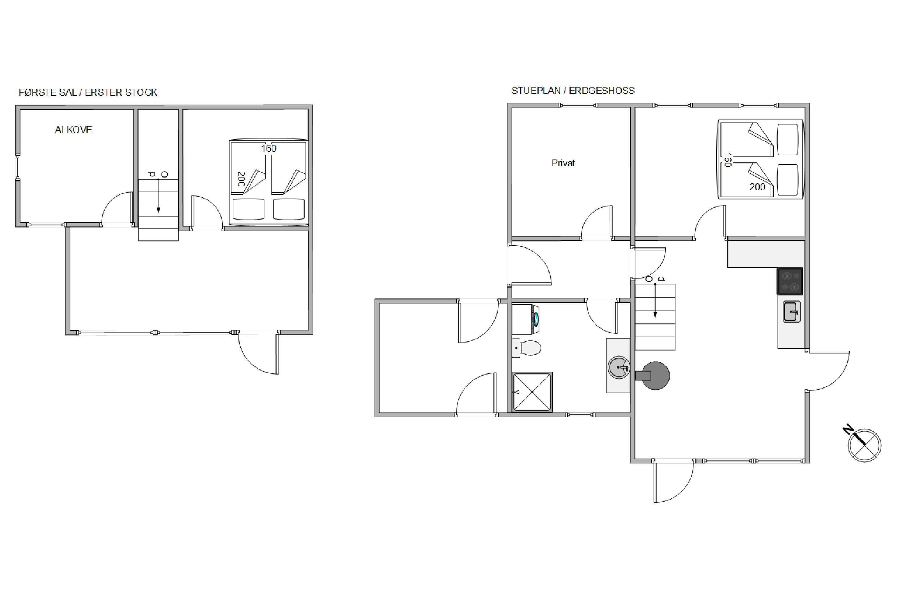 Sommerhuset rummer 2 soveværelser fordelt på begge etager, begge indrettet med komfortable senge. Derudover er der en hyggelig alkove med ekstra sovepladser. Et badeværelse med gulvvarme samt vaskemaskine og tørretumbler sørger for, at I kan holde tøjet rent og friskt under jeres ophold.
