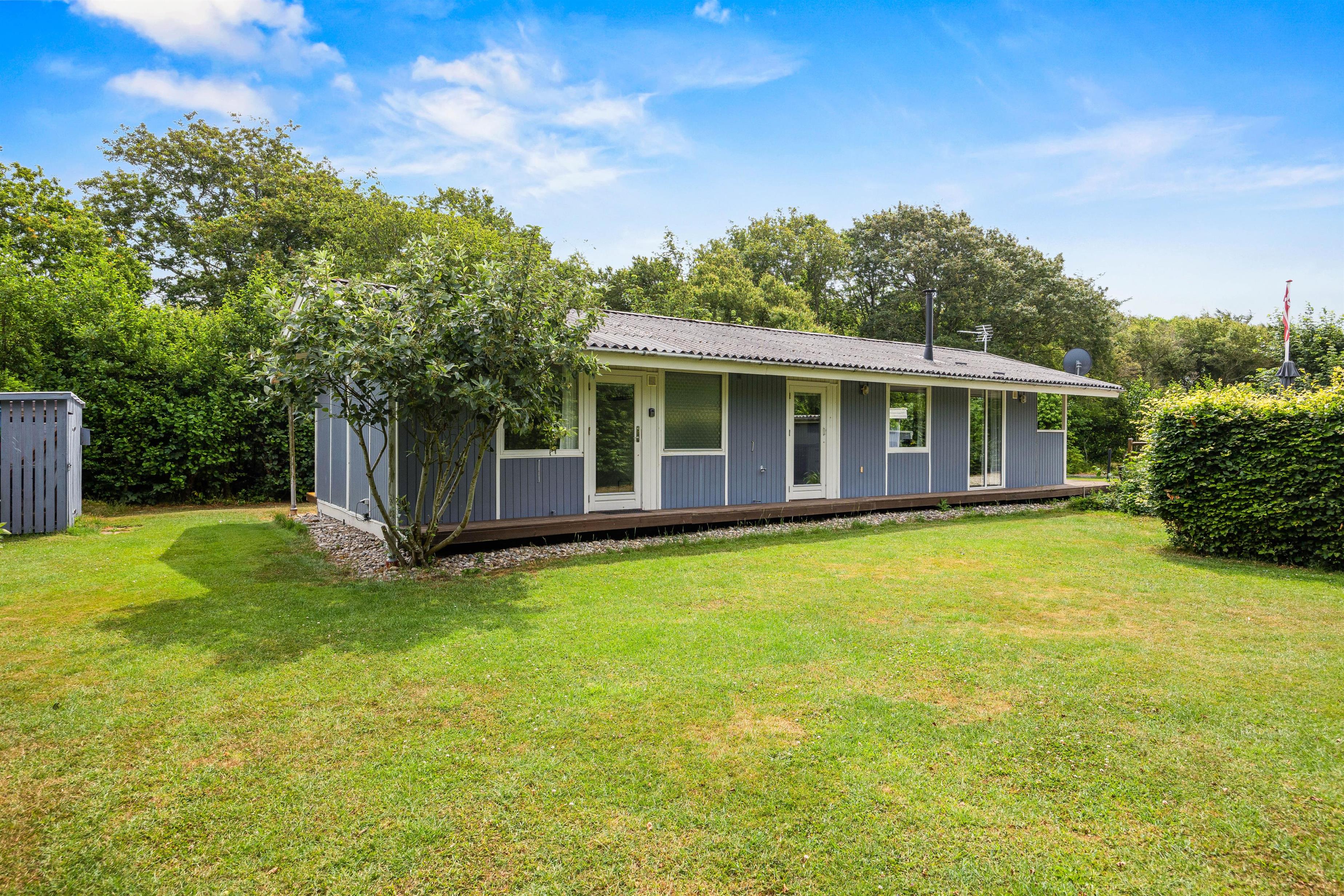 Udover den skønne terrasse, indbyder græsplænen til mange timers sjov for børn og voksne. Her kan I hygge jer med boldspil, kongespil eller måske stigegolf? Går I rundt i haven, vil I rundt om feriehuset også finde mange skønne hyggekroge mellem træer og buske.
