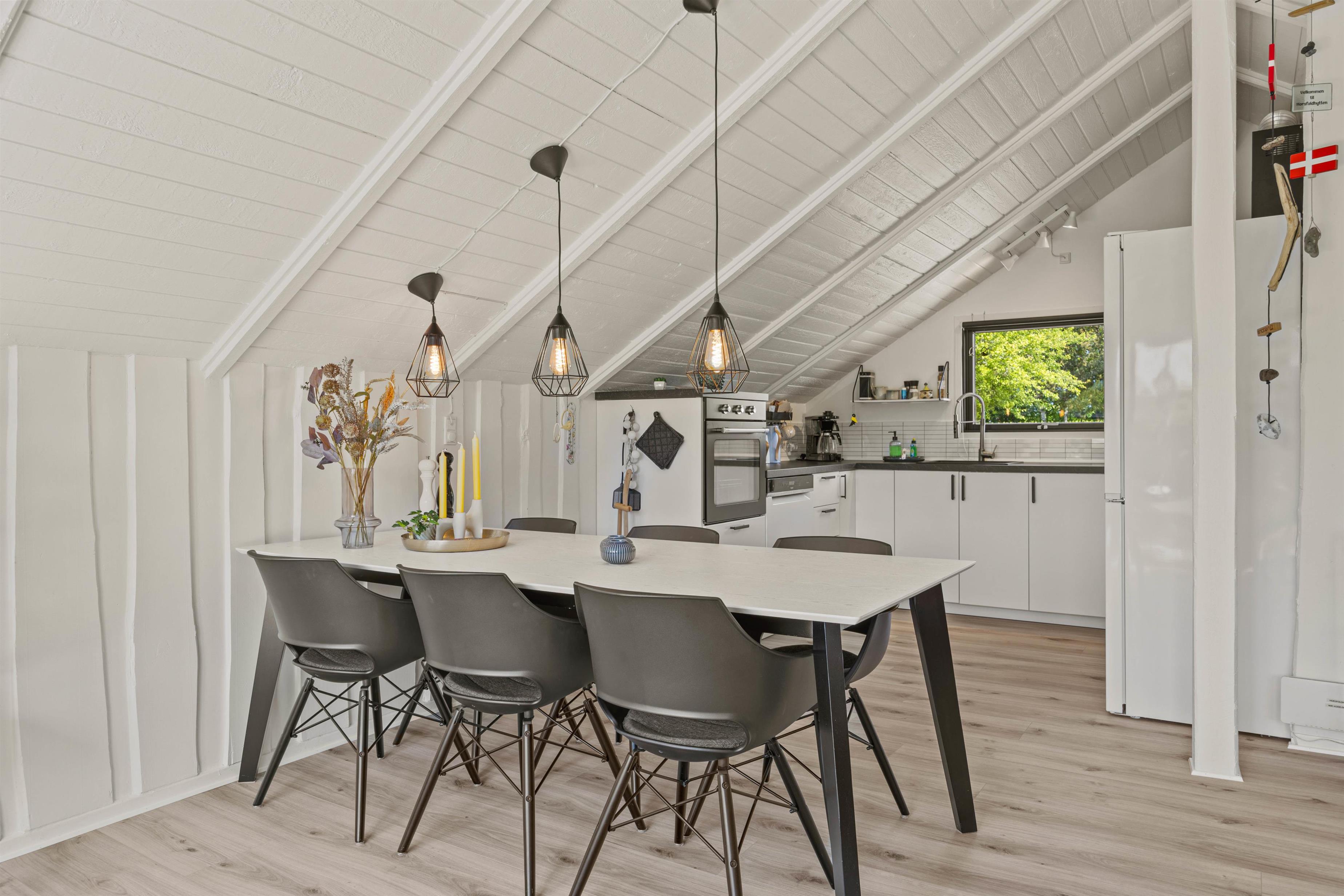 Allerede når I ankommer til sommerhuset på Horsfold 17 i Bork, vil I føle jer hjemme. I sommerhuset bliver I budt velkommen af en lys og hyggelig indretning med loft til kip og et skønt lysindfald, der tilsammen skaber en helt fantastisk ferieatmosfære.