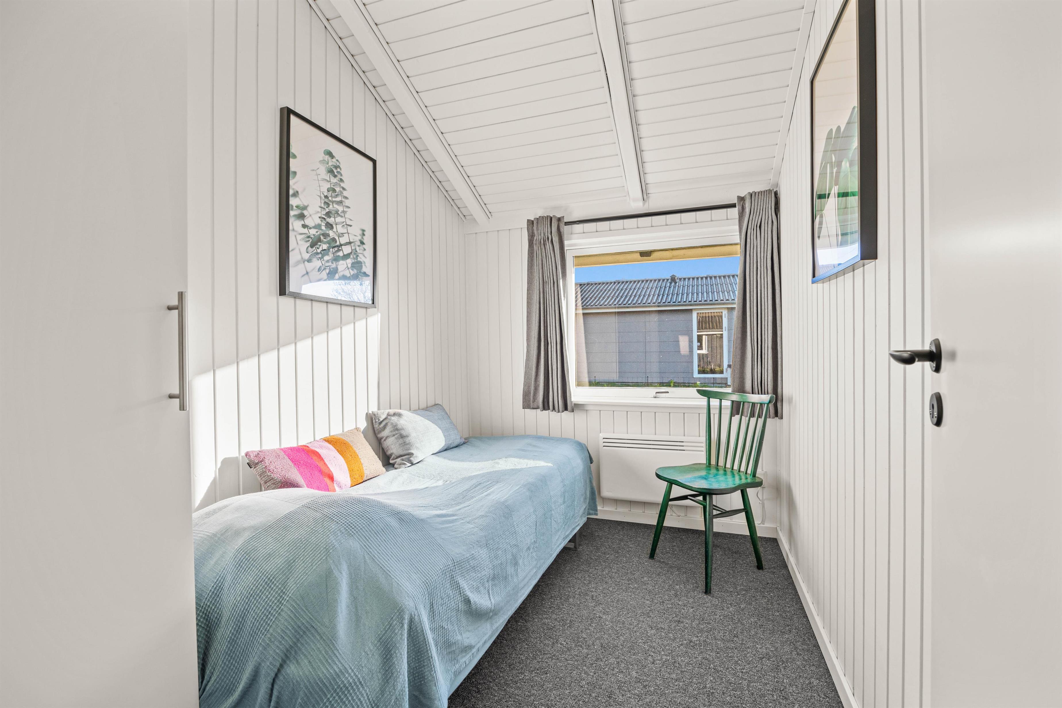 Badeværelset er udstyret med gulvvarme, bruser og spabad, hvor I kan lade sjælen slappe af. Sommerhuset har tre soveværelser med i alt fem enkeltsenge, hvilket giver gode muligheder for privatliv og hvile.