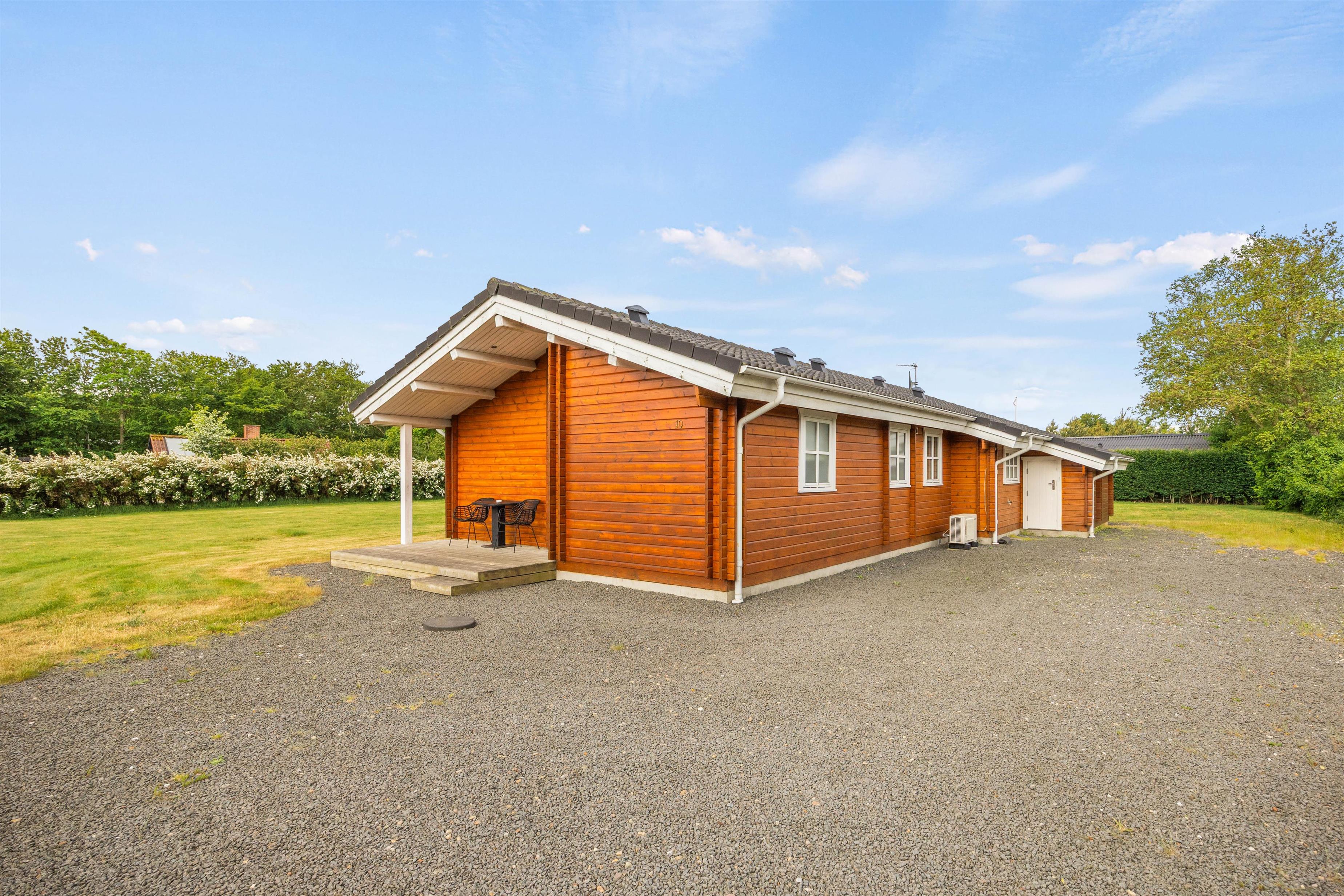 Sommerhuset byder på et betagende udemiljø, hvor den store plænegrund på 1378 m2 giver plads til både leg og afslapning i den friske luft. Her kan I lade børnene tumle frit, mens I selv nyder en stille stund under parasollen.