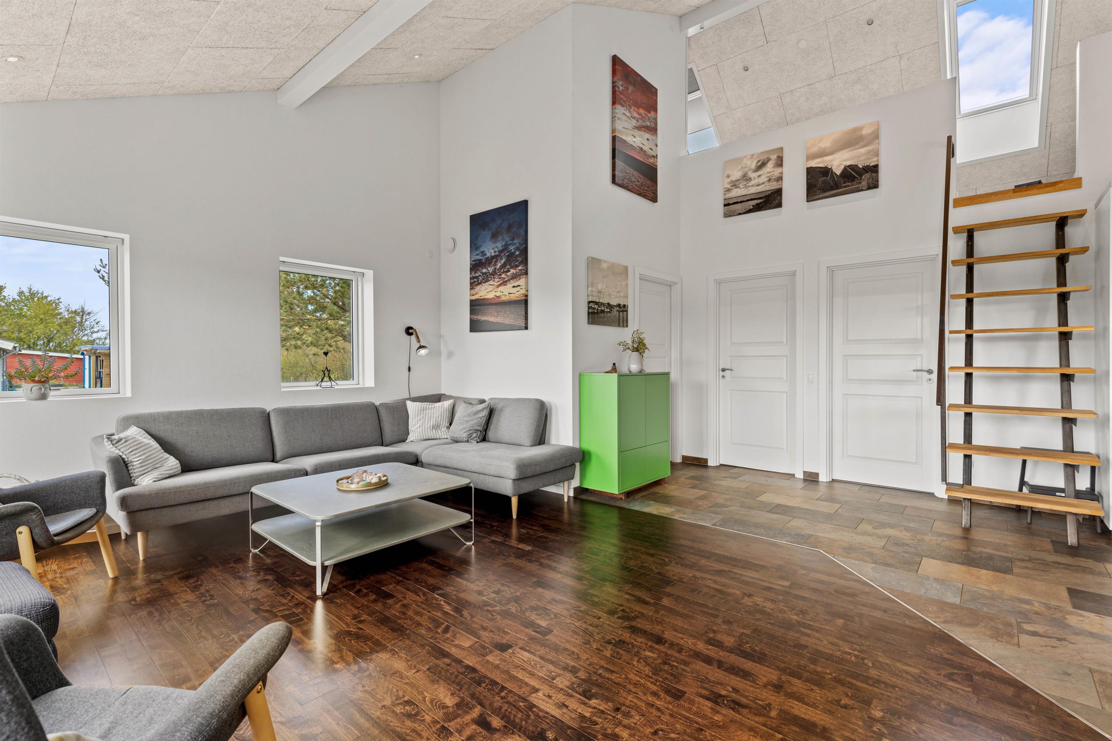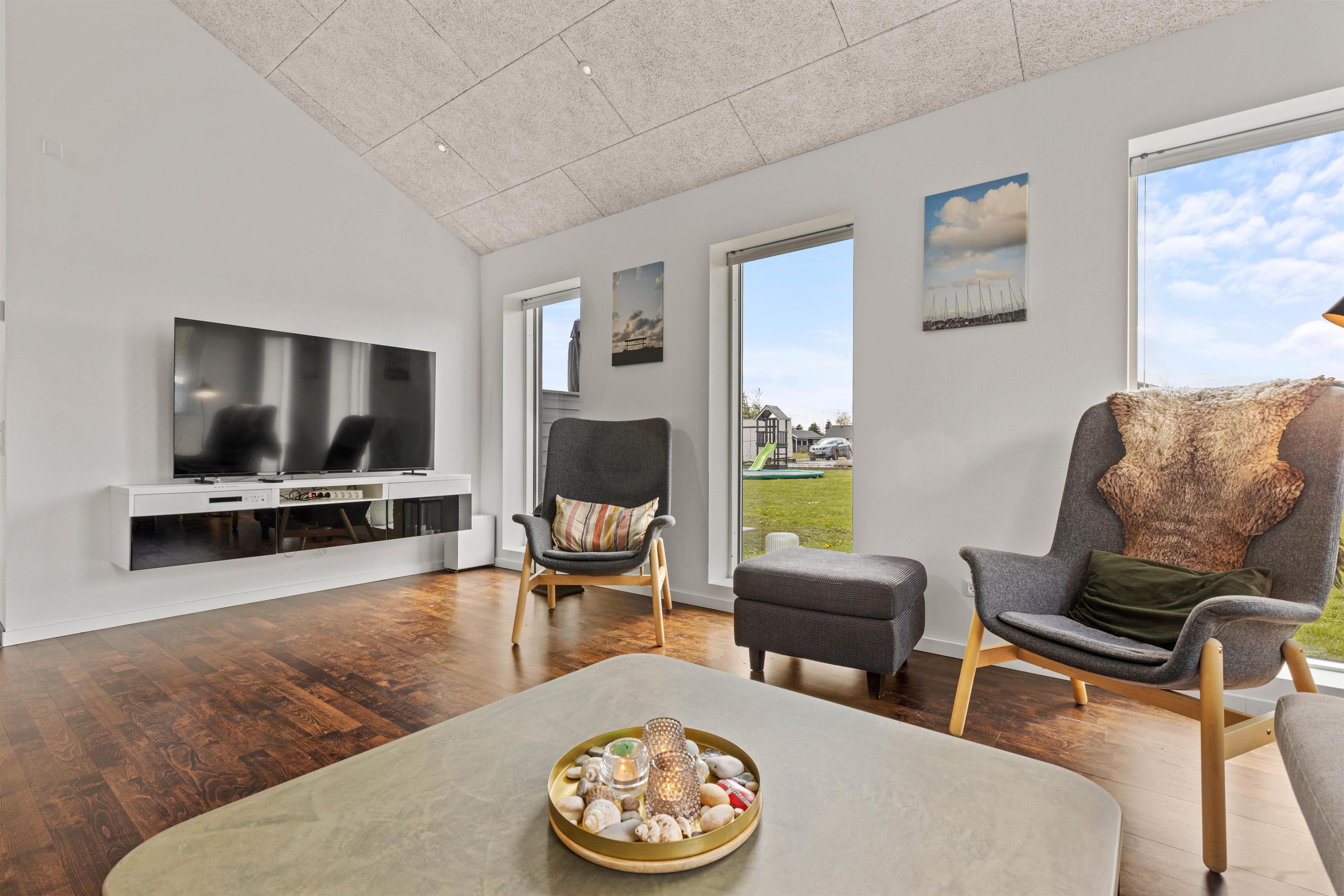 Sommerhuset byder jer velkommen med et stort og åbent køkkenalrum designet til at gøre jeres ophold både komfortabelt og mindeværdigt. Store vinduer lader masser af naturligt lys strømme ind i det lyst indrettede sommerhus, hvilket skaber en indbydende og varm atmosfære. Her kan samtalen flyde frit fra madlavningen i det veludstyrede køkken ned til den hyggelige stueafdeling. Her er der plads til hele familien, så I kan nyde hyggelige stunder med brætspil, film på Chromecast eller blot afslapning efter en dag fyldt med eventyr.