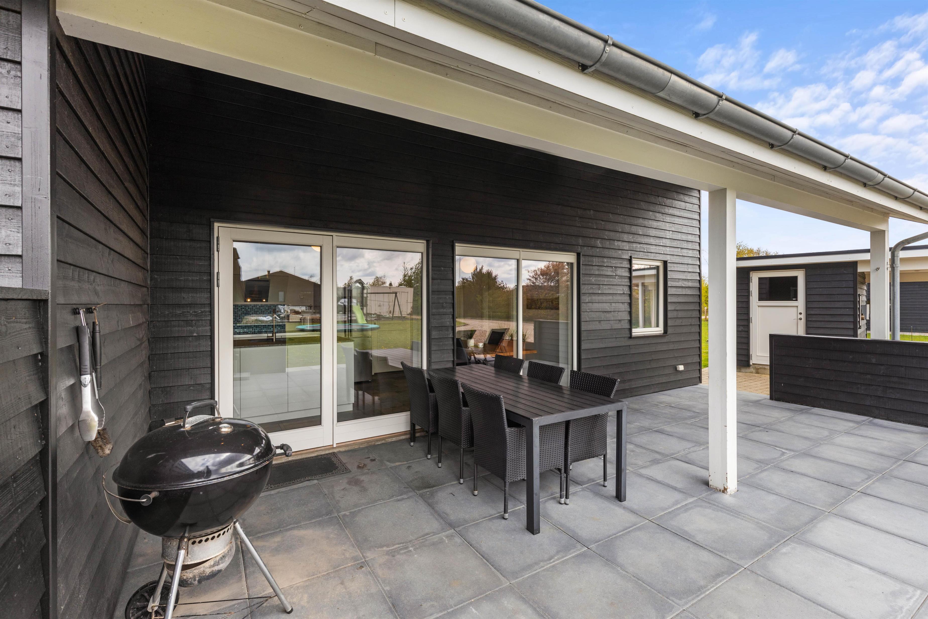 Udearealet er desuden et sandt mekka for de små feriegæster. På den velholdte græsplæne er der rigelig plads til både boldspil og kongespil, hvilket giver mulighed for mange timers leg og latter. Her står også et gyngestativ, en sandkasse og en trampolin, der sørger for, at børnene er underholdt og aktive. Ladestikket til el-bil sikrer, at jeres bil altid er opladet og klar til dagens udflugter.