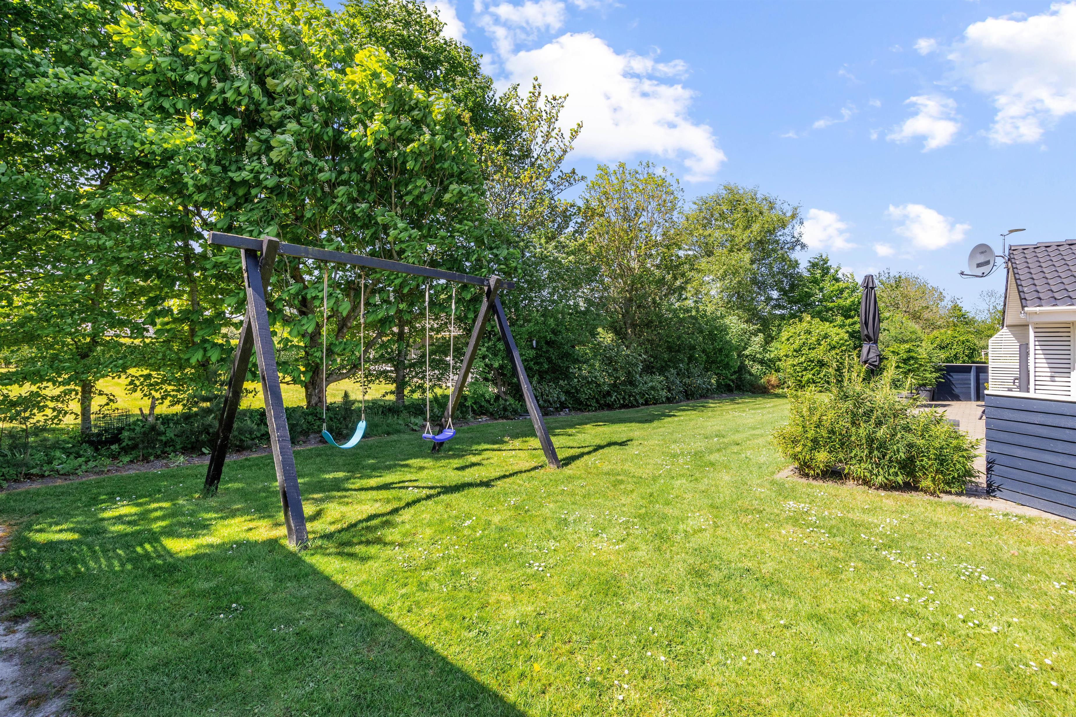 Med en grund på 1147m2 er der rigeligt med plads til udendørs aktiviteter. Haven byder på både en gynge og en sandkasse, perfekte til feriens yngste gæster, mens de voksne kan nyde en kop kaffe på den delvist overdækkede terrasse. I kan også samles i havemøblerne omkring et lækkert måltid eller nyde en grillaften i skumringen.