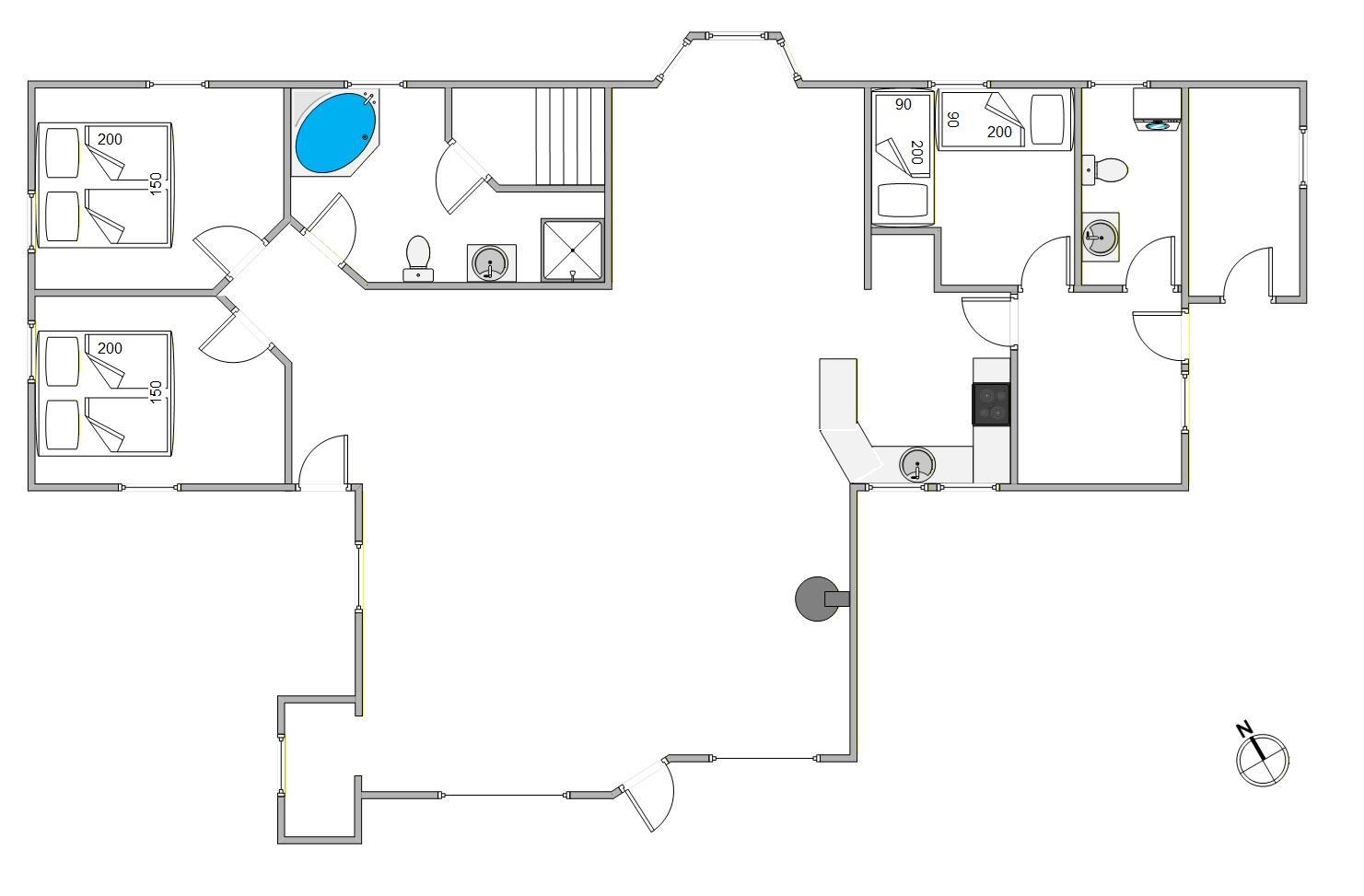 Sommerhuset kan prale af 3 velindrettede soverum, som tilsammen kan rumme 6 feriegæster. Det renoverede køkken er udstyret med opvaskemaskine, hvilket gør det nemt at klare opvasken efter et dejligt måltid, tilberedt i det fuldt udstyrede køkken eller på grillen udenfor. Efter en lang dag ved Vesterhavet kan I slappe af i den hyggelige stue, som også har en brændeovn, der sikrer hygge og varme på kølige aftener. I kan også slappe af i saunaen eller lade kroppen sænke sig i det varme vand i tømmespaen, og lade dagens oplevelser synke ind.