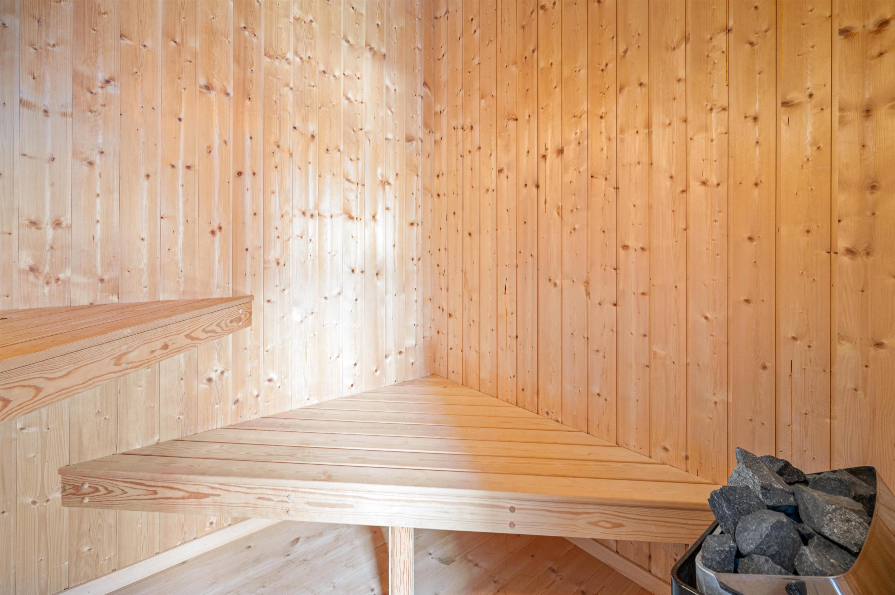 Efter en dag fyldt med sjove aktiviteter, kan I slappe af i saunaen eller tage en tur i tømmespabadet og få fornyet energi. Med både opvaskemaskine og vaskemaskine er det nemt at få klaret de daglige gøremål, og i stuen kan I nyde den varme, hyggelige stemning fra brændeovnen, når aftenen falder på.