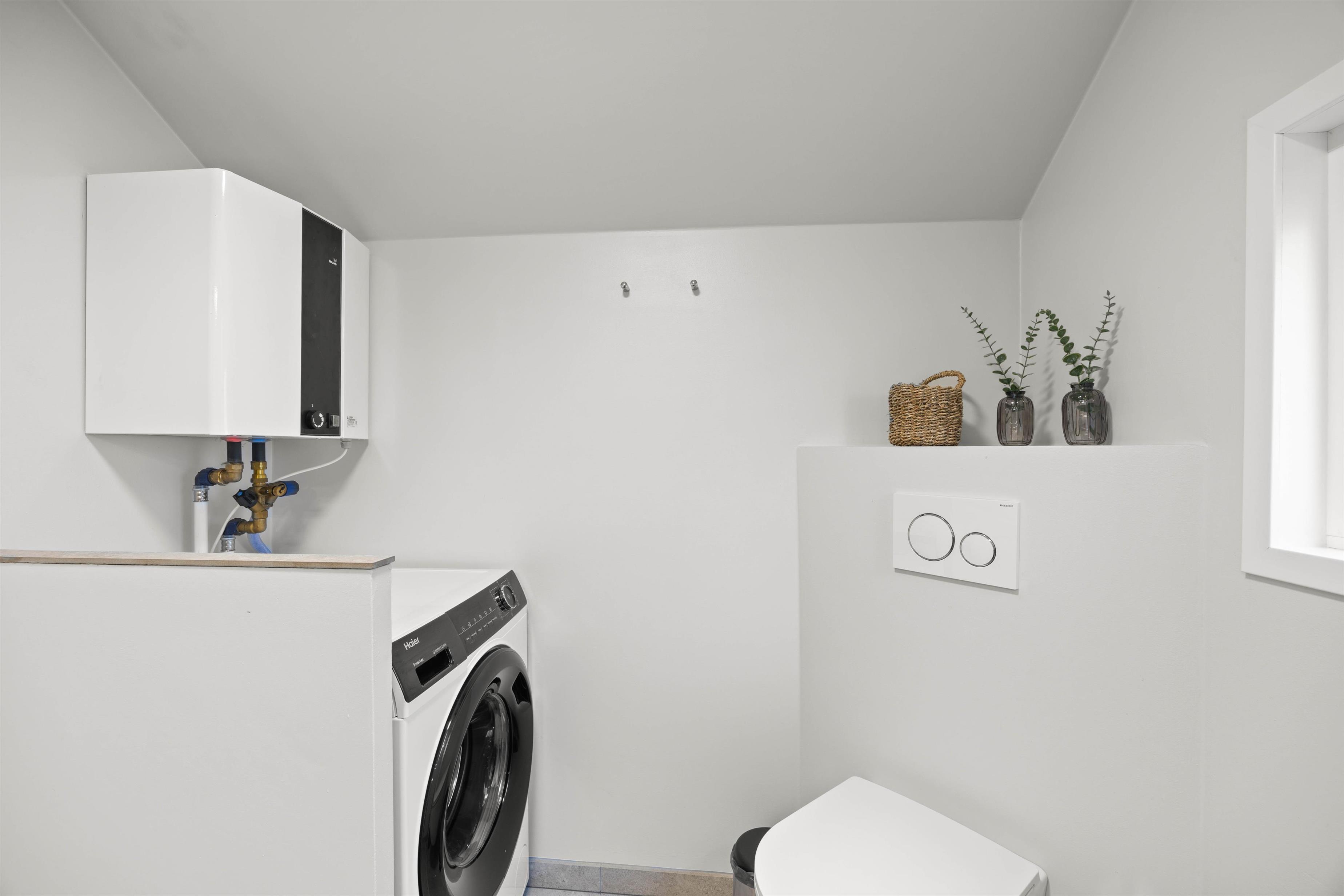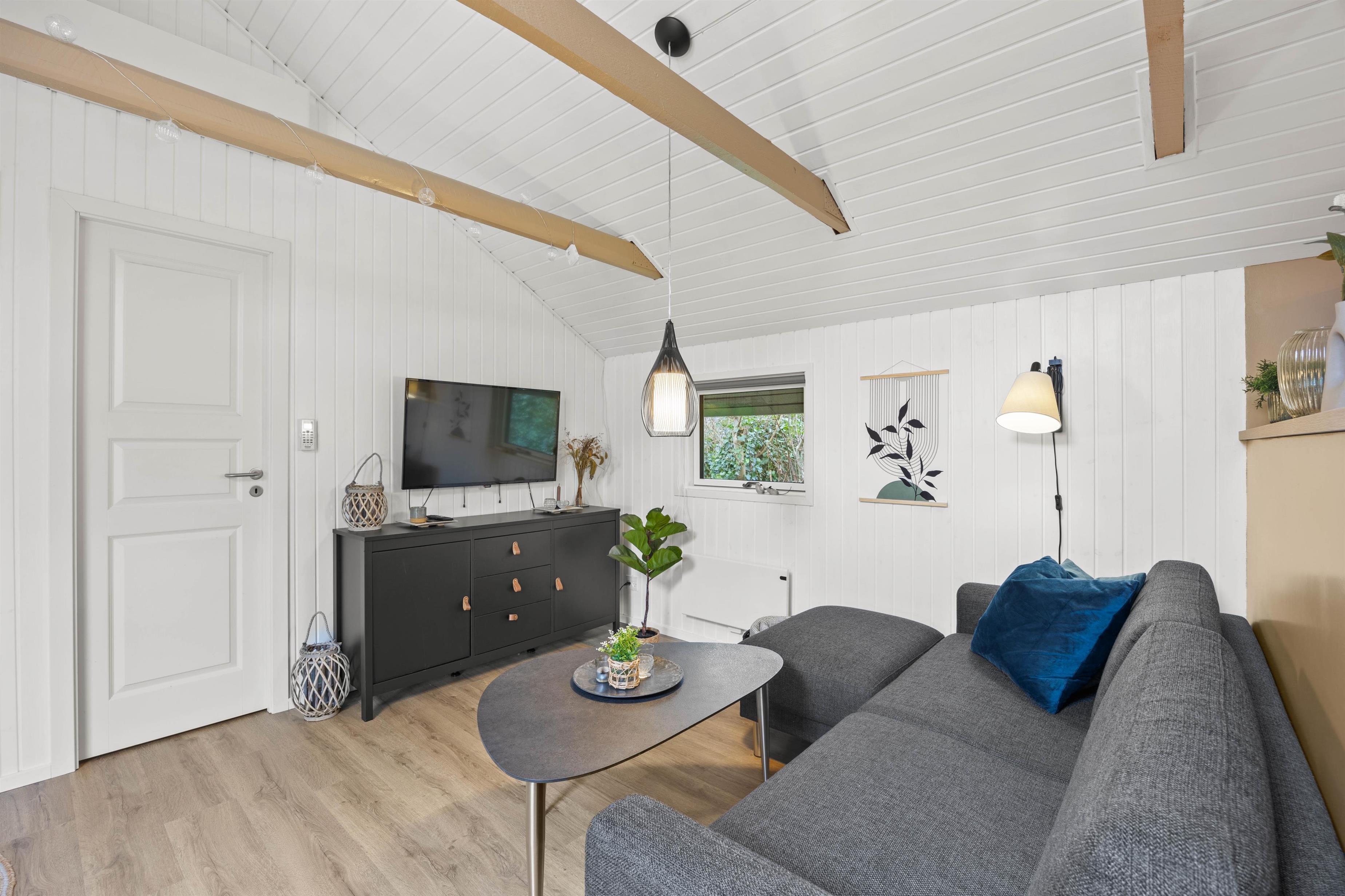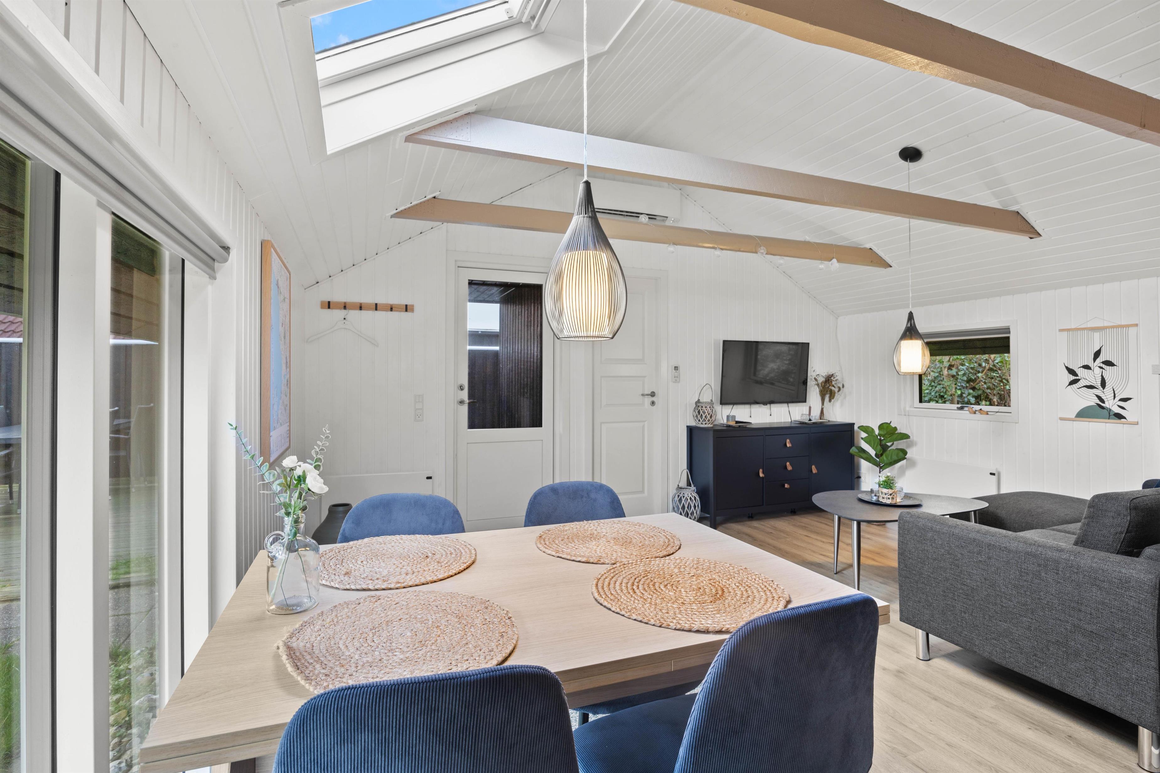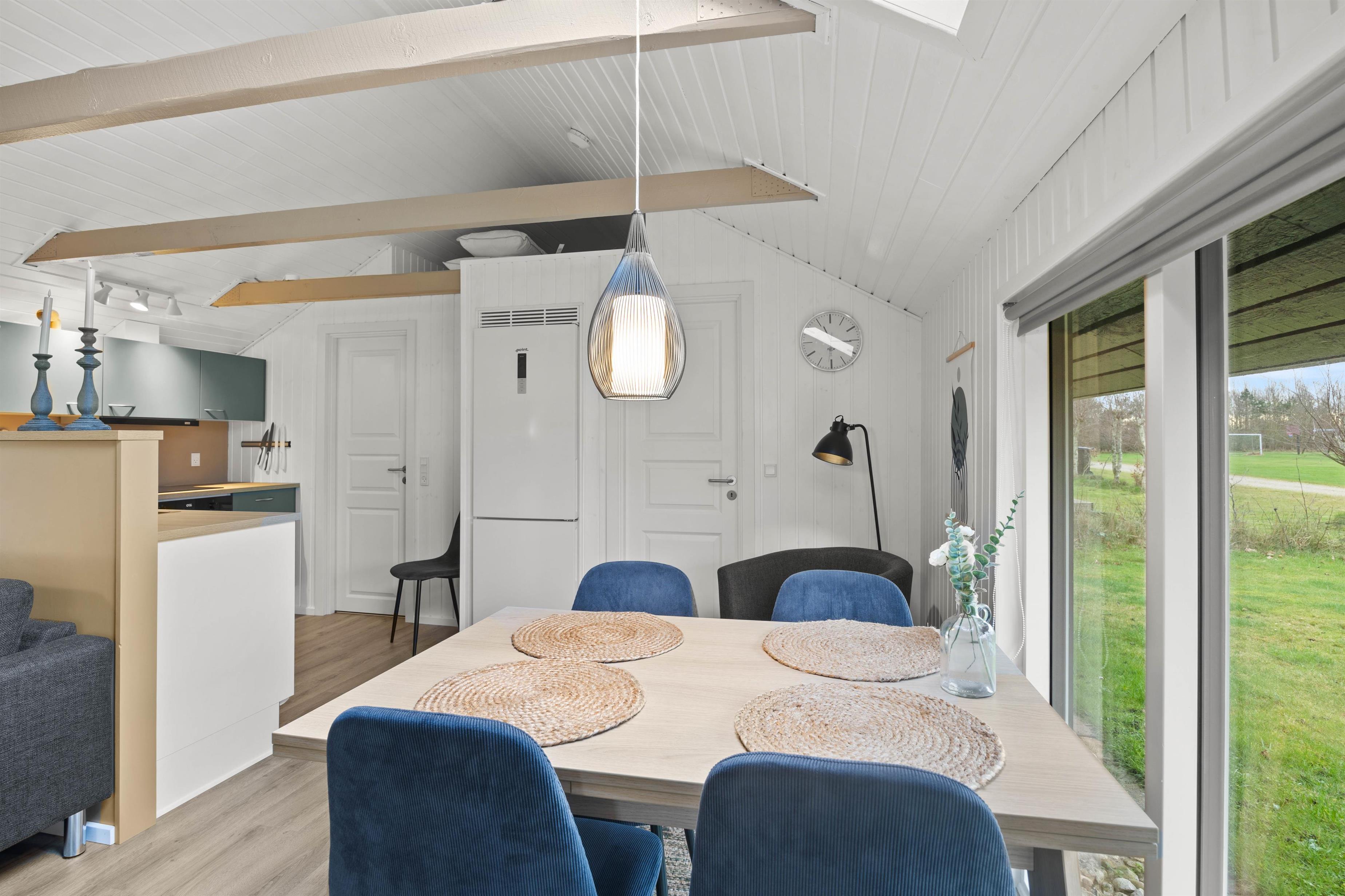 Når I træder ind i sommerhuset, omfavnes I af varmen fra det hyggelige køkkenalrum, der emmer af afslappet feriestemning efter en lang dag i det fri. Køkkenet er designet til samvær og er fuldt udstyret med både opvaskemaskine og vaskemaskine, hvilket gør daglige opgaver nemme og øger komforten under jeres ophold.