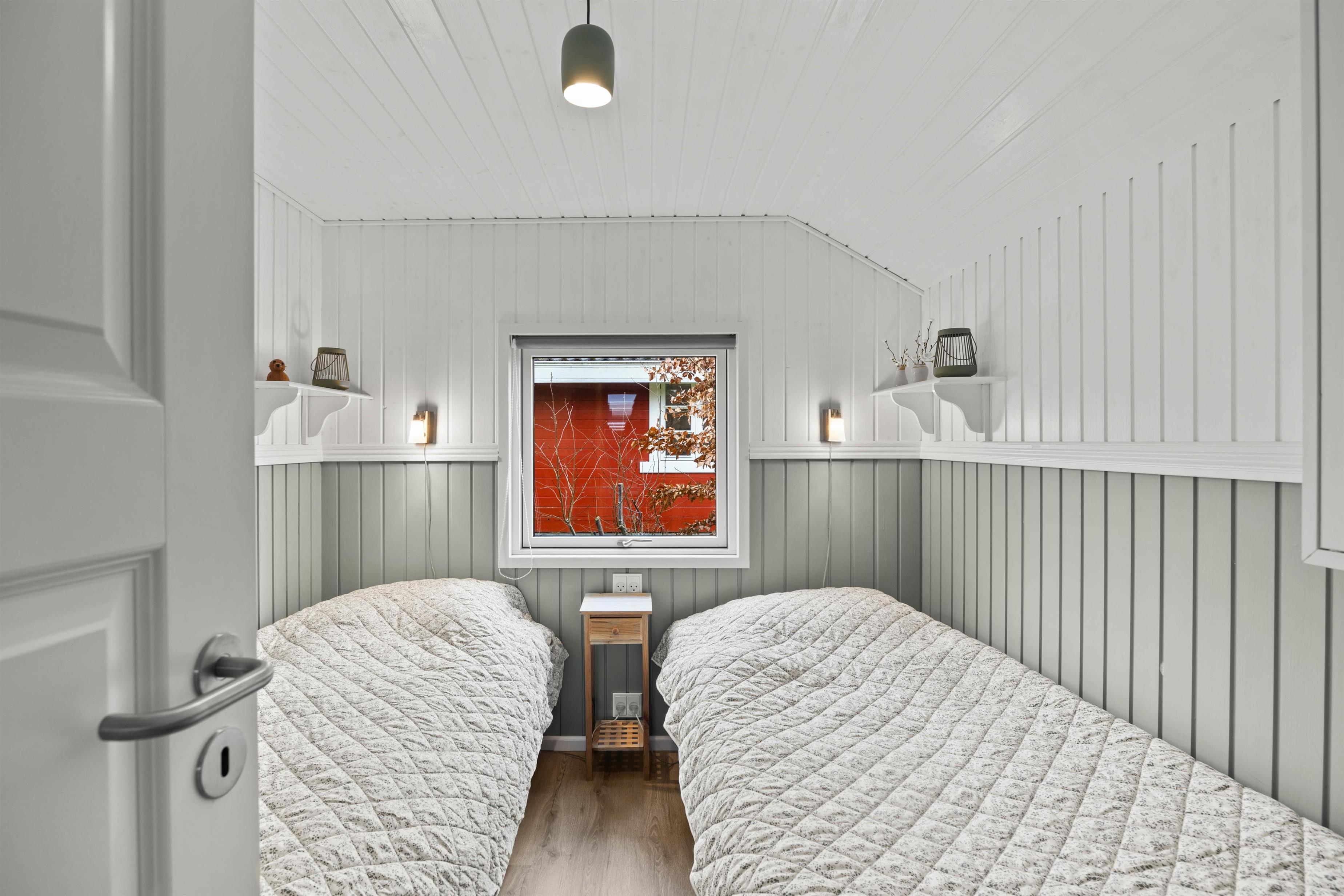 Feriehuset byder på to hyggelige soverum, det ene med 1 lækker dobbeltseng og det andet med 2 enkeltsenge, der er perfekte til familier eller vennepar. En charmerende hems tilfører 2 ekstra sovepladser og kan hurtigt blive de mindstes foretrukne opholdssted.