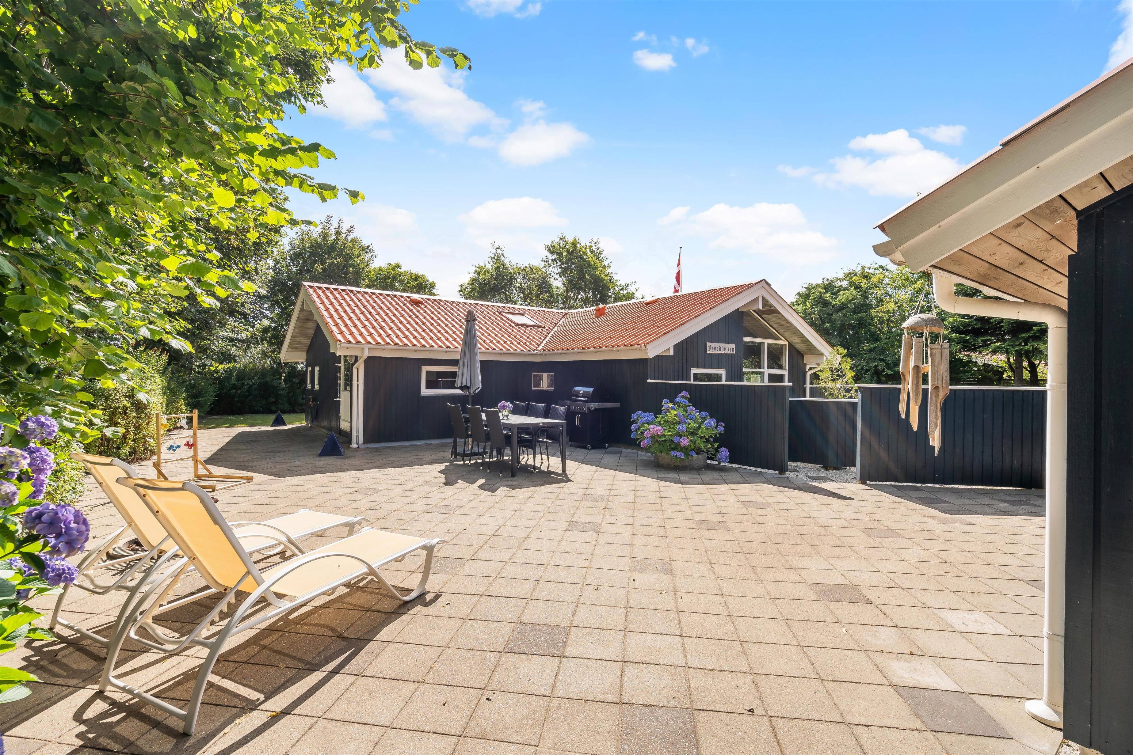 På sommerhusets udeområde er der god mulighed for, at I kan nyde de solrige feriedage. Her venter jer nemlig flere terrasser, hvor I kan finde jer en god plads i solen og sætte jer godt til rette i havemøbler og liggestole.