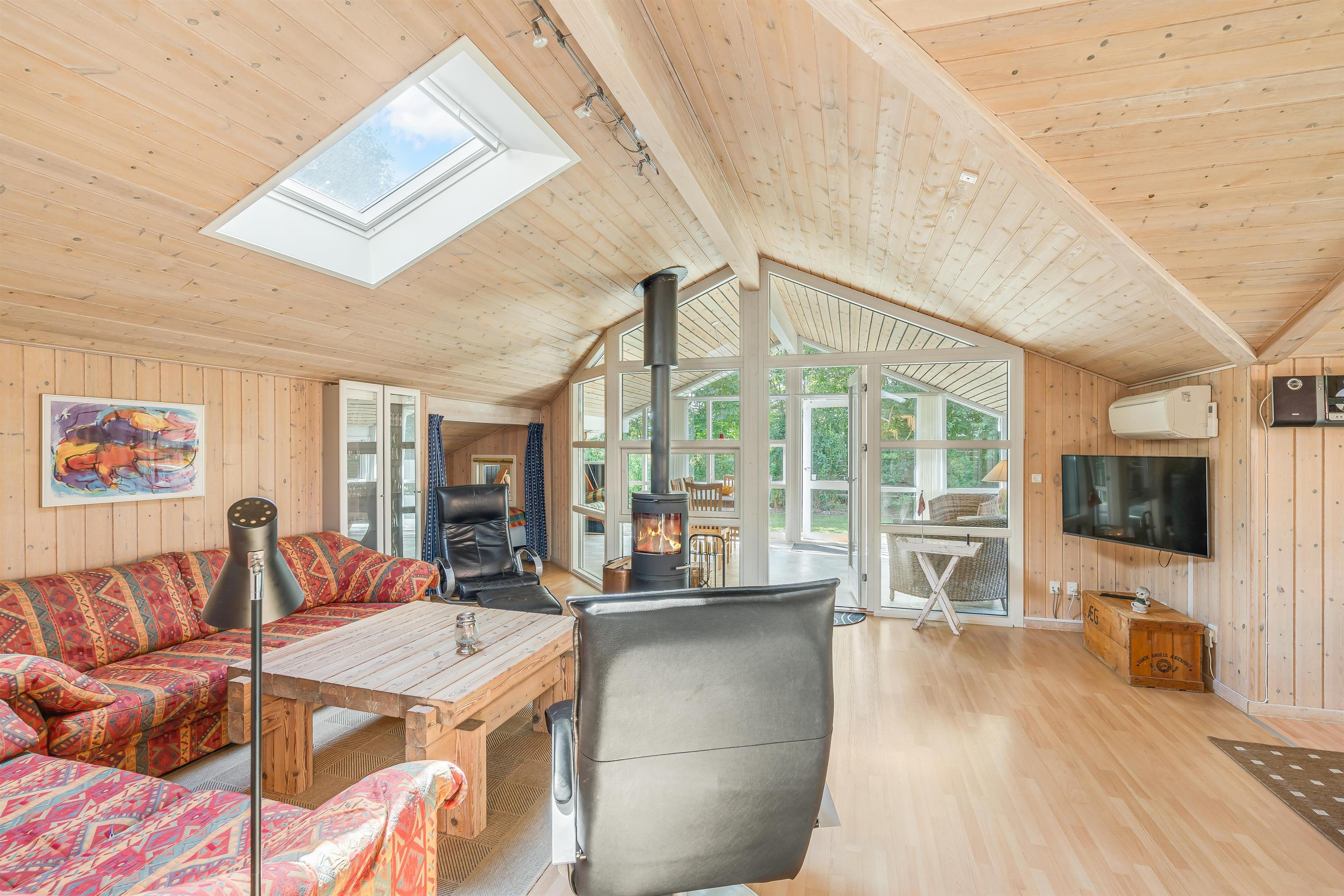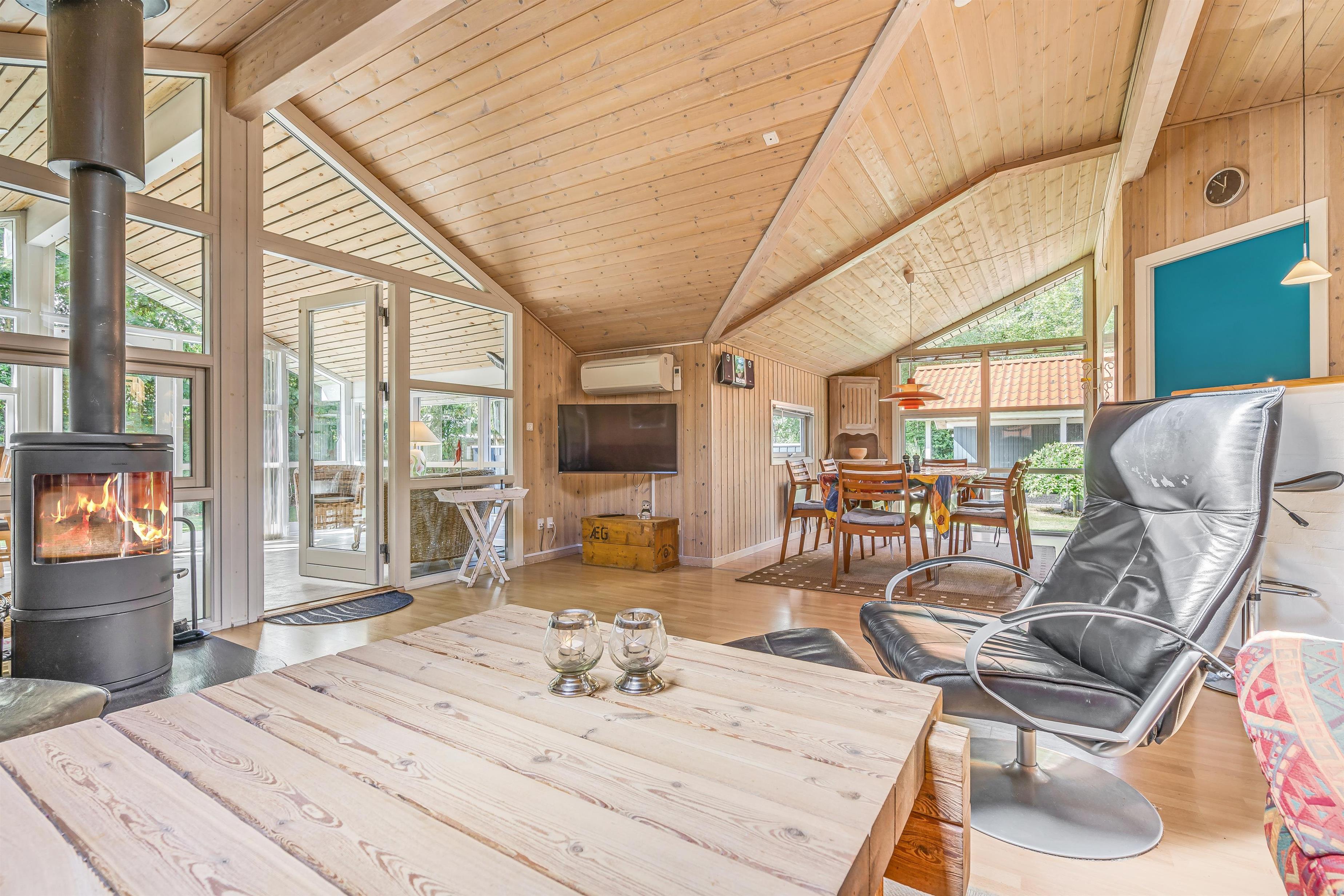 I sommerhuset på Husfold 4 i Bork er der en hyggelig indretning, og I vil helt sikkert hurtigt komme til at føle jer hjemme her. Her udgør alrummet hjertet, hvor I uden tvivl kommer til at tilbringe mange hyggelige stunder med lyden af brændeovnens knitren i baggrunden.