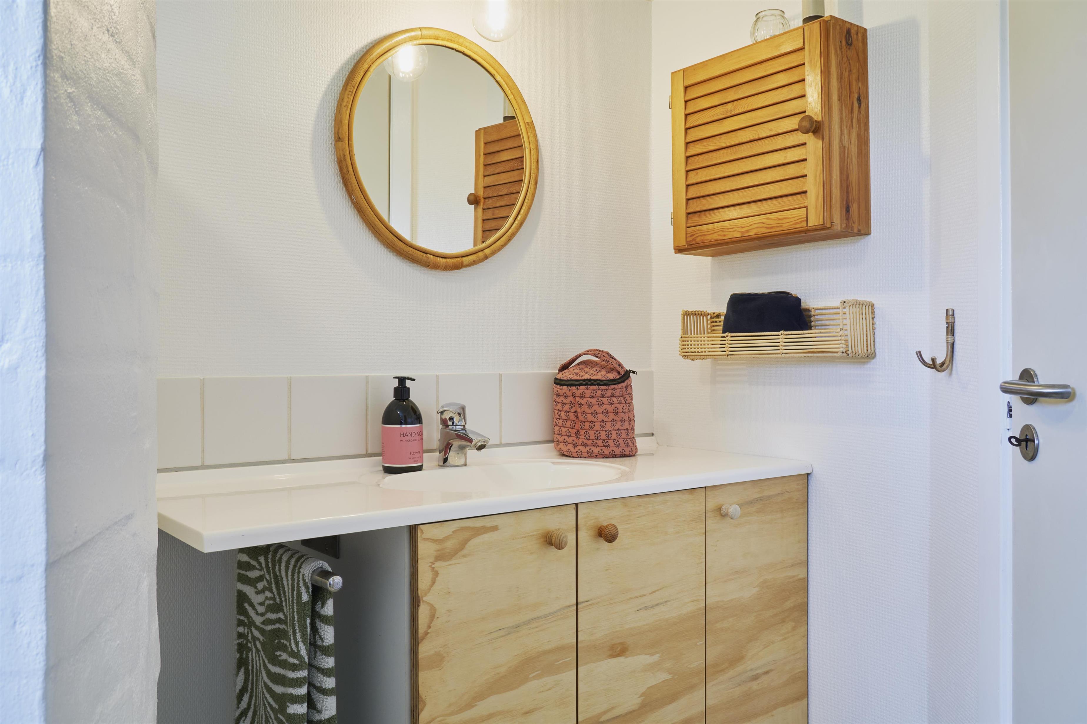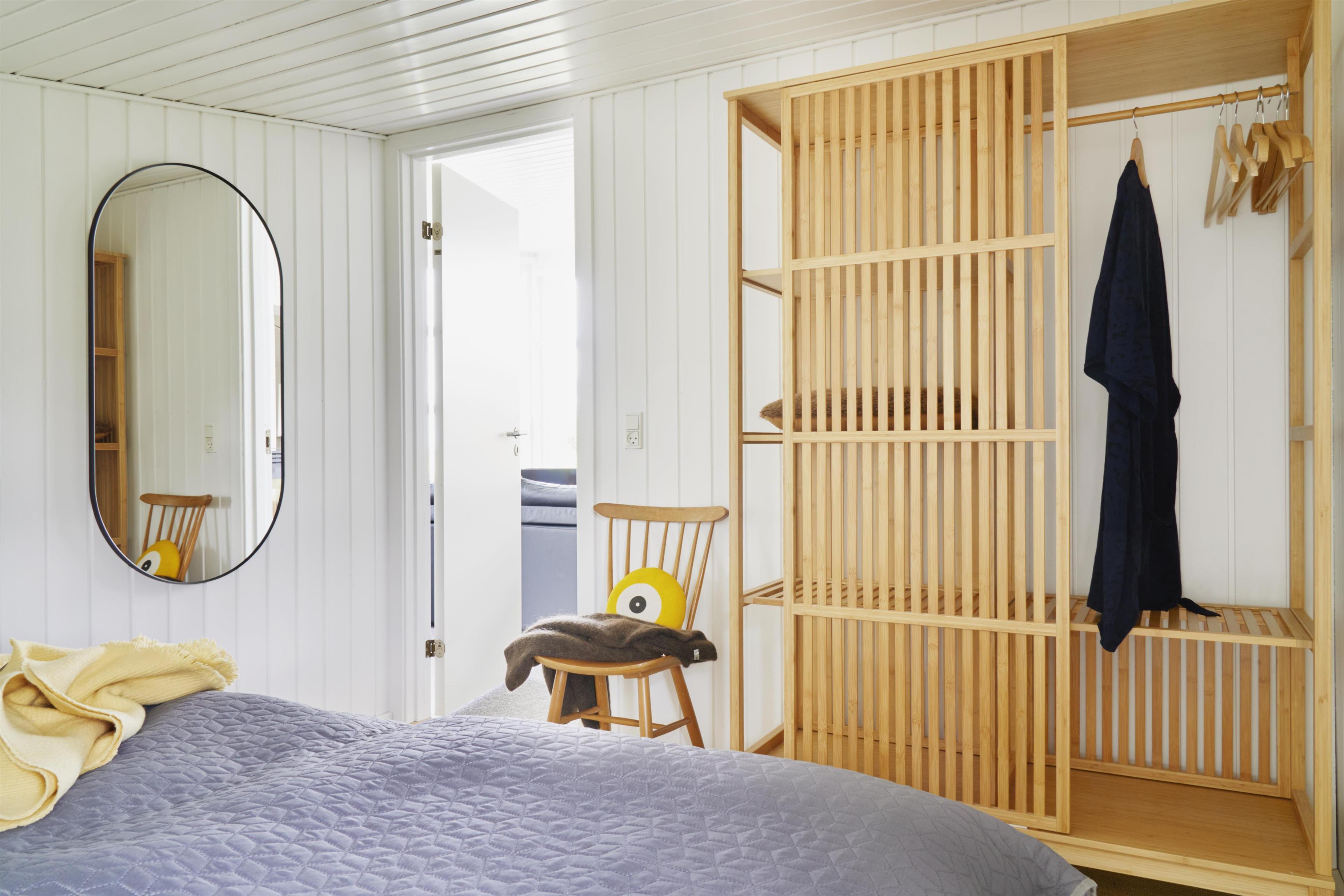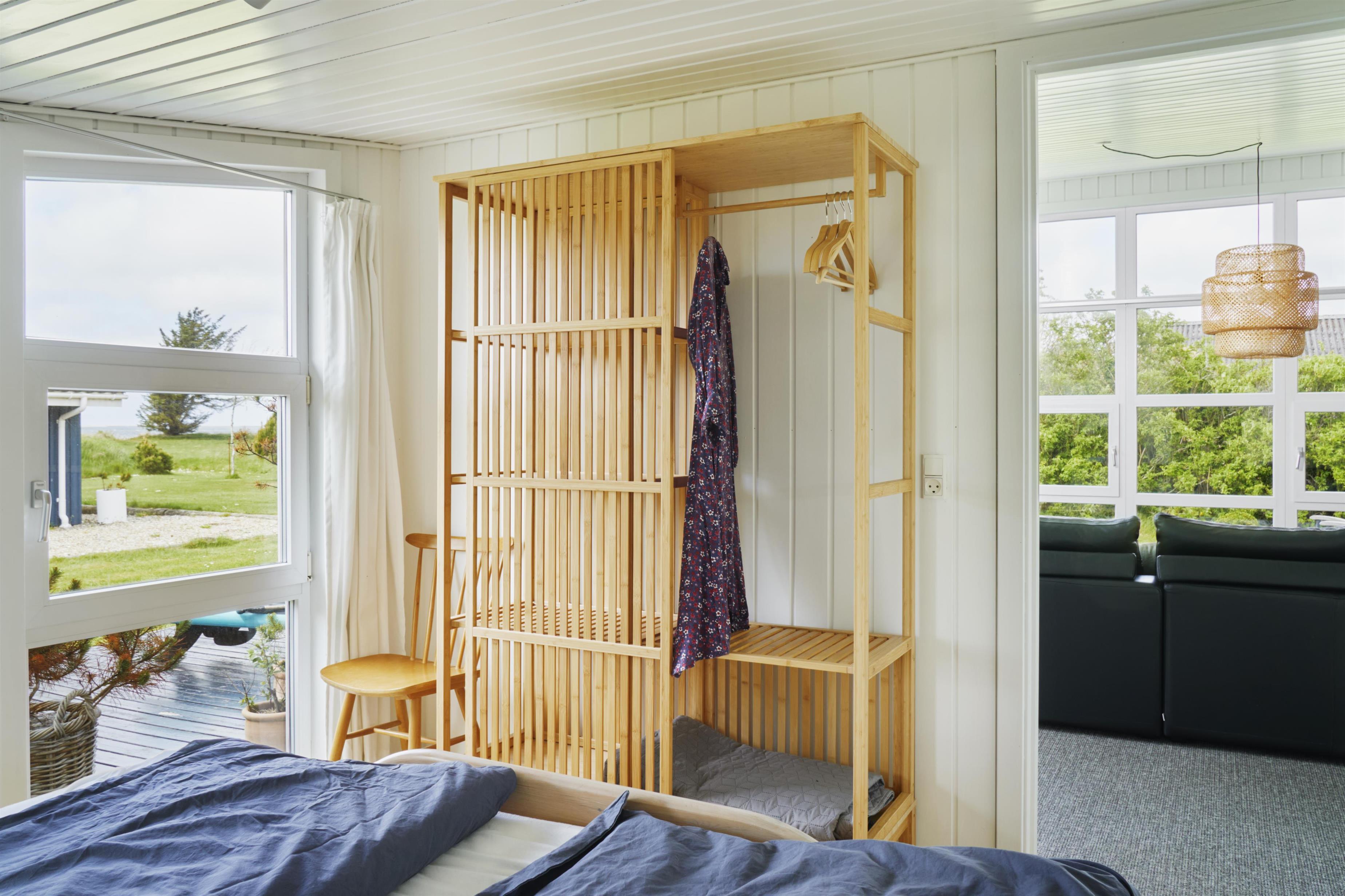 Bevæger I jer videre fra køkkenet, kan I samles i opholdsrummet med brændeovnen der sørger for varme og hygge, perfekt til at skabe en afslappet atmosfære på de køligere dage med hyggen i fokus. I behøver sågar heller ikke at bekymre jer om garderoben efter en lang dag ved fjorden, da vaskemaskinen tager sig af det.