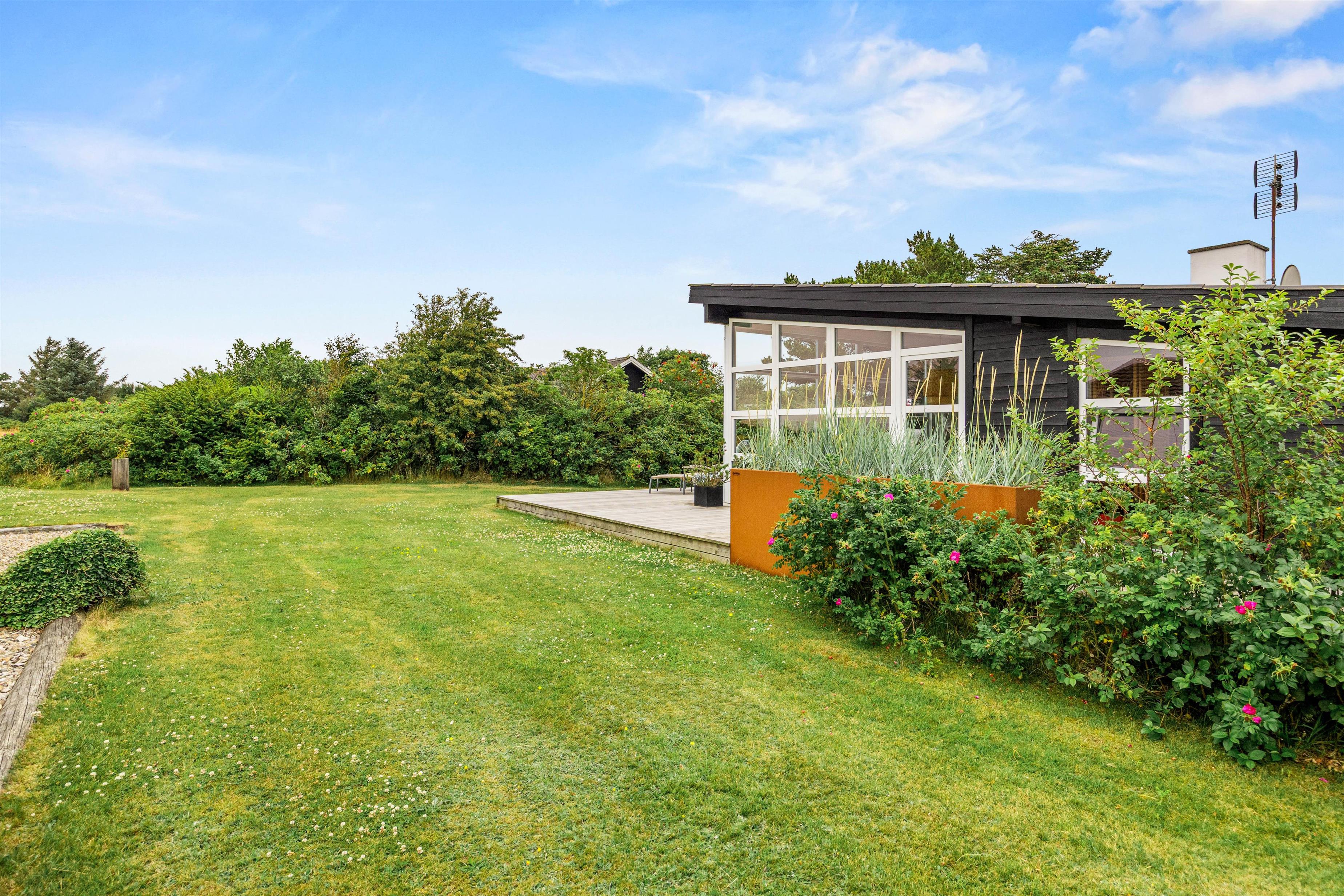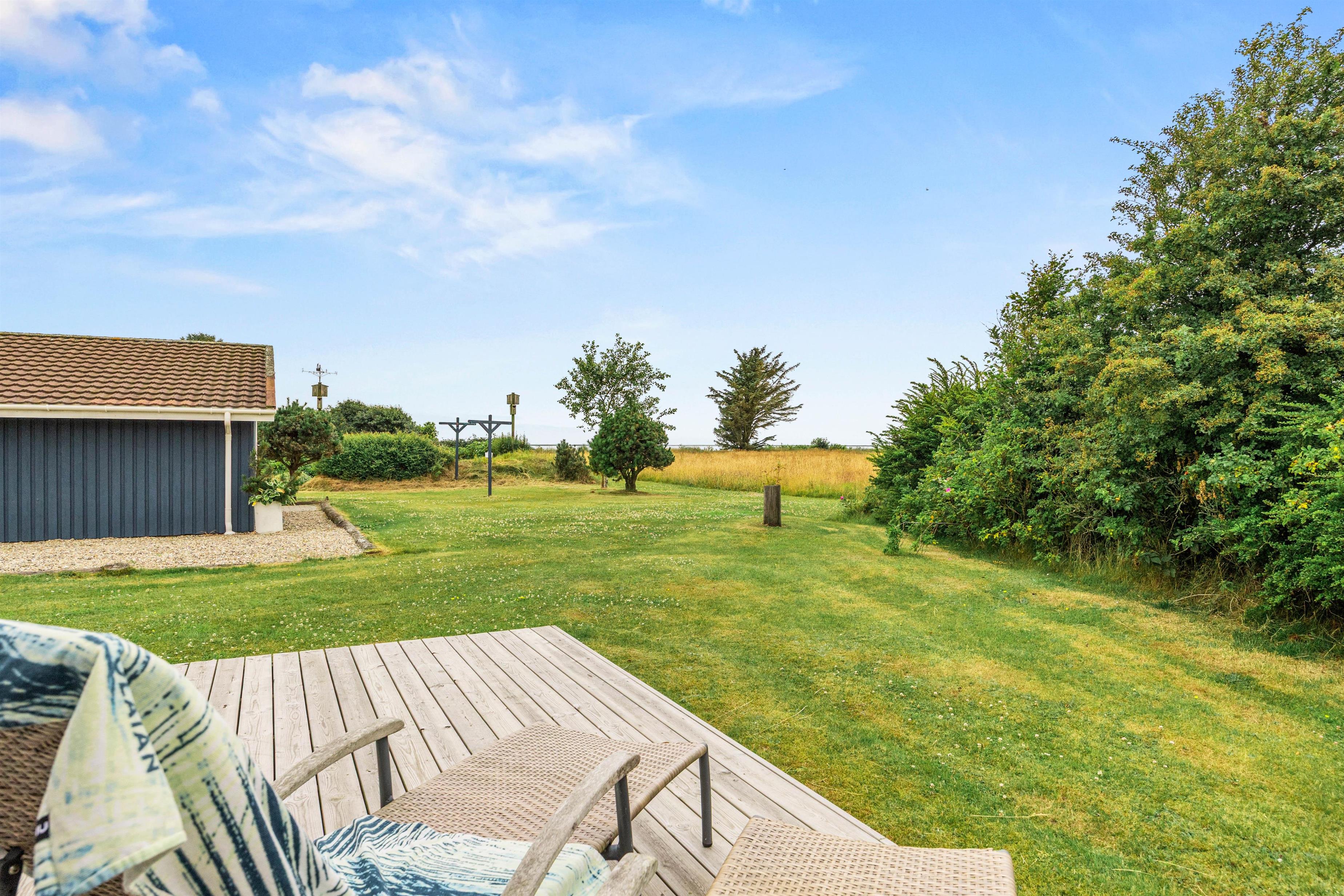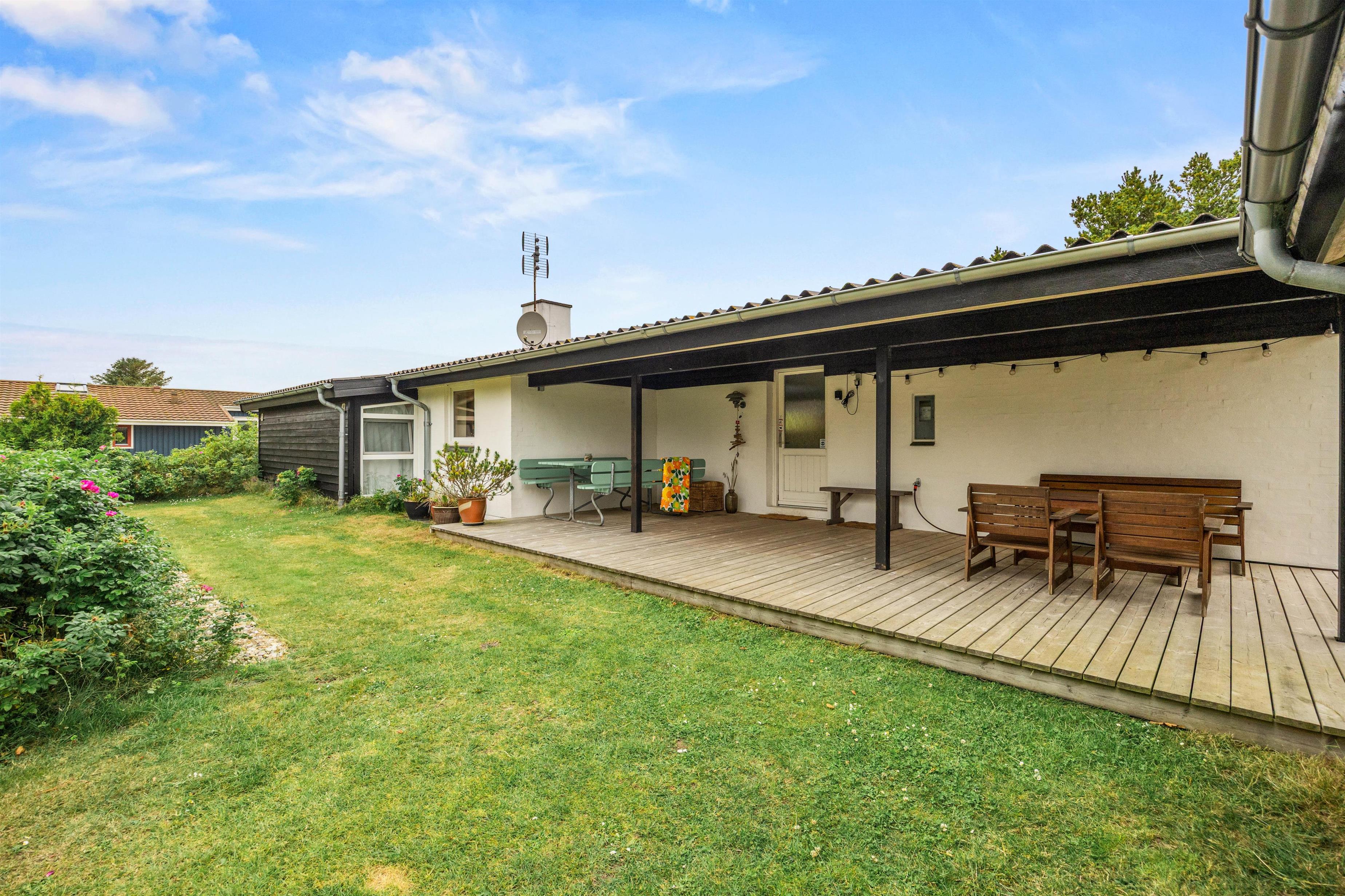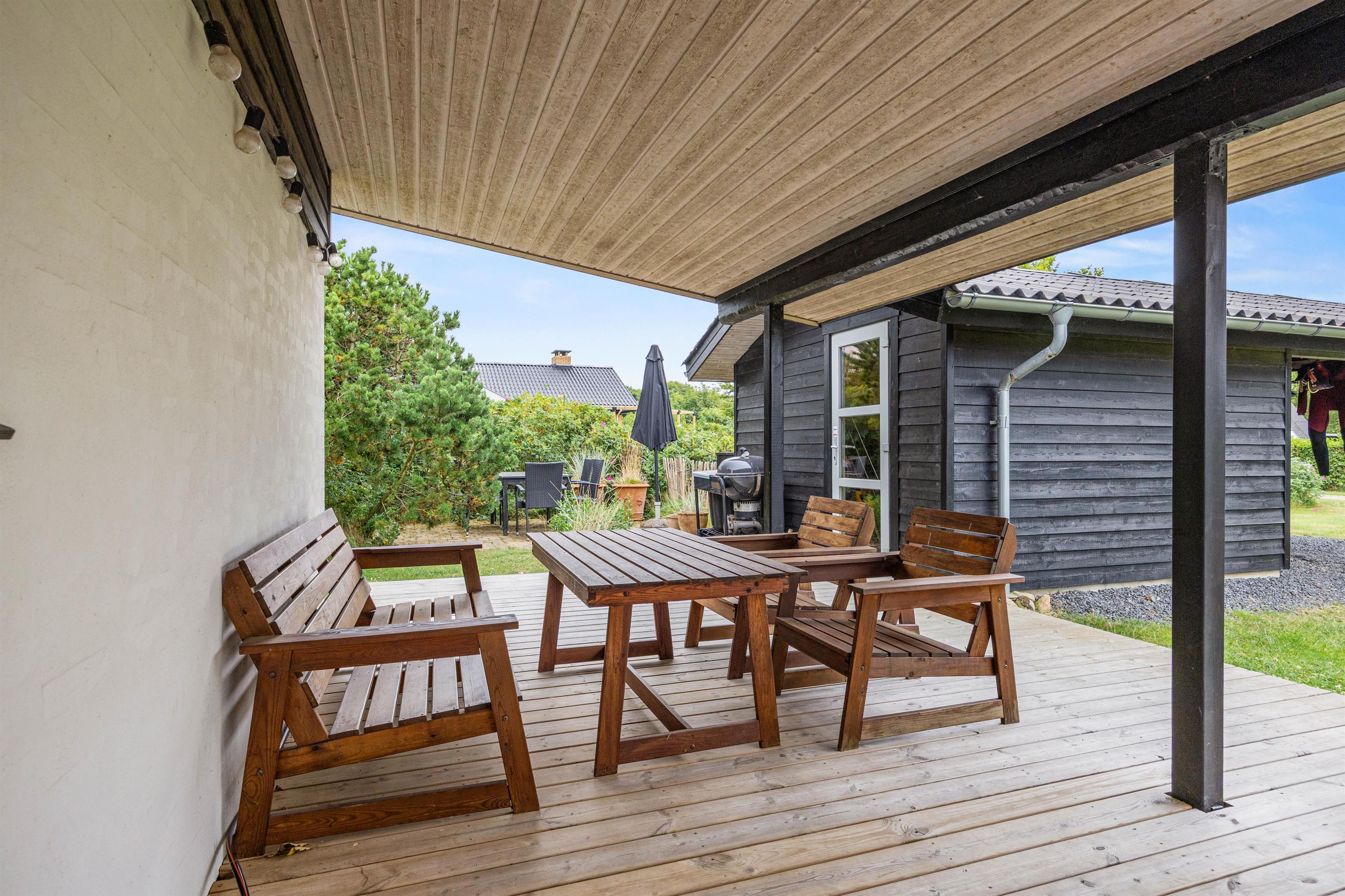 Sommerhuset har både en åben og en overdækket terrasse, samt et afskærmet område, så I kan vælge den perfekte plads uanset vejret. Her kan I nyde dagens første kop kaffe i skyggen eller samles til hyggelige måltider under åben himmel.