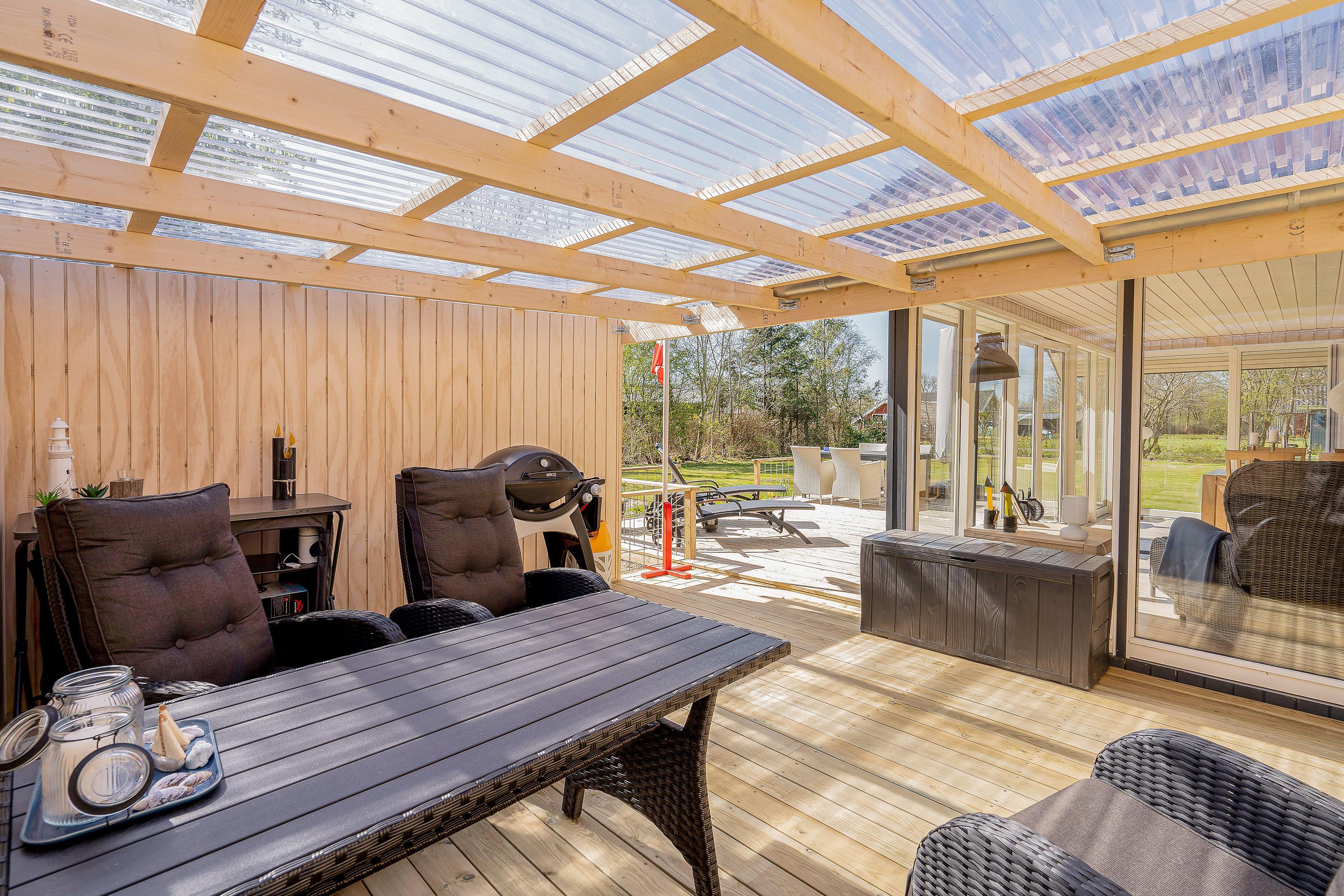 Den overdækkede terrasse er det ideelle sted til at nyde et måltid i det fri, uanset om det regner eller solen skinner. Med en grill til rådighed kan I tilberede lækre måltider, hvor aften kan nydes i det fri med duften af grillede delikatesser og lyden af naturen omkring jer. Udemiljøet er skabt til at være jeres personlige oase, hvor I kan skabe gode minder med dem, I holder af.