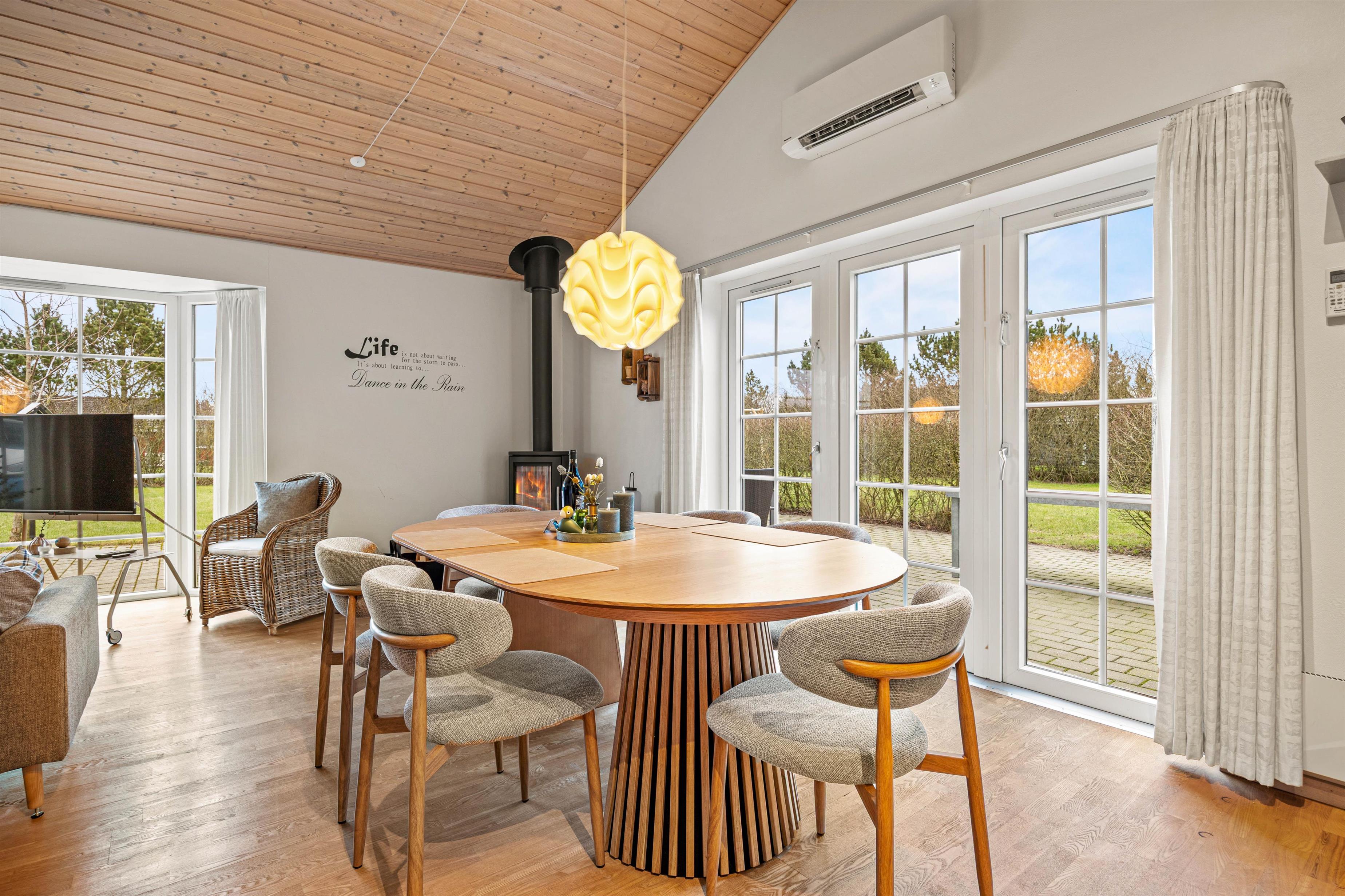 Dette sommerhus i Bork Havn er lyst, charmerende og hyggeligt indrettet med en åben planløsning, så I kan være sammen. Bygget i 2006 og med et husareal på 98m2, tilbyder sommerhuset en hyggelig stue med en brændeovn, der skaber en hyggelig atmosfære og mulighed for masser af samvær og hygge. Luft-til-luft varmepumpen sikrer en behagelig temperatur året rundt. For jeres bekvemmelighed er der også en opvaskemaskine til rådighed. Sommerhuset råder over 3 soverum, udstyret med dobbeltsenge, samt et værelse med sofa, Tv og legebord for de små.