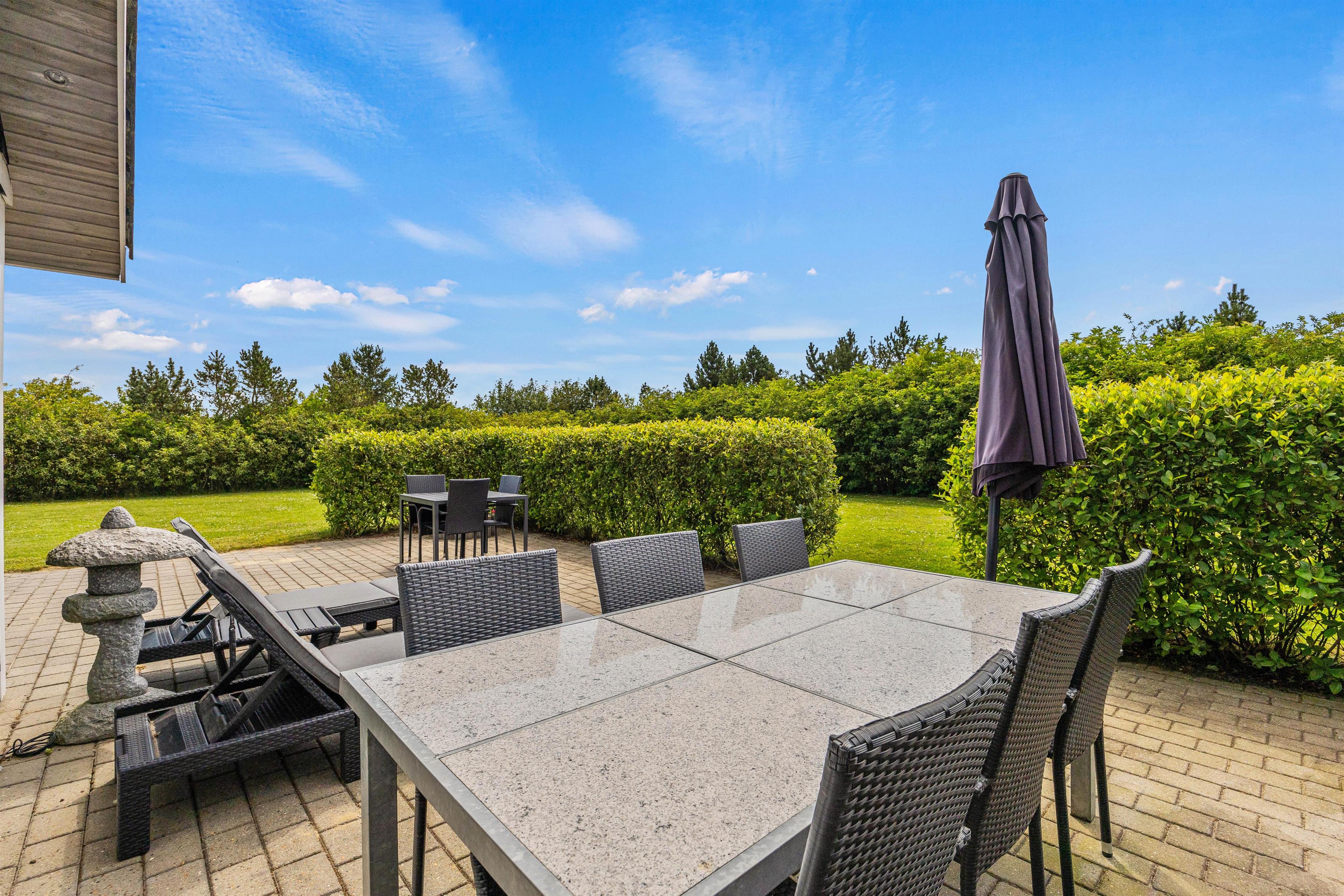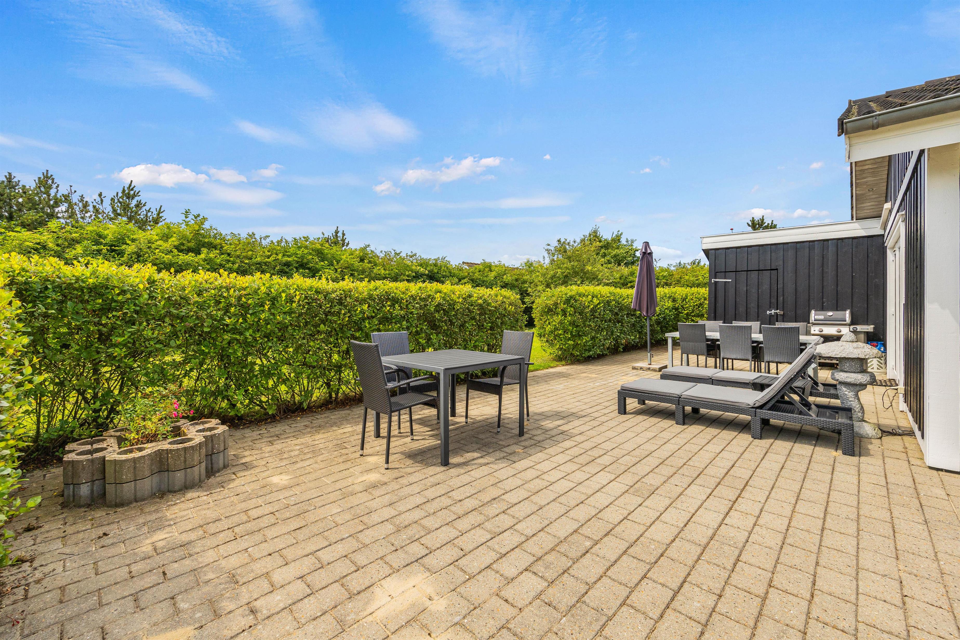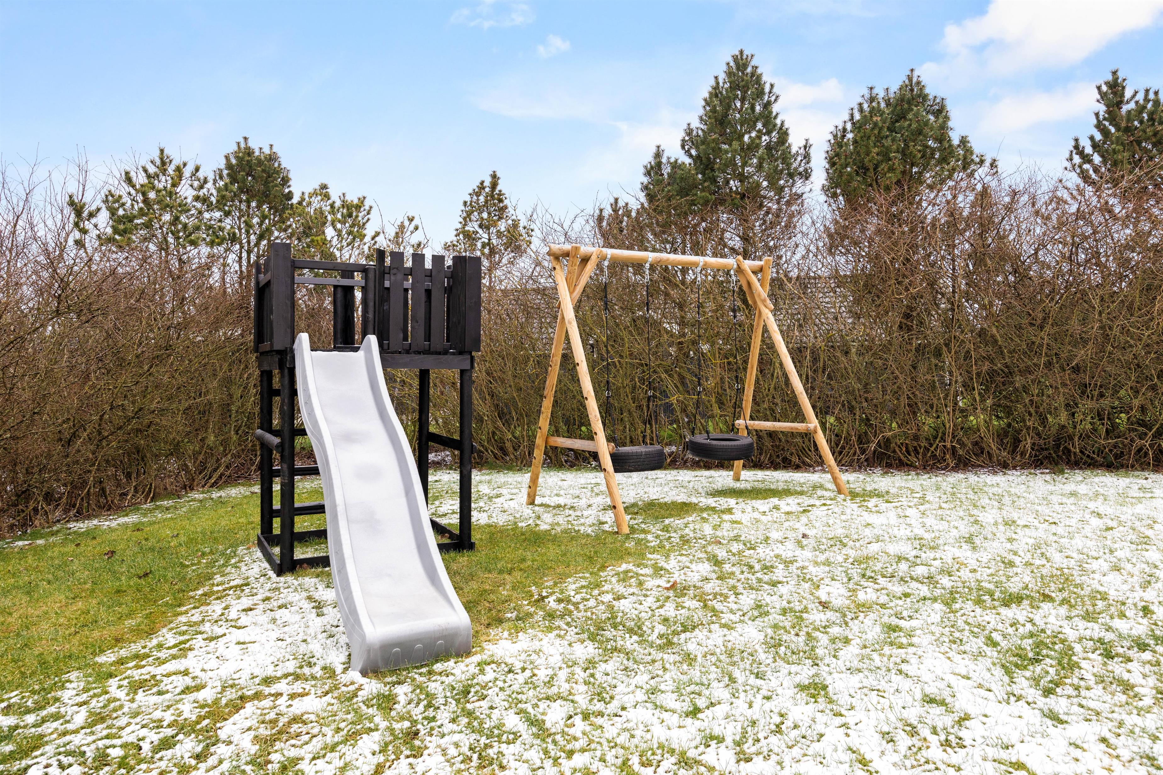 Sommerhusets terrasse er åben og delvist afskærmet, der tilbyder mulighed for både solbadning og privatliv. Terrassen giver fleksibiliteten til at vælge mellem solen eller skyggen på forskellige tidspunkter af dagen og med de tilgængelige havemøbler kan I nyde jeres måltider udendørs i den friske luft og gennem hyggelige grillaftener. I haven er der gyngestativ, legetårn med ruchebane til børnene, samt 2 fodboldmål, så den rummelige plænegrund på 1210m2 giver rig mulighed for udendørs aktiviteter, boldspil og leg til både store og små.