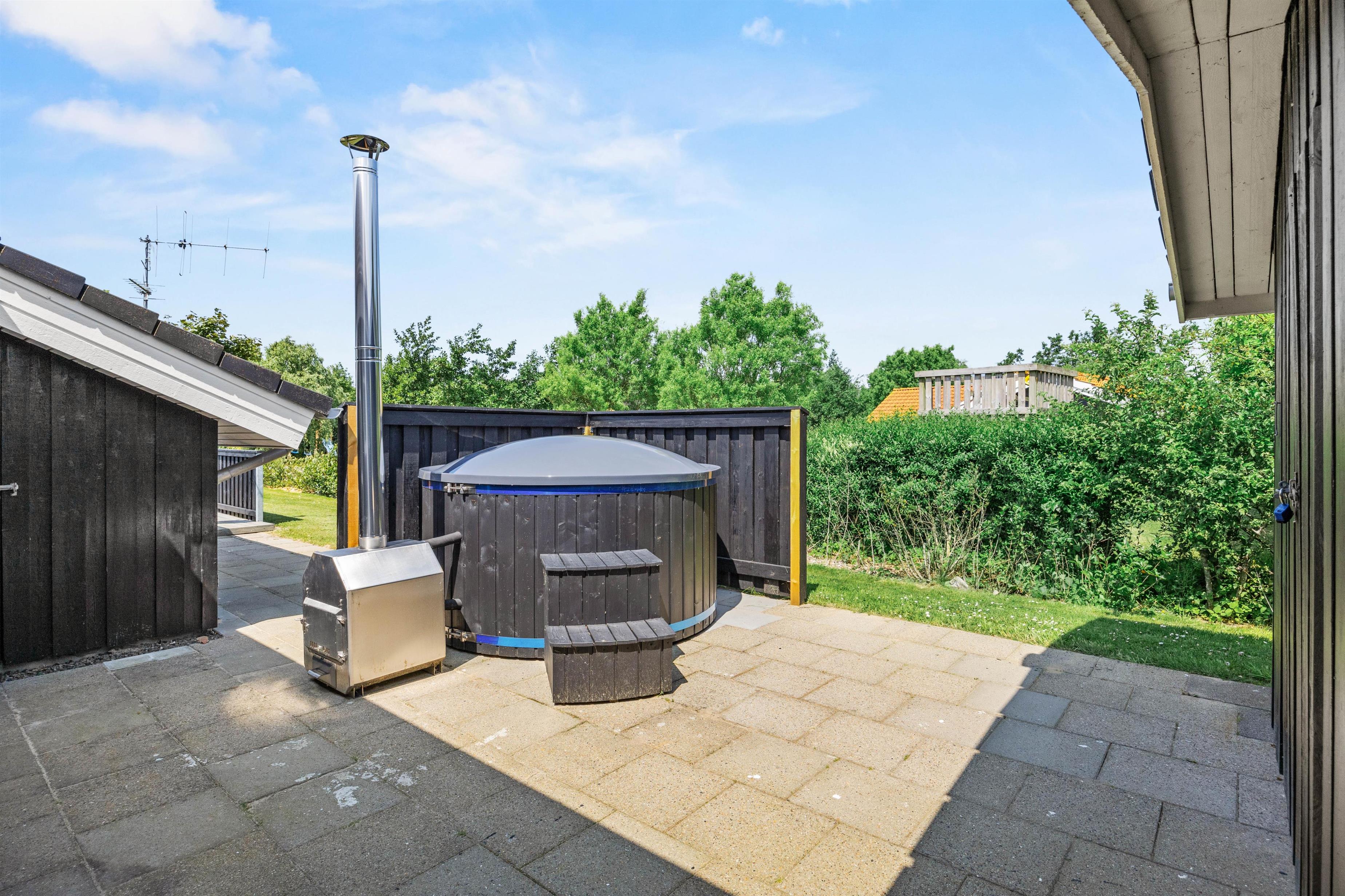 Udemiljøet ved sommerhuset giver fantastiske muligheder for at nyde de lange, lyse dage i den friske luft. Terrassen er designet til at imødekomme alle jeres behov, med både åbne, overdækkede og afskærmede områder, hvor I kan nyde jeres måltider eller bare slappe af med en god bog. Om aftenen er grillen perfekt til at tilberede lækre måltider, mens I nyder solnedgangen. Vildmarksbadet sætter prikken over i'et for en afslappende aften under stjernerne.