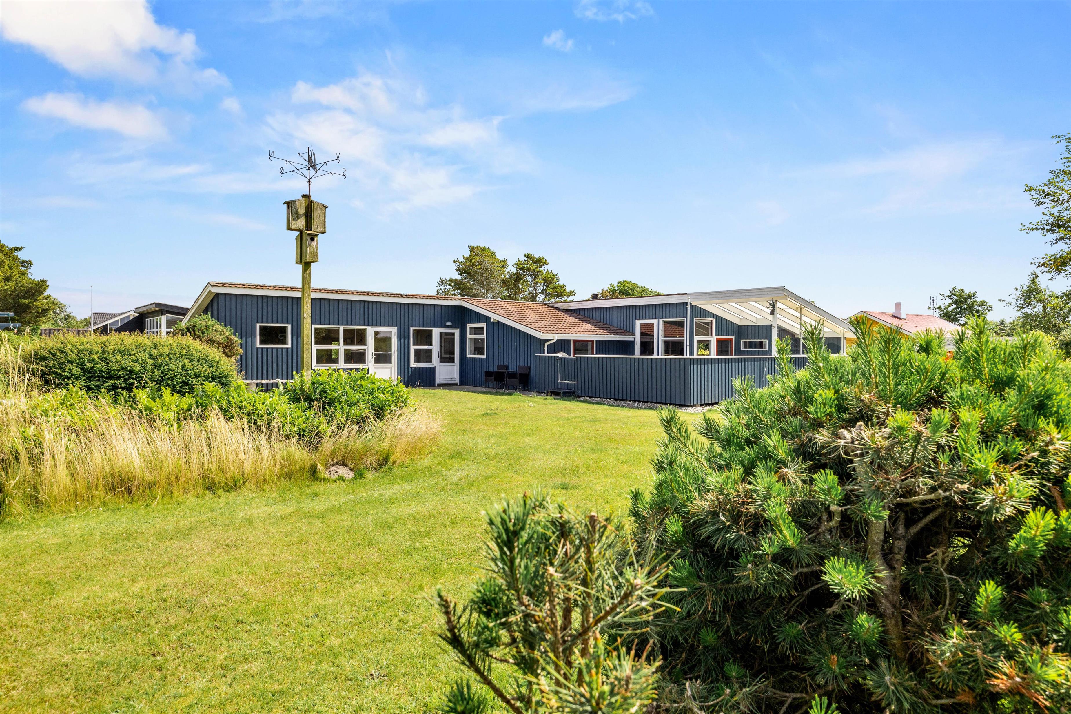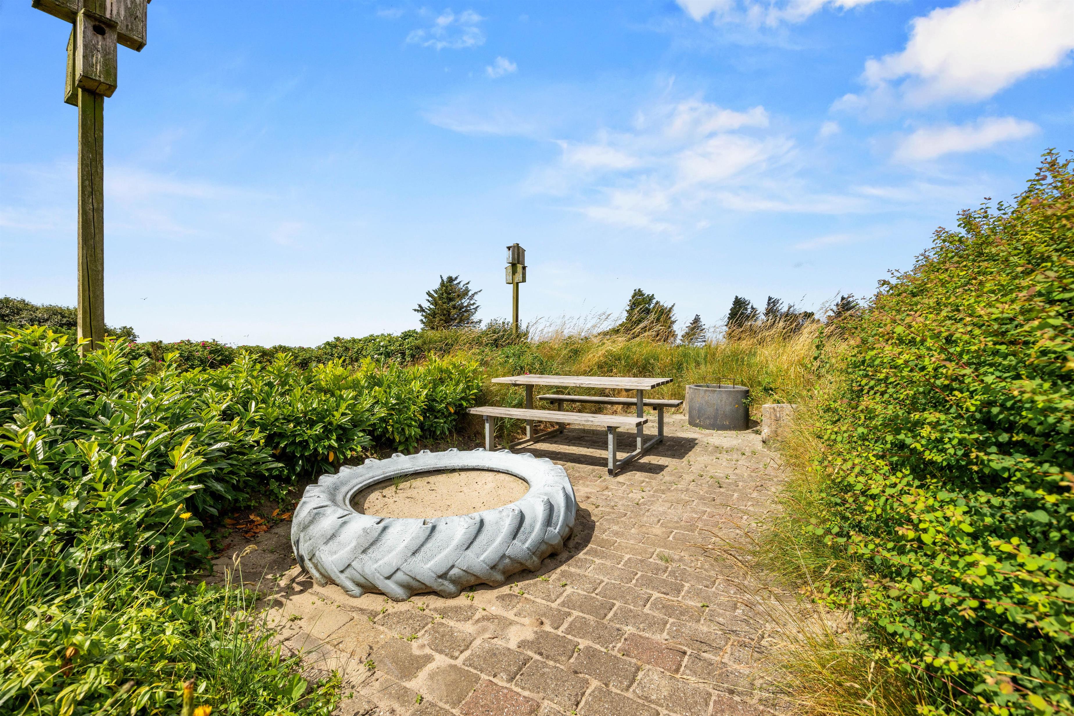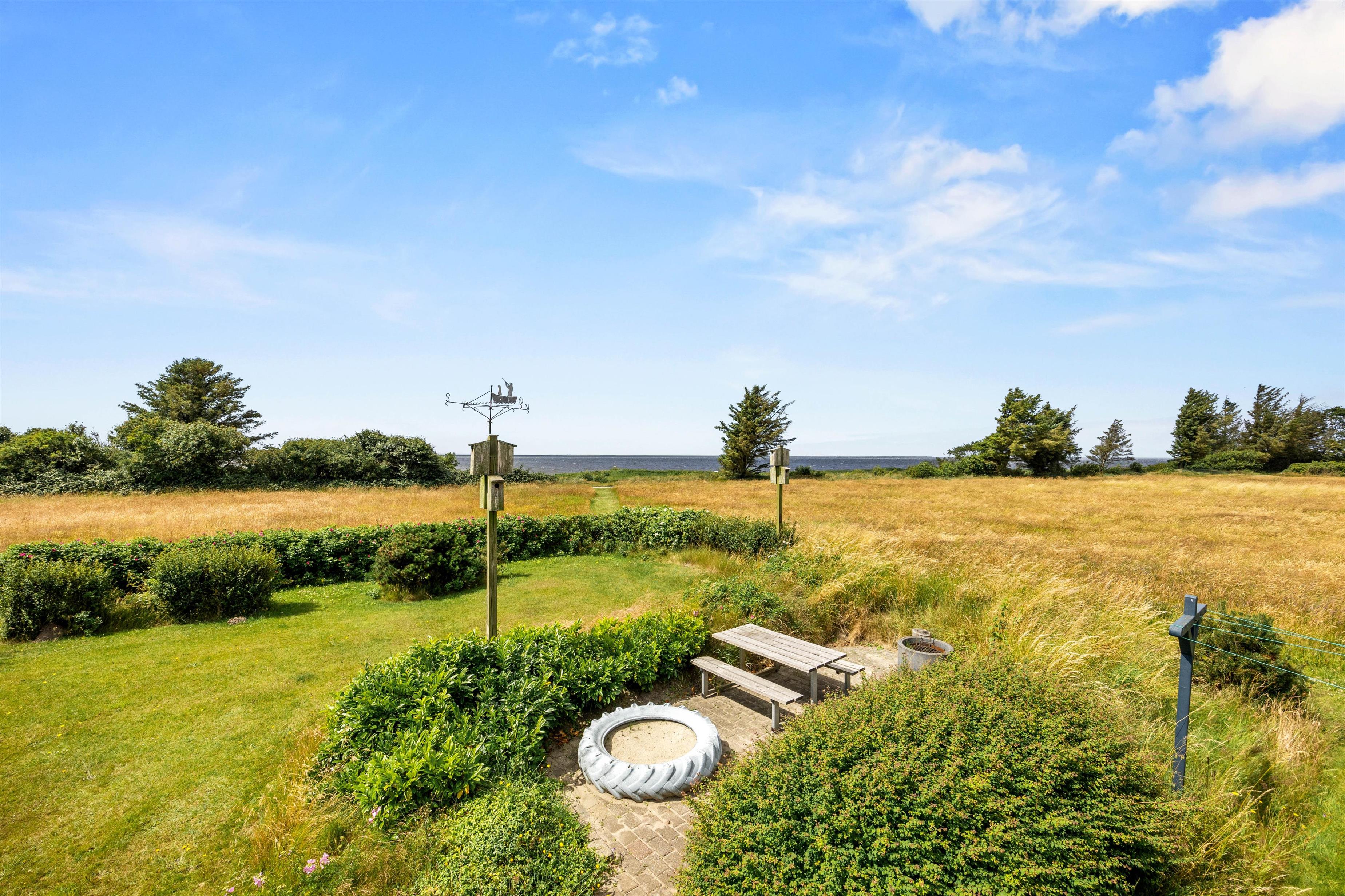 Den grønne græsplæne giver masser af plads til afslapning og leg, og her finder I også havemøblerne og en sandkasse, som de mindste feriegæster vil elske. I den sydvestlige del af haven findes et shelter, som kan bruges til overnatning, hvis I ønsker at nyde den friske Vestjyske luft og stjernehimmelen hele natten.