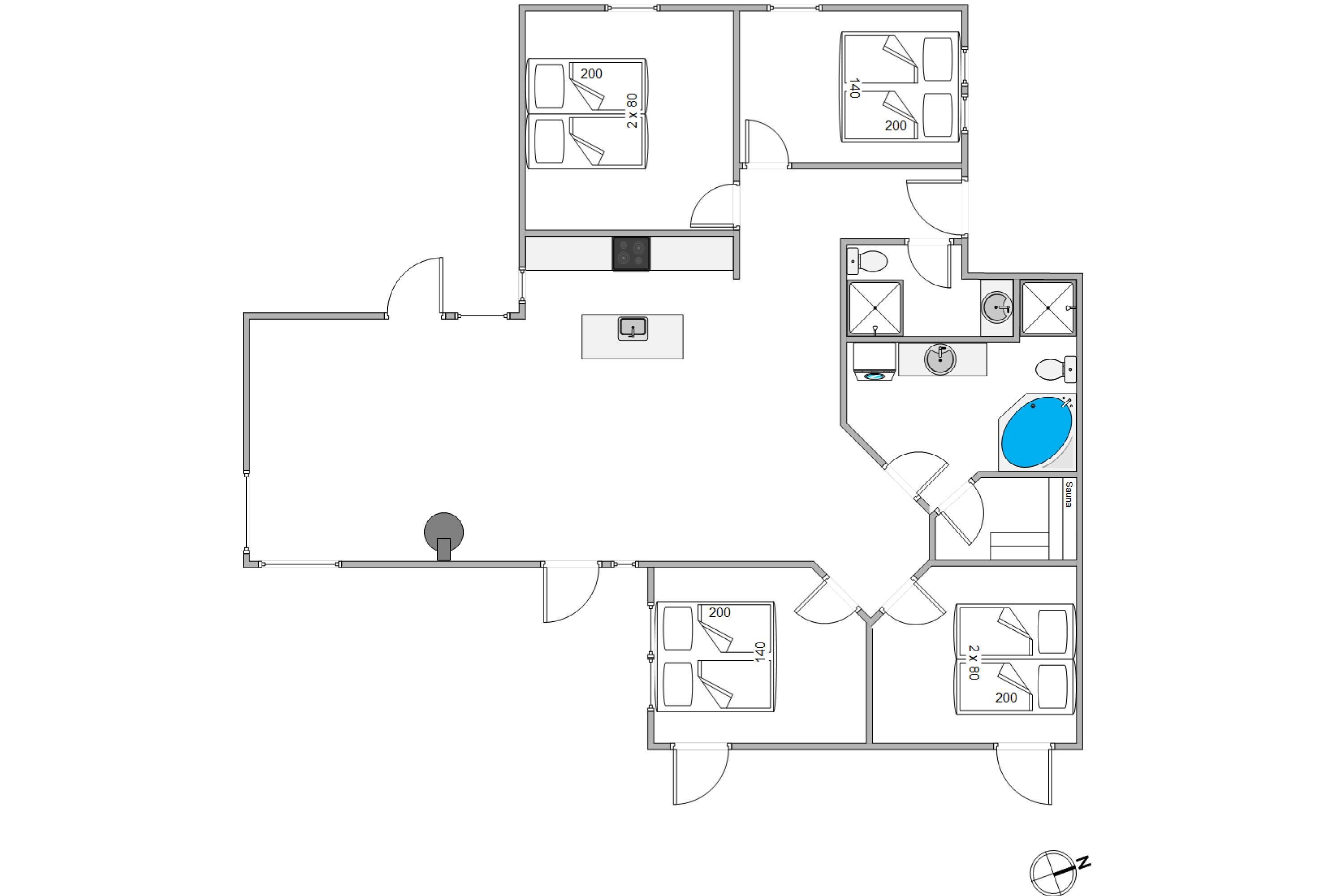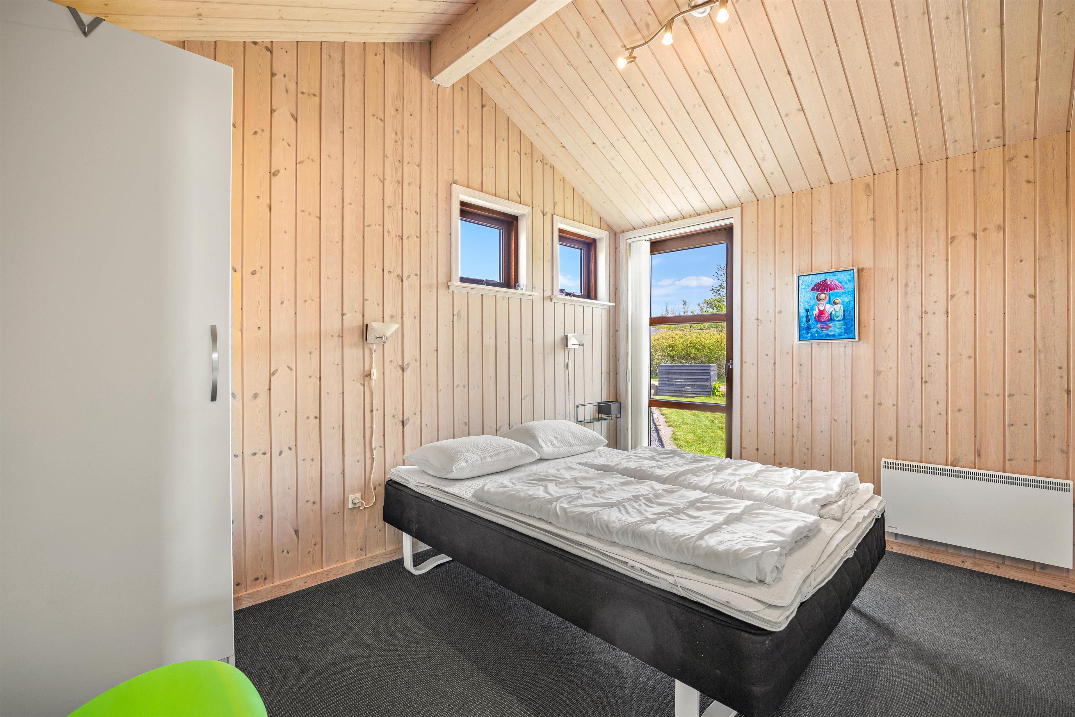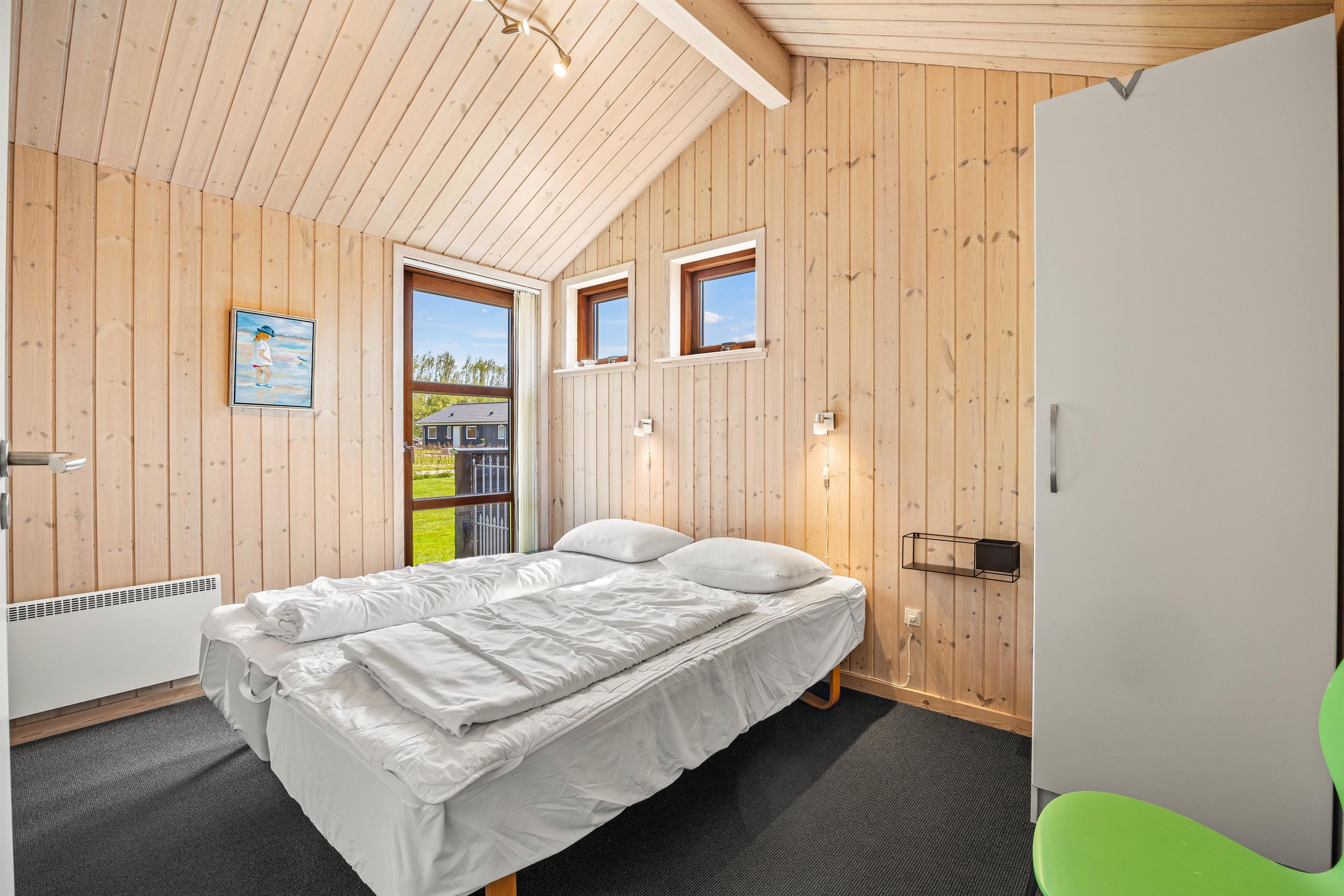Sommerhuset på hele 120 kvadratmeter har alt, I skal bruge for at holde en vellykket ferie. Det blev opført i 2006 og har en god rumfordeling. Der er 2 afdelinger, hver med 2 værelser og 1 bad, så I nemt kan være 2 familier afsted sammen, eller bare have en afdeling til de yngste feriegæster. Værelserne er indrettet således at 2 af dem har en dobbeltseng, der er 140 cm bred og de 2 andre soverum har 2 enkeltsenge hver.
