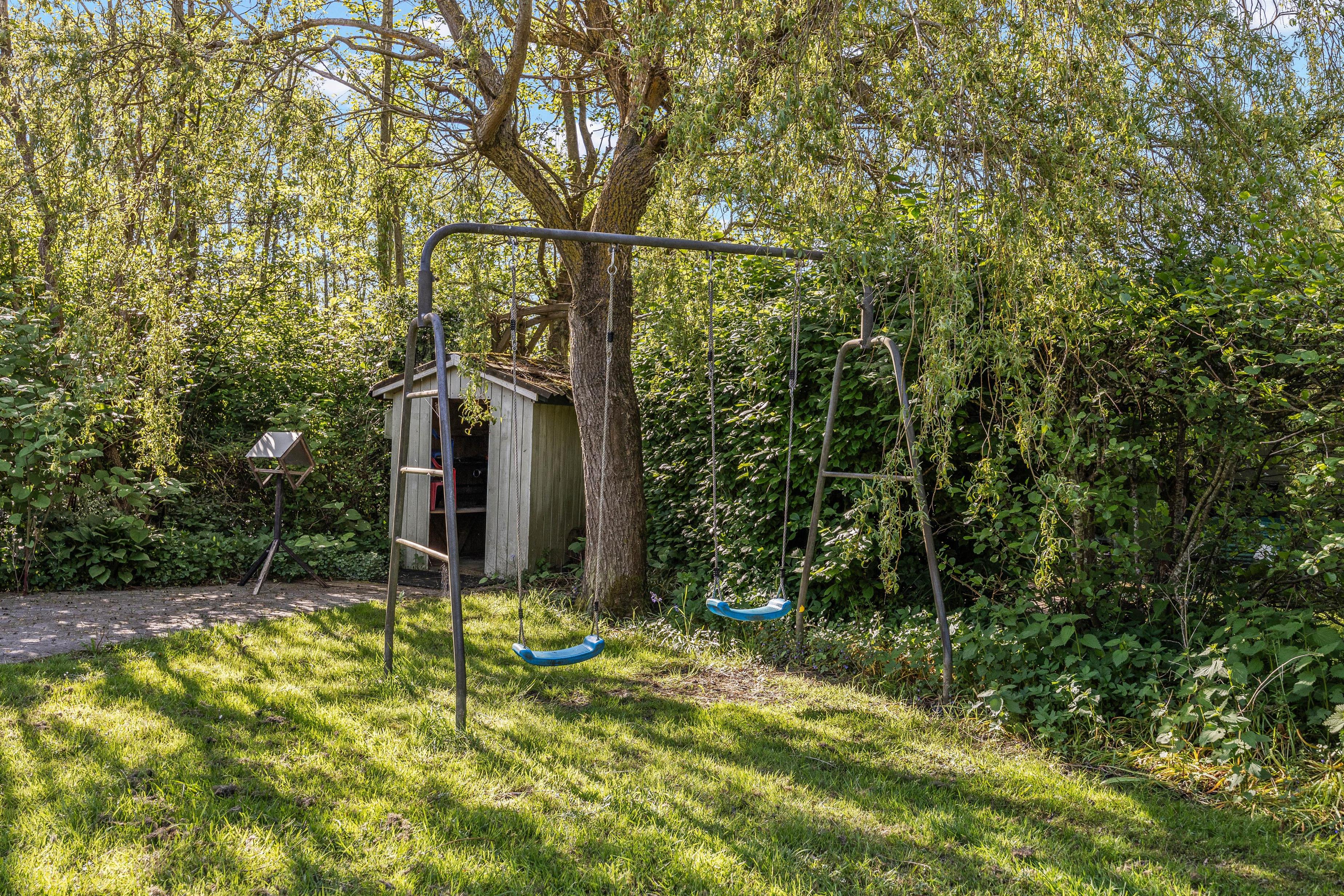 Sommerhuset ligger på en 705m2 stor plænegrund, der er ideel til diverse udendørs spil og aktiviteter som fodbold, kongespil eller andre lege. Grunden giver masser af plads til spil og leg for både store og små. Der er også en gynge, hvor de mindste kan nyde sjove øjeblikke, mens resten af familien kan samles på terrassen eller lege på plænen.
