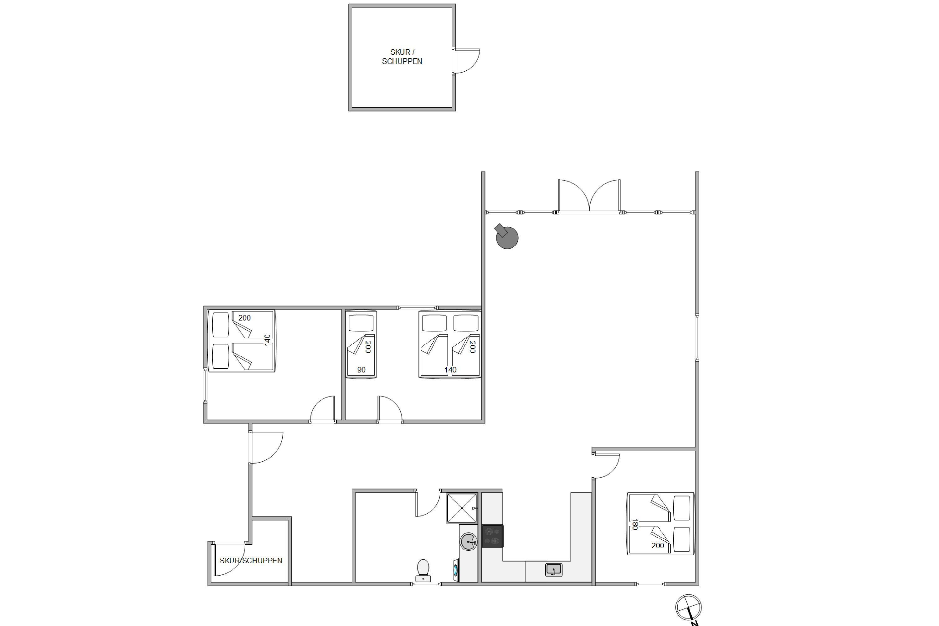 Sommerhuset byder på 3 rummelige soverum med i alt 3 dobbeltsenge og 1 enkeltseng, hvilket gør det muligt for op til 6 personer at nyde opholdet i komfortable omgivelser. Badeværelset er funktionelt indrettet og inkluderer både vaskemaskine og tørretumbler, så I nemt kan holde jeres tøj friskt under hele opholdet.
