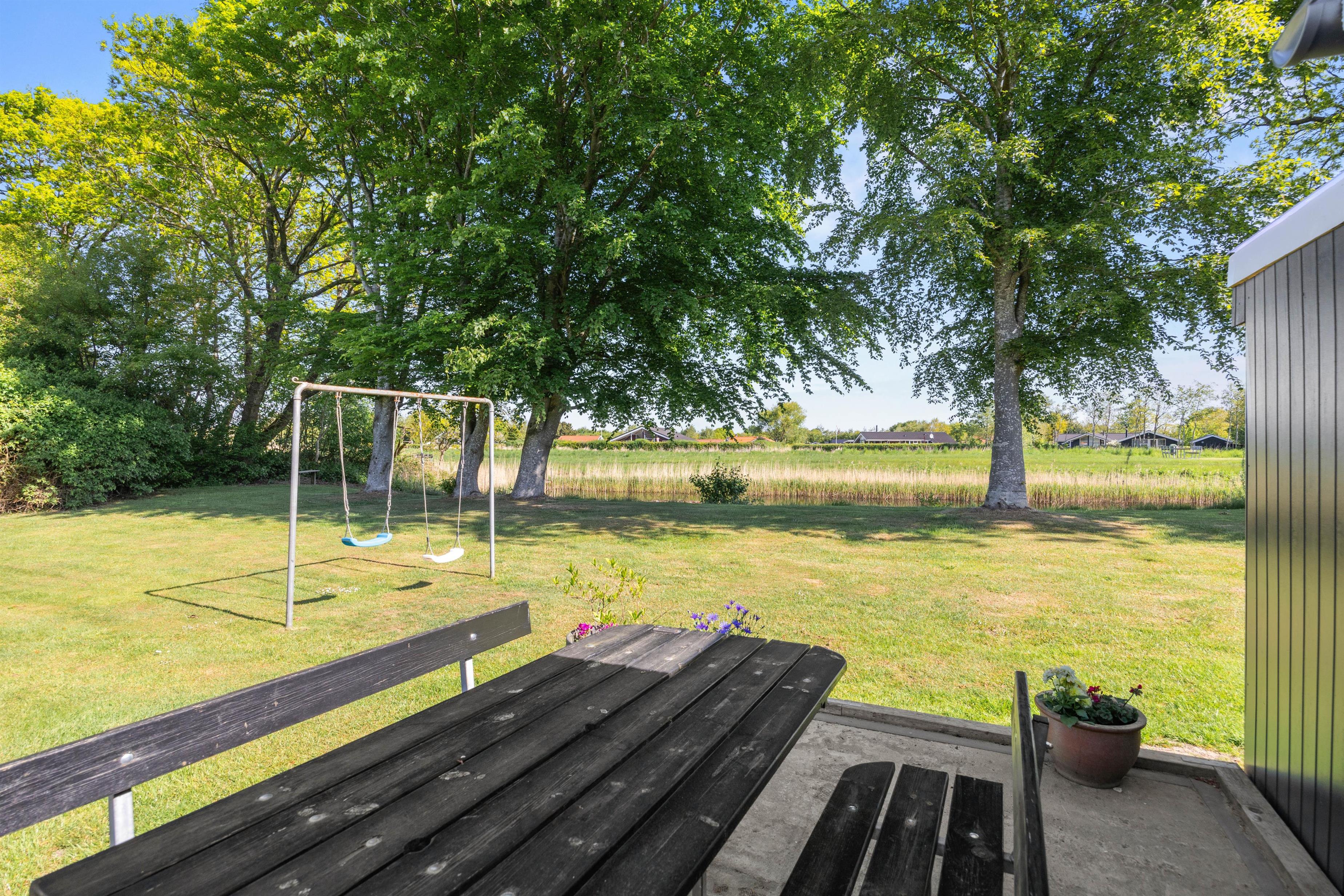 Ude i haven venter mange afslappende stunder. På Mosevænget 36 finder I 2 gode terrasser, begge indrettet med fine havemøbler, der indbyder til hyggelige stunder under åben himmel. I kan også lægge jer til rette på solvognen under parasollen, og slappe af med en god bog, imens familiens mindste brænder krudt af på gyngestativet.
