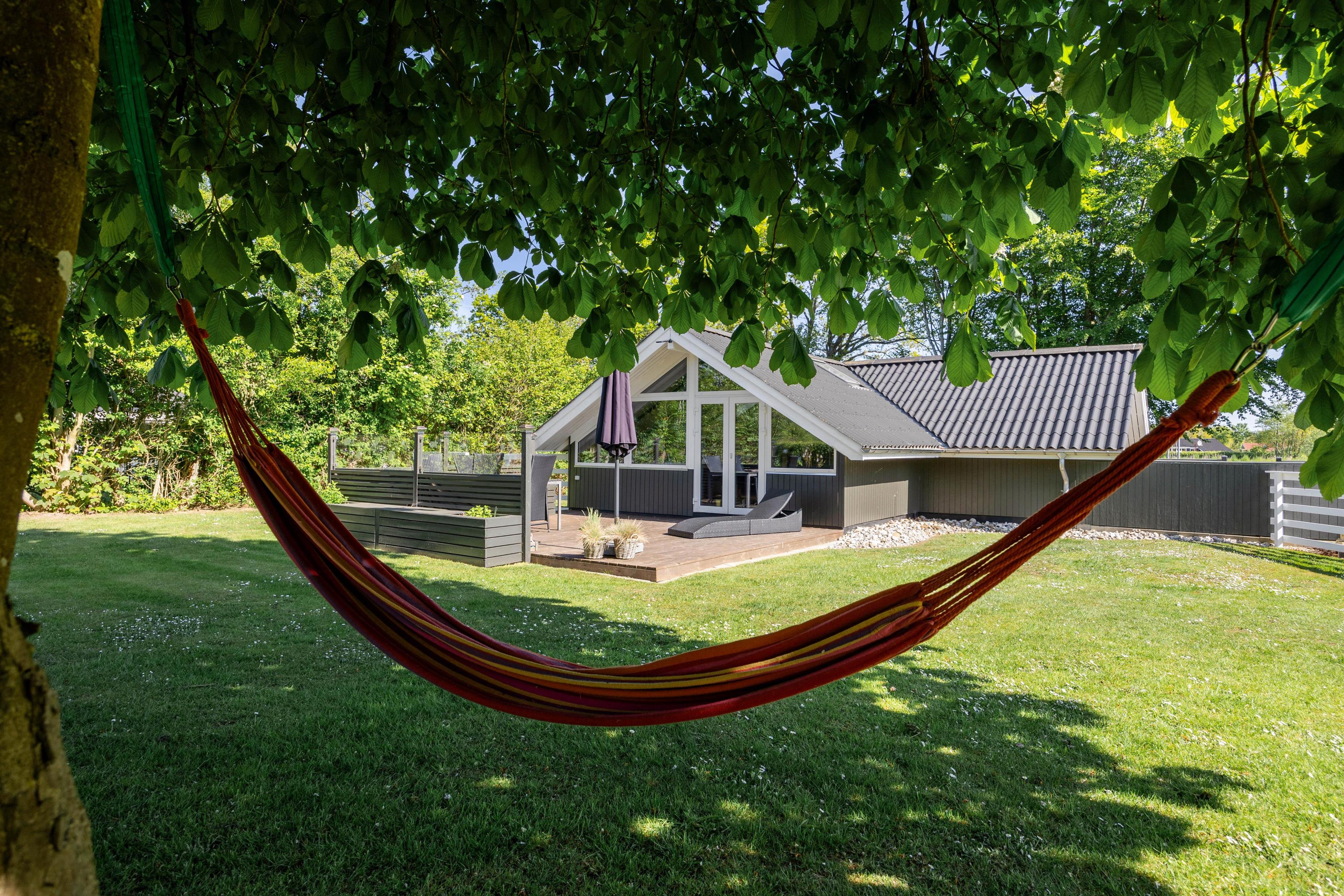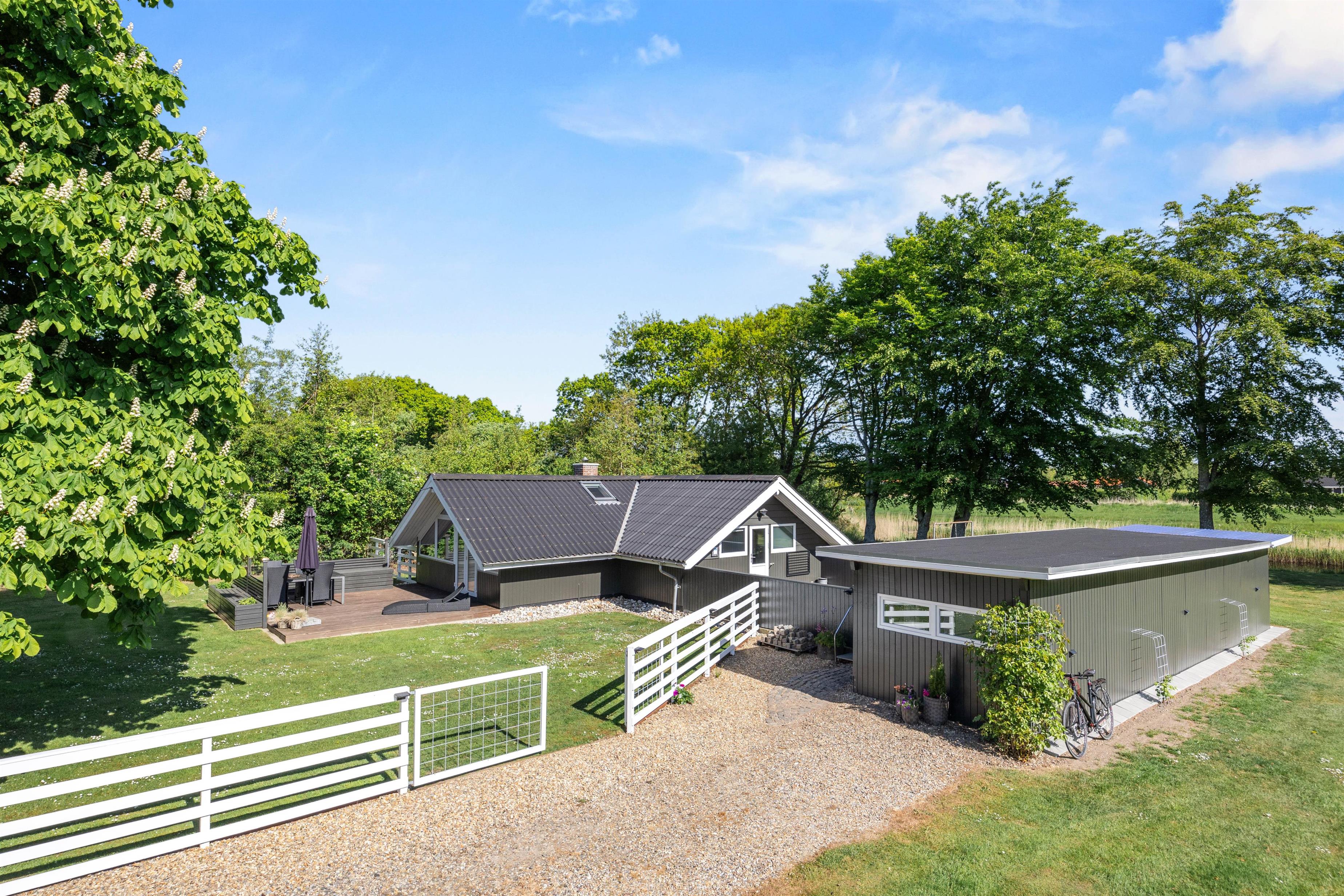 Ejendommen er omgivet af store træer, så I er uforstyrret, og kan nyde freden og roen i private omgivelser. Om aftenen kan I tænde op i grillen og nyde lækker grillmad i det fri, hvilket skaber den perfekte afslutning på en dejlig feriedag. Her kan I være sikre på at opleve ægte ferieidyl, hvor naturens skønhed smelter sammen med komforten fra sommerhusets faciliteter.
