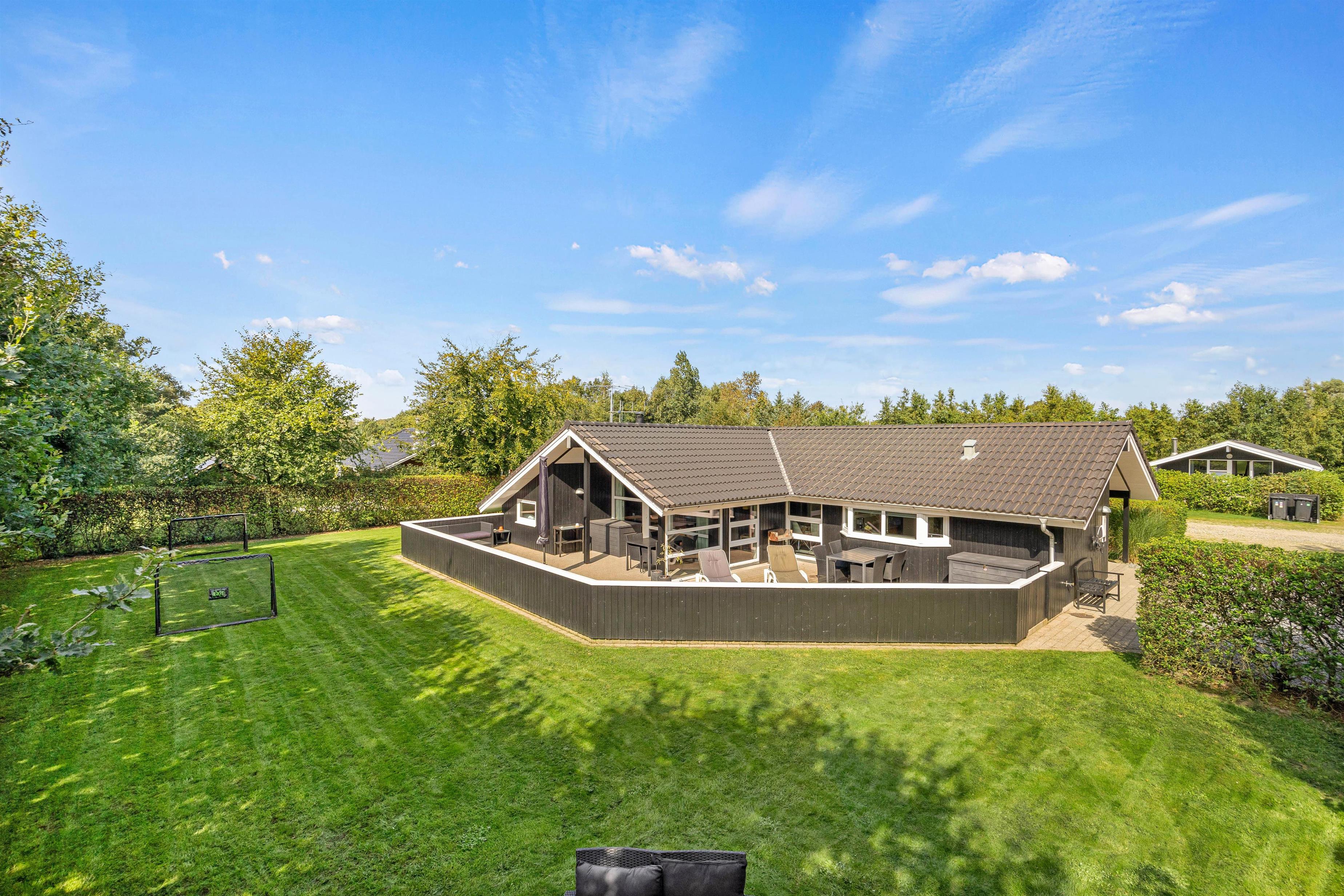 Udendørsområdet ved sommerhuset byder på en indbydende og aflukket terrasse, hvor I kan lade småbørnene boltre sig trygt og sikkert. Her finder I alt, hvad I behøver til en perfekt ferieoplevelse - fra grill til havemøbler, solvogne og en parasol, der skaber ideelle rammer for dage og aftener under åben himmel. Måske frister det med hjemmelavede burgere på grillen?