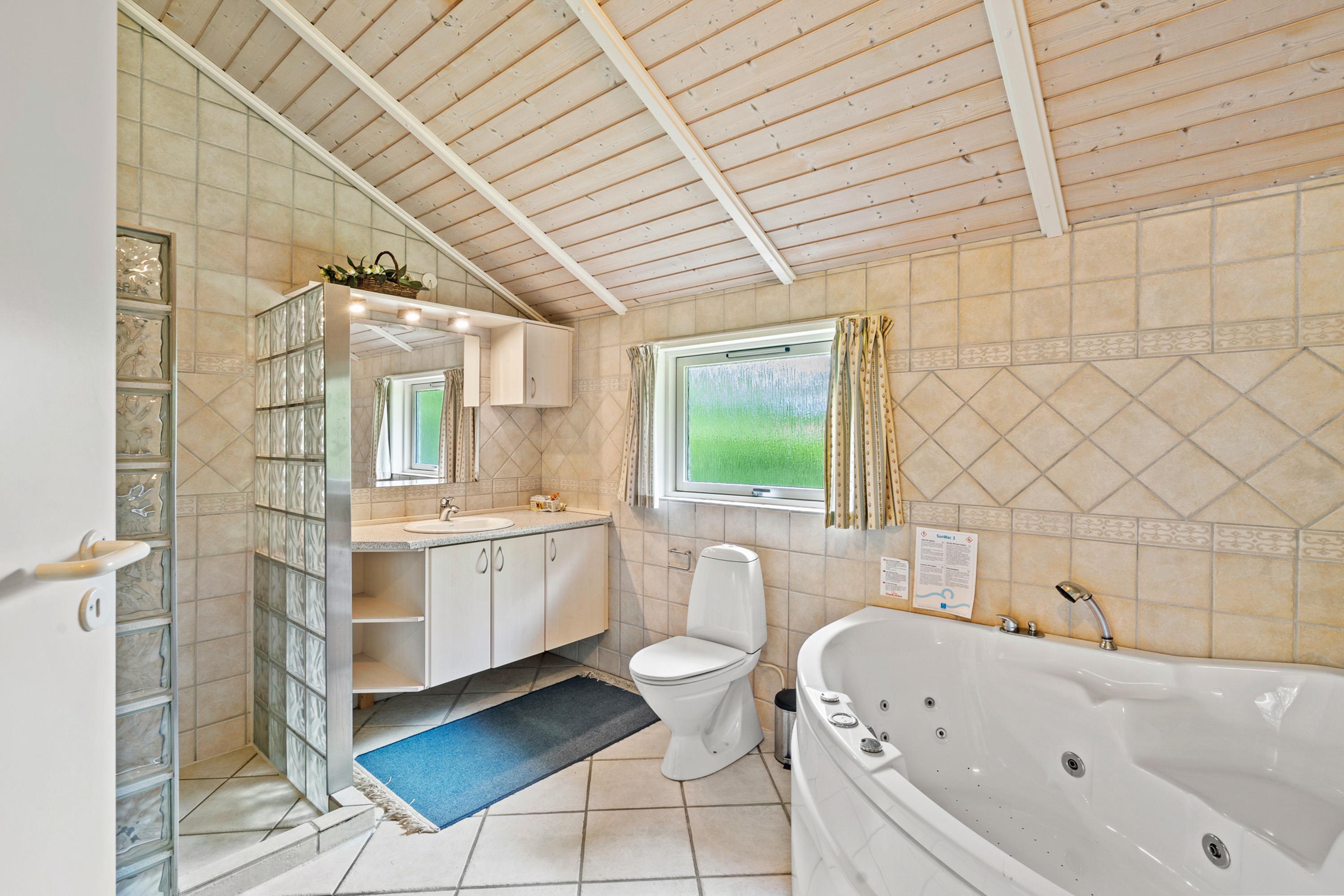 Et af højdepunkterne i sommerhuset på Strandvænget 48 i Bork Havn finder I på badeværelset. Her venter jer nemlig en dejlig spa og en skøn sauna, hvor I kan tilbringe mange afslappende stunder i løbet af ferien, hvor I kommer helt ned i gear.