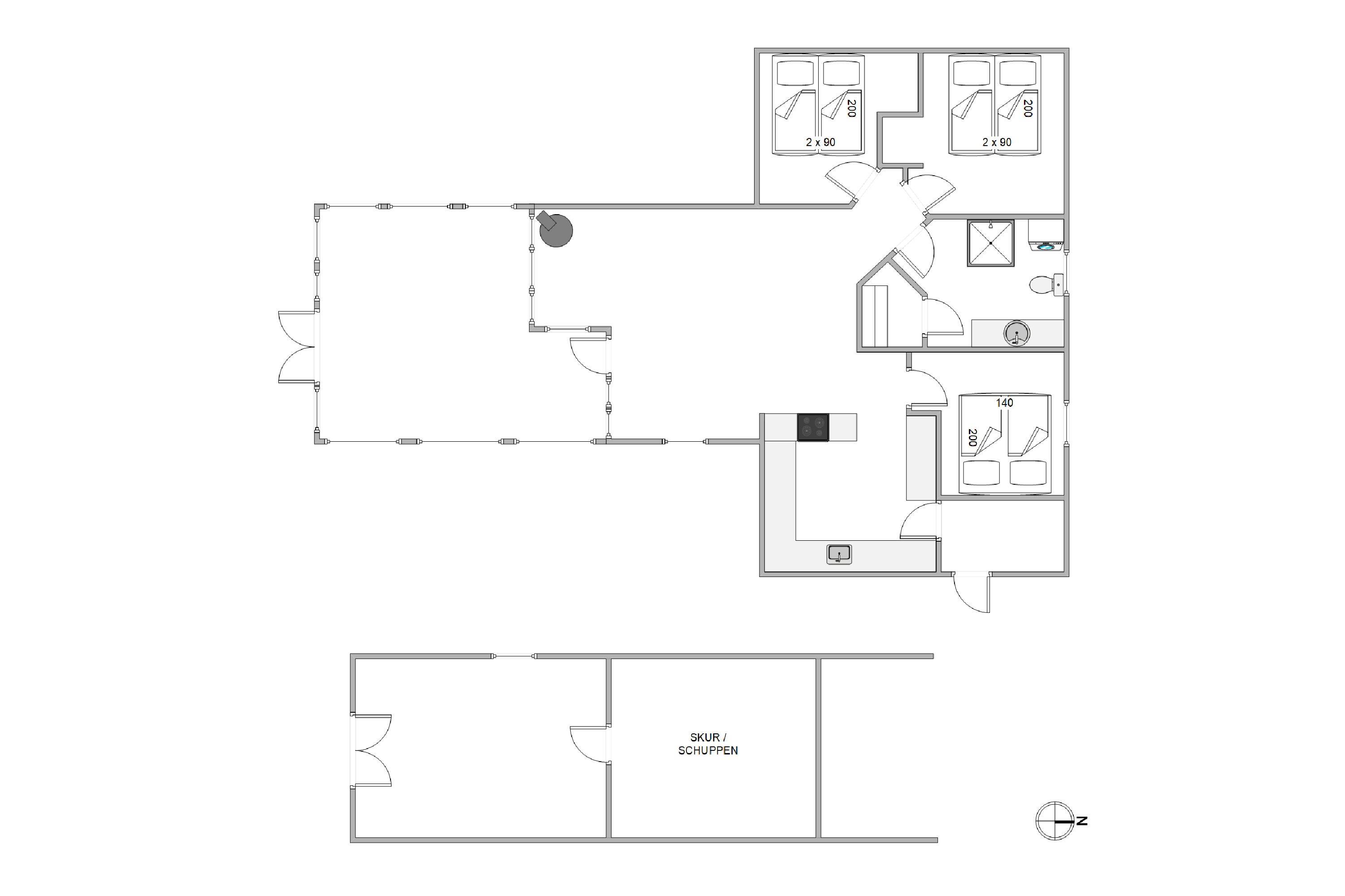 Bevæger I jer videre finder I også sommerhusets badeværelse, hvor en sauna tilbyder ren luksus og muligheden for at slappe af og genoplade. Sommerhuset rummer 3 komfortable soverum, hver indrettet med dobbeltsenge, som samlet giver plads til 6 personer til en god nats søvn. Med både en vaskemaskine og en tørretumbler til rådighed i sommerhuset, har I også de perfekte faciliteter til at holde styr på vasketøjet gennem hele jeres ophold.