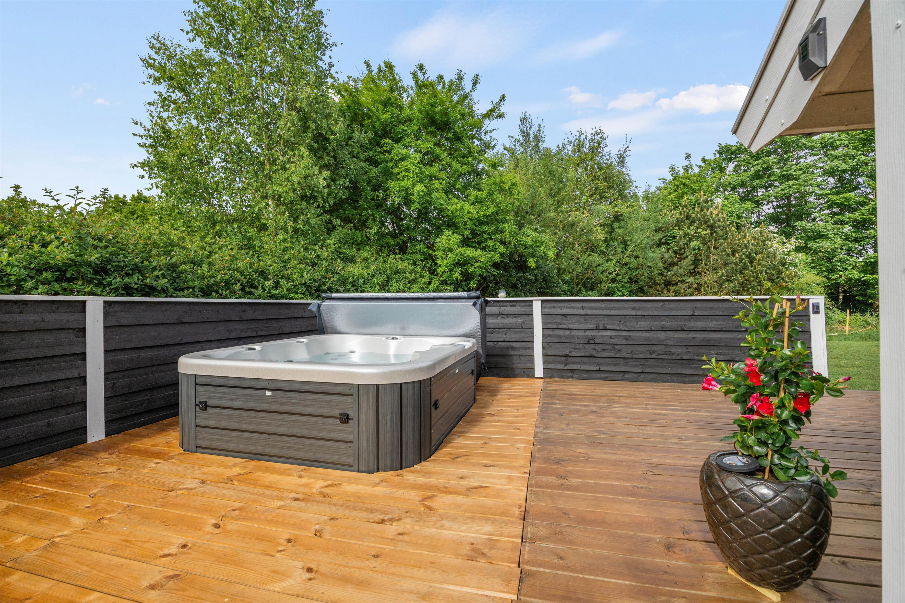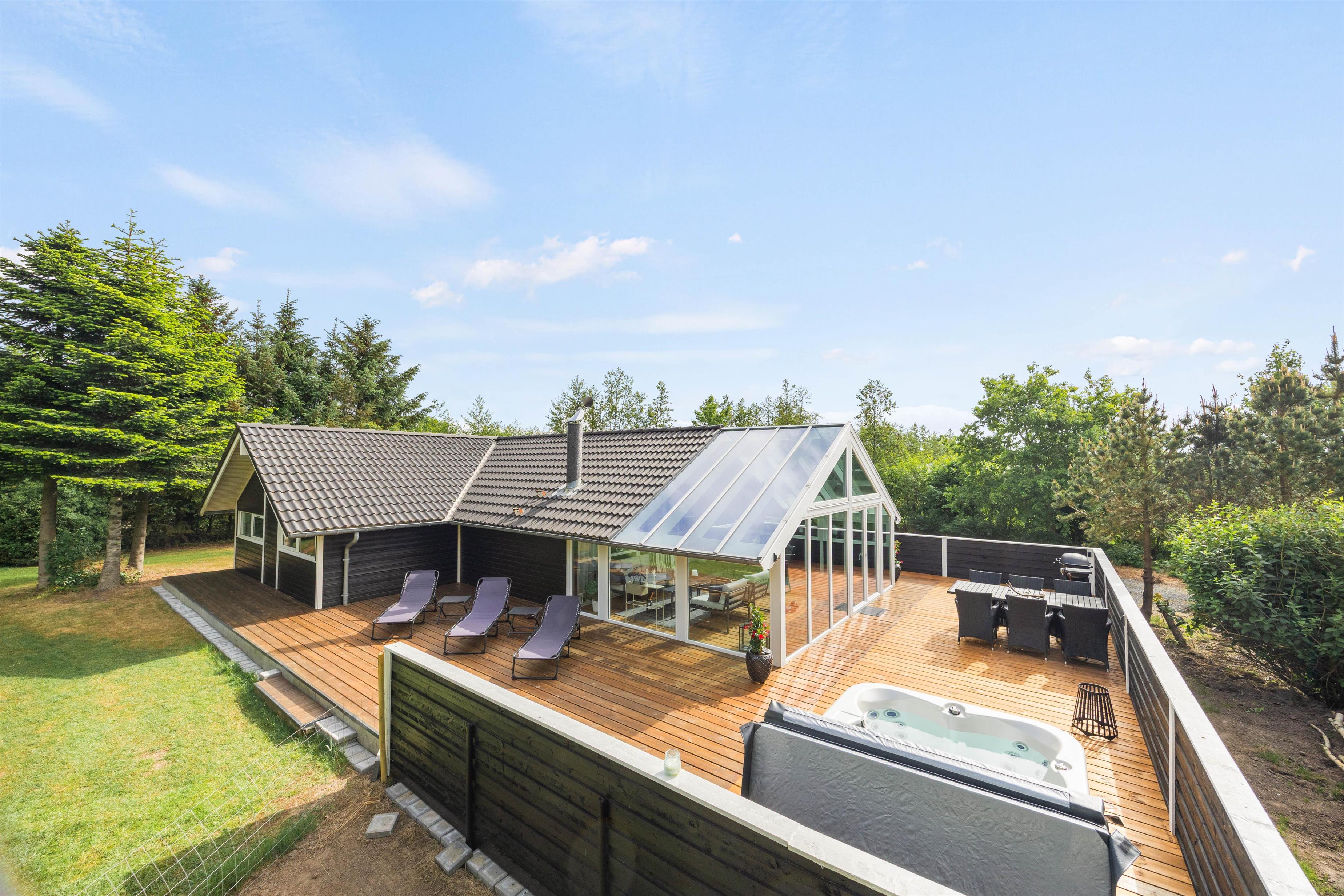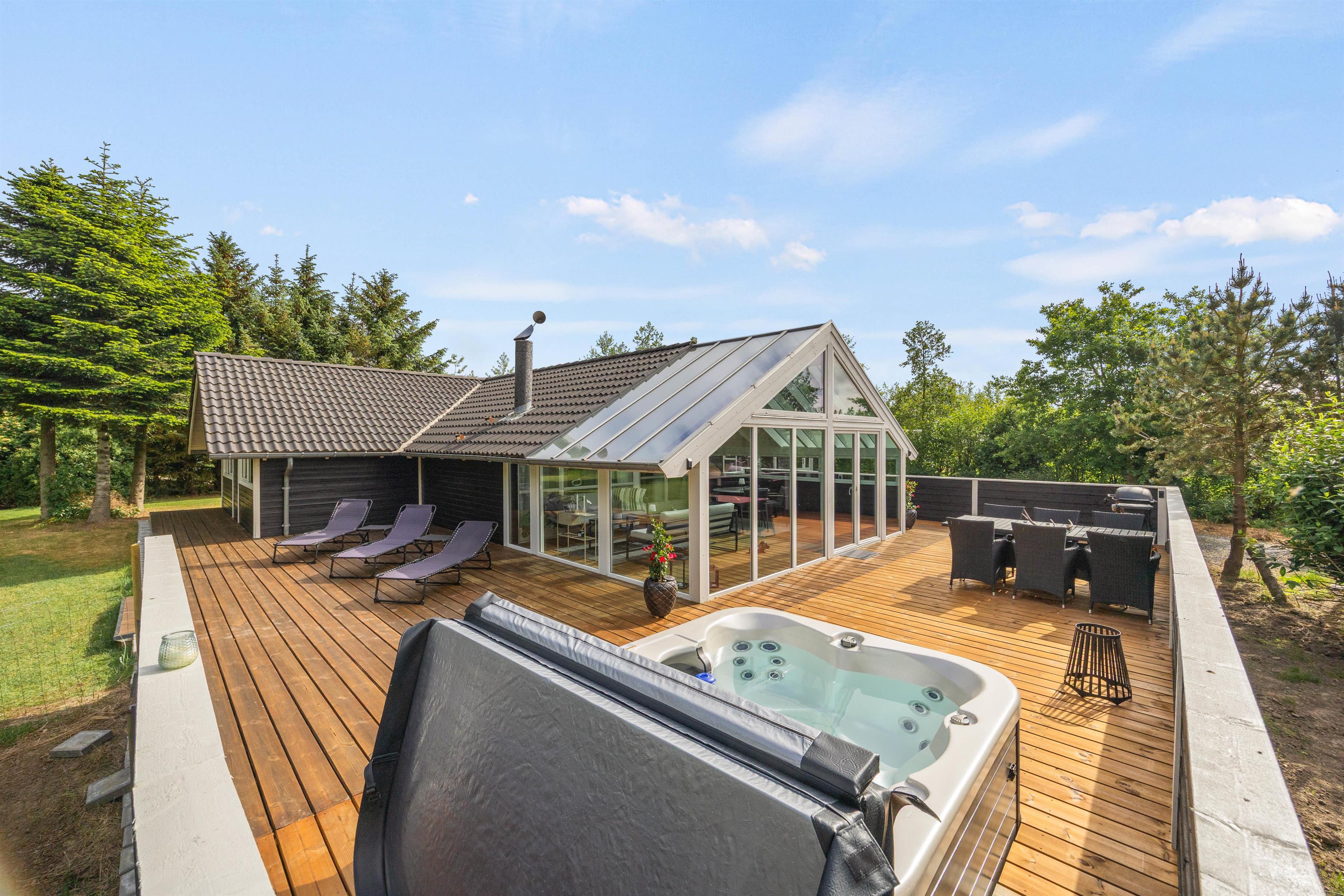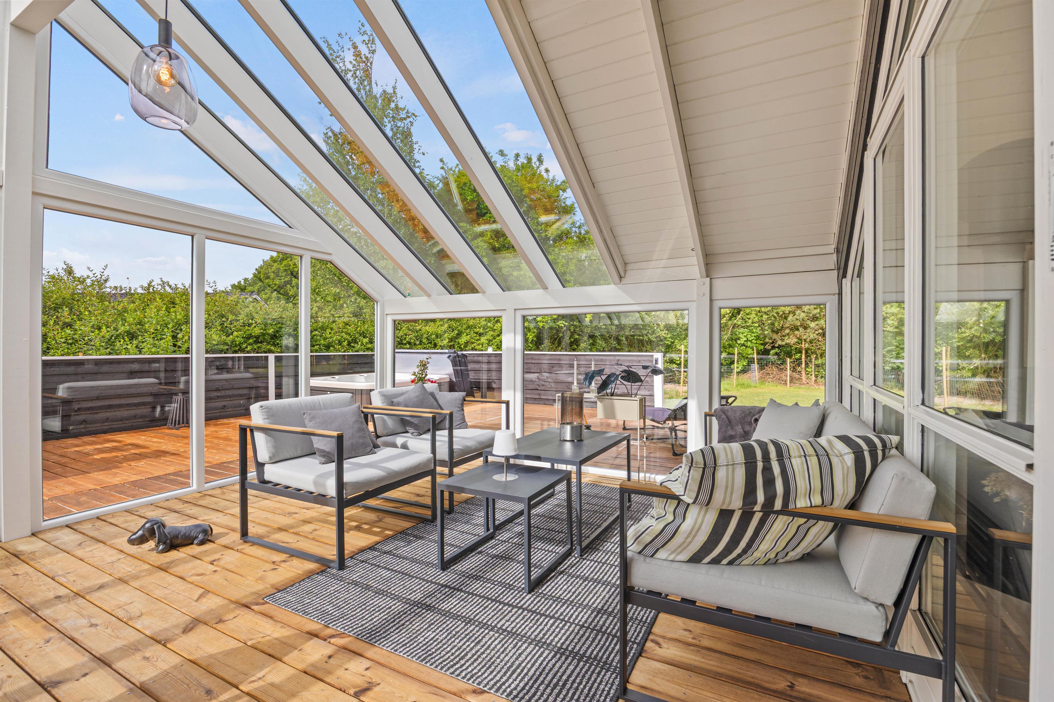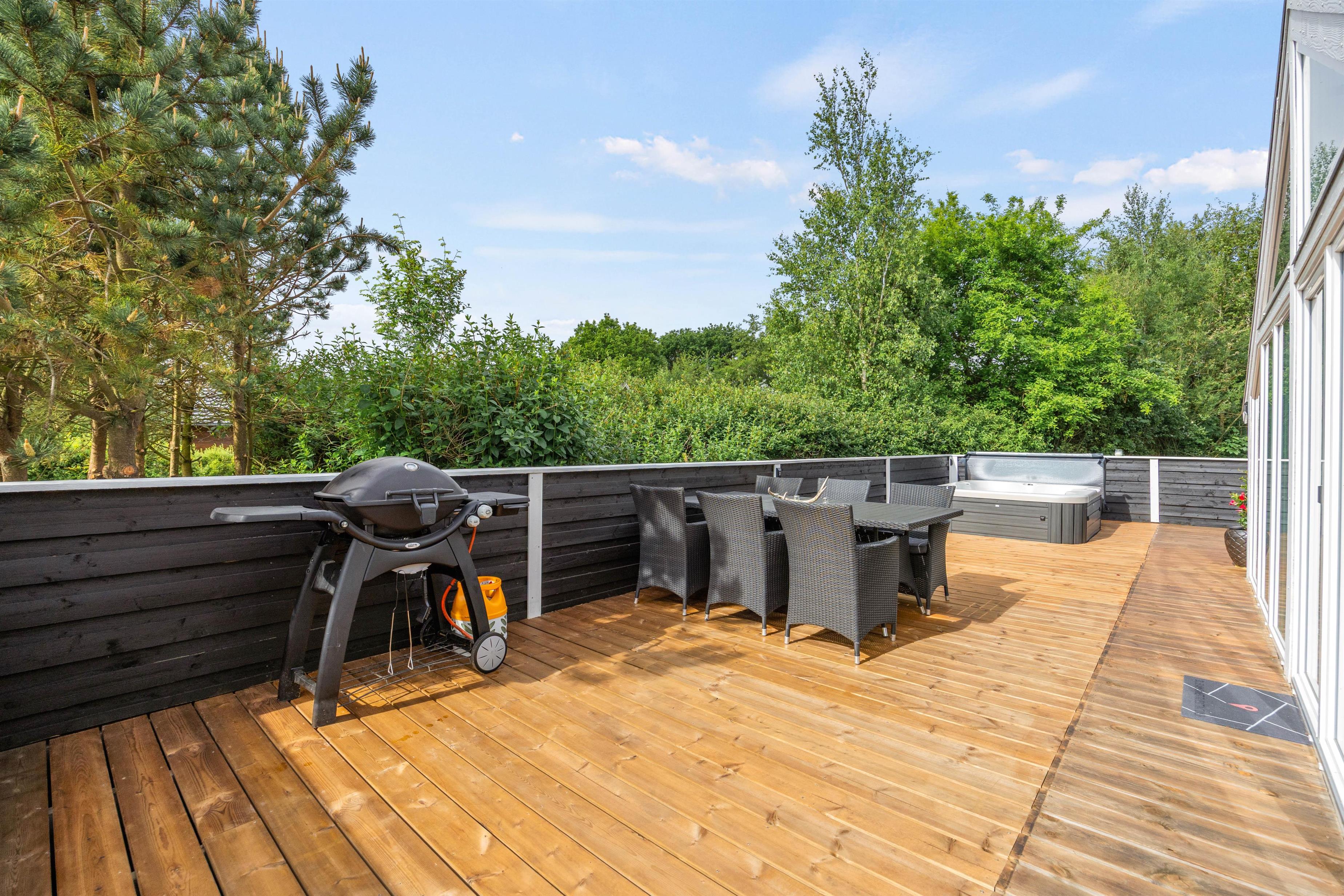 Den åbne, afskærmede og overdækkede terrasse giver jer mulighed for at nyde udendørslivet uanset vejret. Her kan I samles til hyggelige måltider, tilberedt på husets gasgrill, og nyde aftenerne i det fri. Skal der lidt ekstra afslapning til, kan I med fordel synke ned i udespaen, der har plads til 5 personer, hvor I kan slappe af i det varme vand og nyde livet under åben himmel, mens stjernerne titter frem.