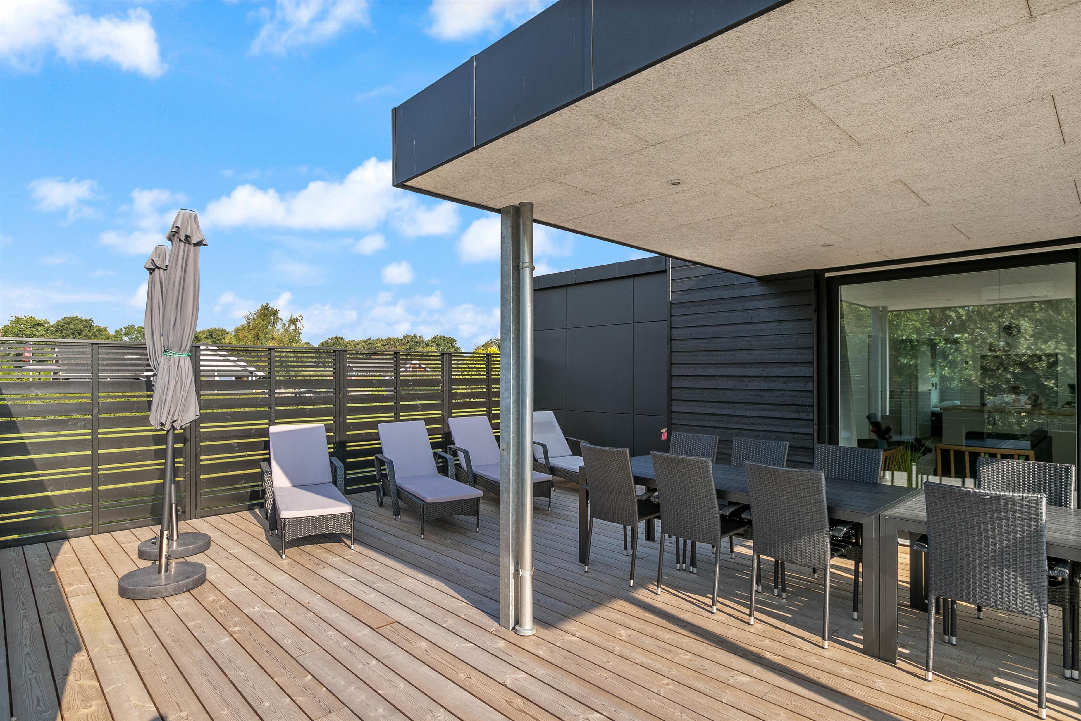Her er der tænkt på alle detaljer for en uforglemmelig udendørs oplevelse, med en gasgrill til de hyggelige sommeraftener, hvor duften af grillmad blander sig med den friske luft. Terrassen er alsidigt indrettet med åbne og afskærmede sektioner, samt en overdækket del, hvilket skaber de perfekte rammer for hygge og samvær i al slags vejr.