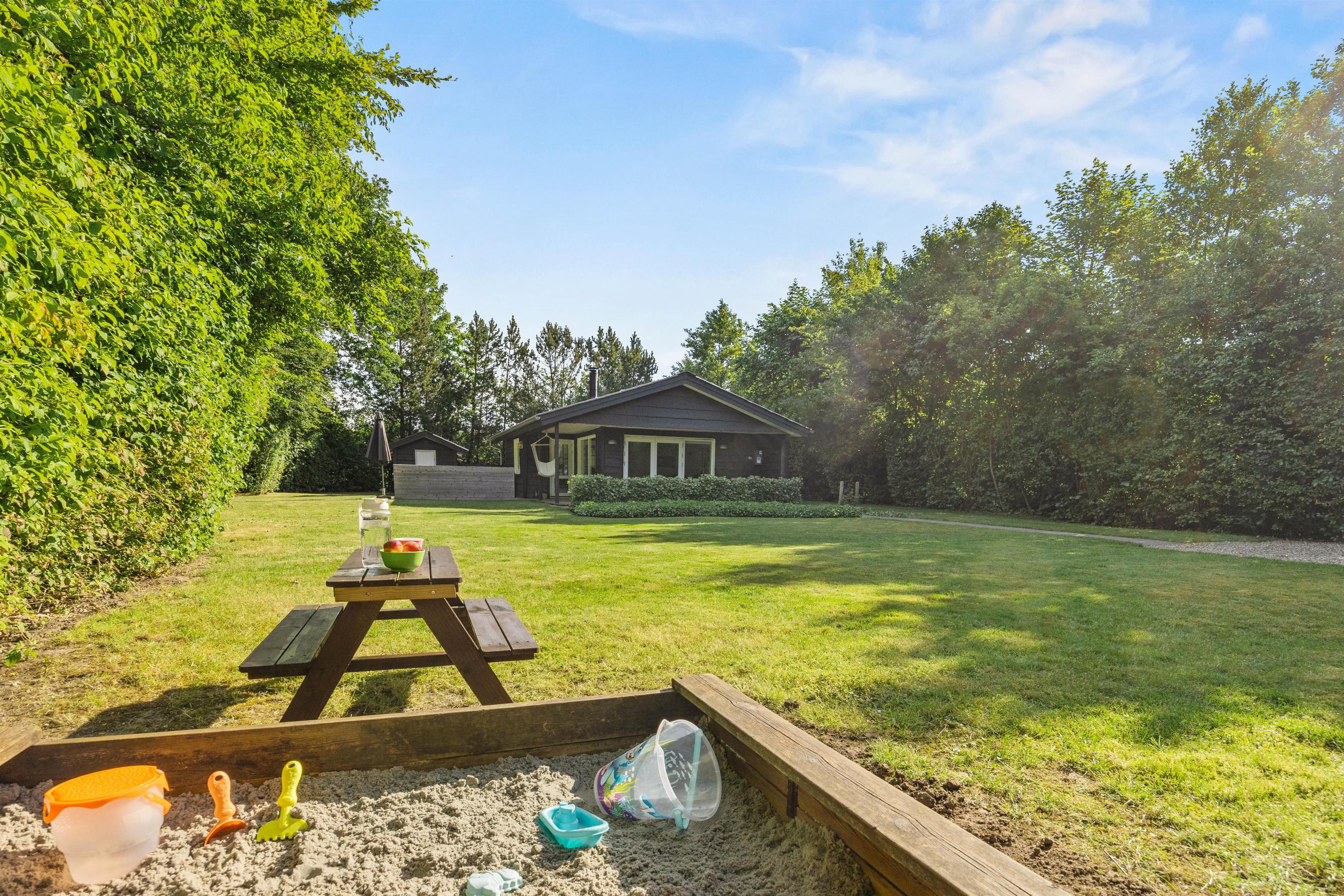 Denne feriebolig sørger for, at I kan nyde jeres ferie, uanset hvad vejret bringer. På de kølige feriedage kan I tænde op i brændeovnen og nyde de varme flammer, som skaber hyggelige stunder i stuen, hvor I kan nyde en god bog eller et brætspil med familien. Badeværelset har gulvvarme for ekstra komfort. Udendørs finder I terrassen, der giver mulighed for at sidde både under halvtag eller åben himmel. Samtidig er terrassen afskærmet så det er et oplagt sted, at nyde en dejlig kop morgenkaffe eller aftensmad mens mørket falder på.