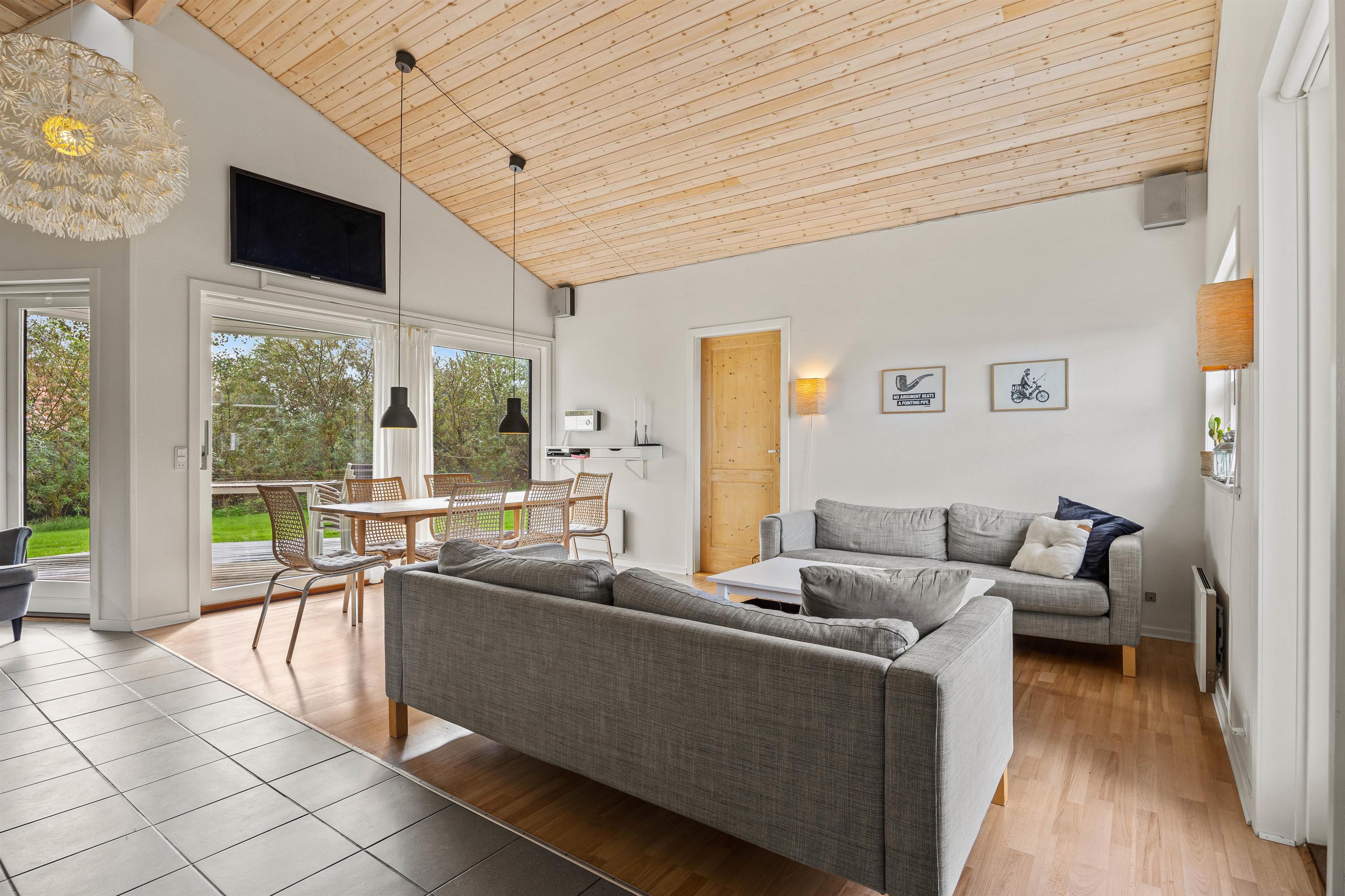 Fra første øjeblik vil I føle jer hjemme. Her er nemlig sørget for alle bekvemmelighederne, man kender fra hverdagen. Her kan hele familien eller vennerne folde sig ud og tilbringe nogle skønne dage sammen. Her er rart at være med højt til loftet og de store vinduer, som lukker naturen indenfor.