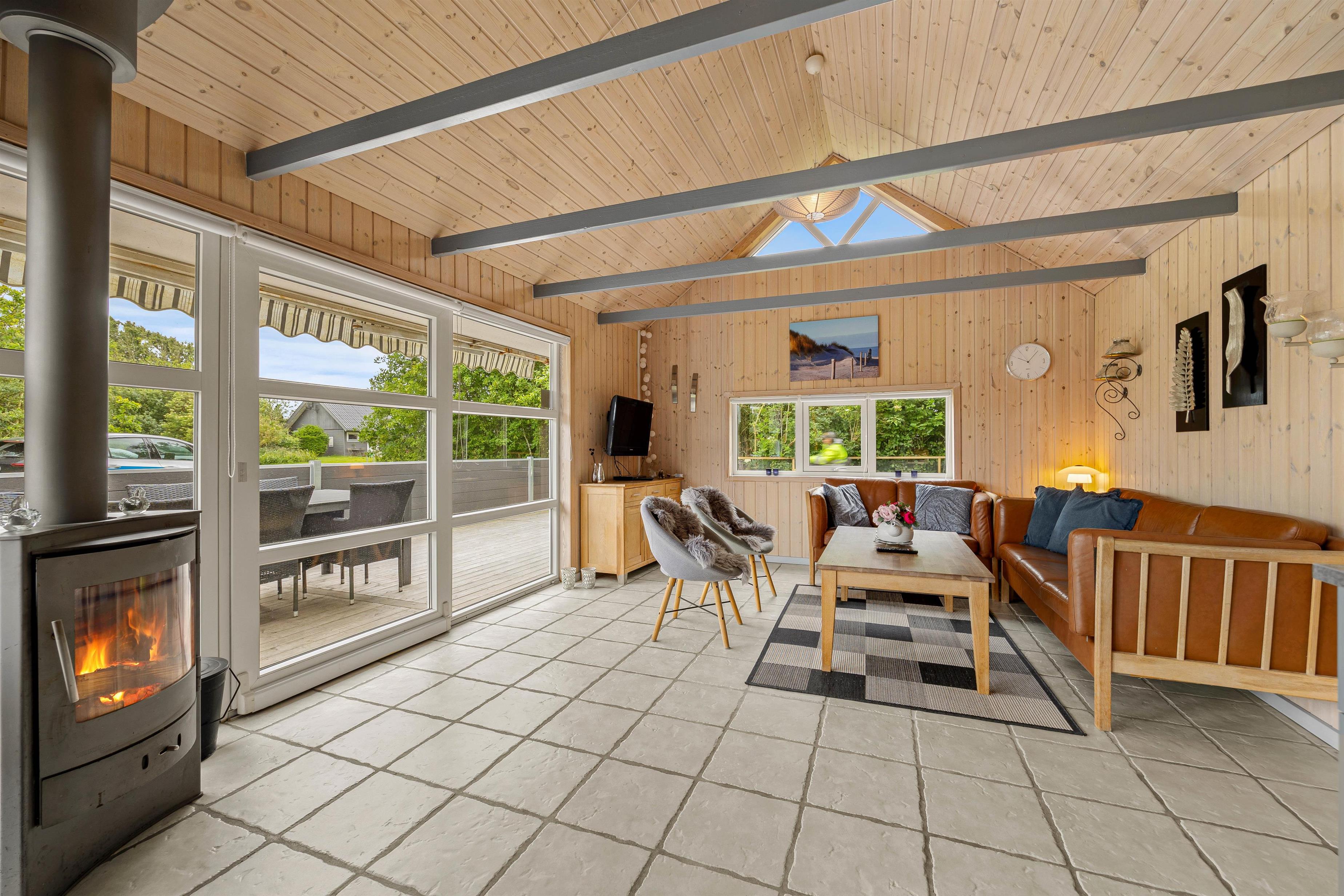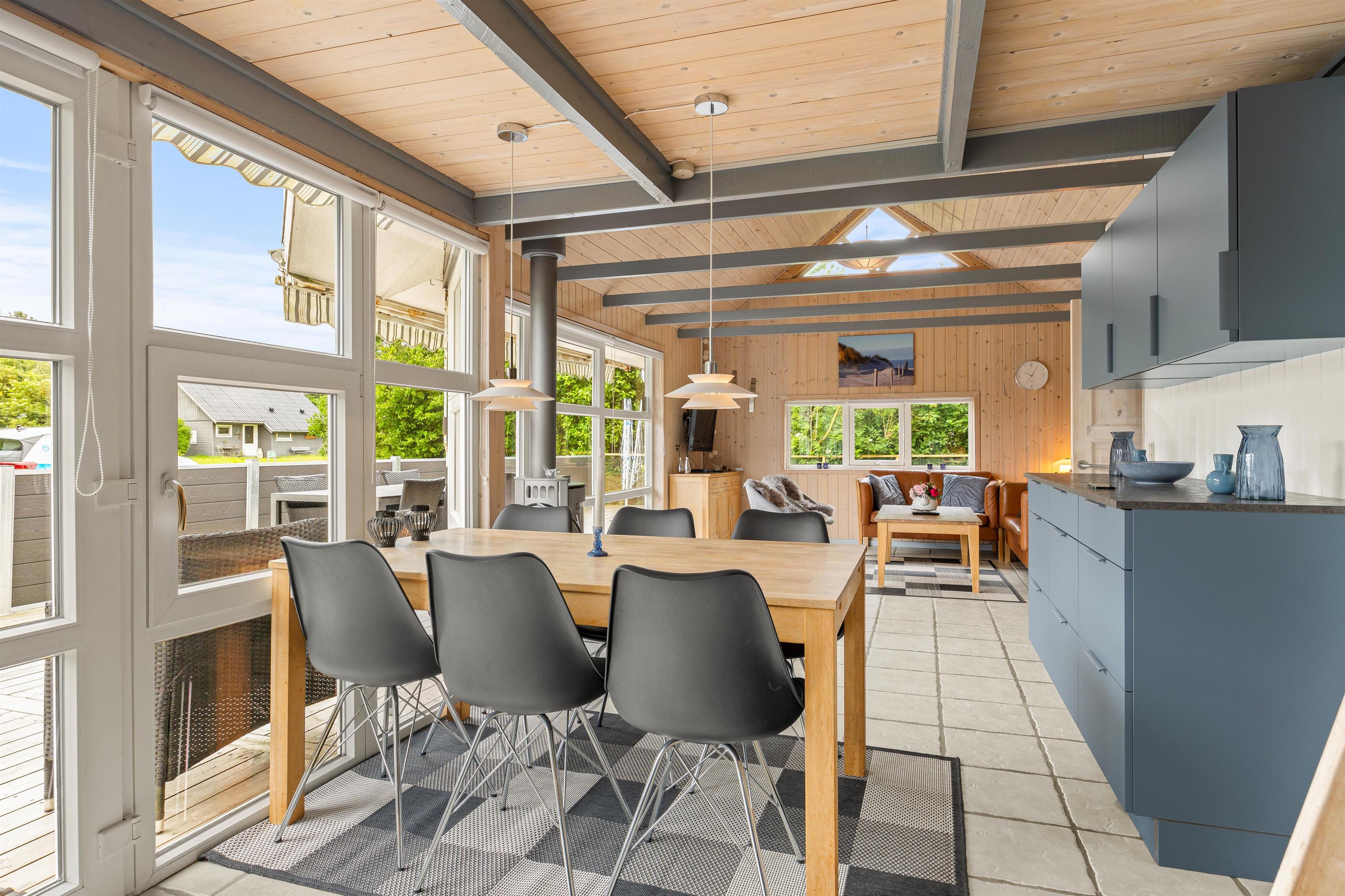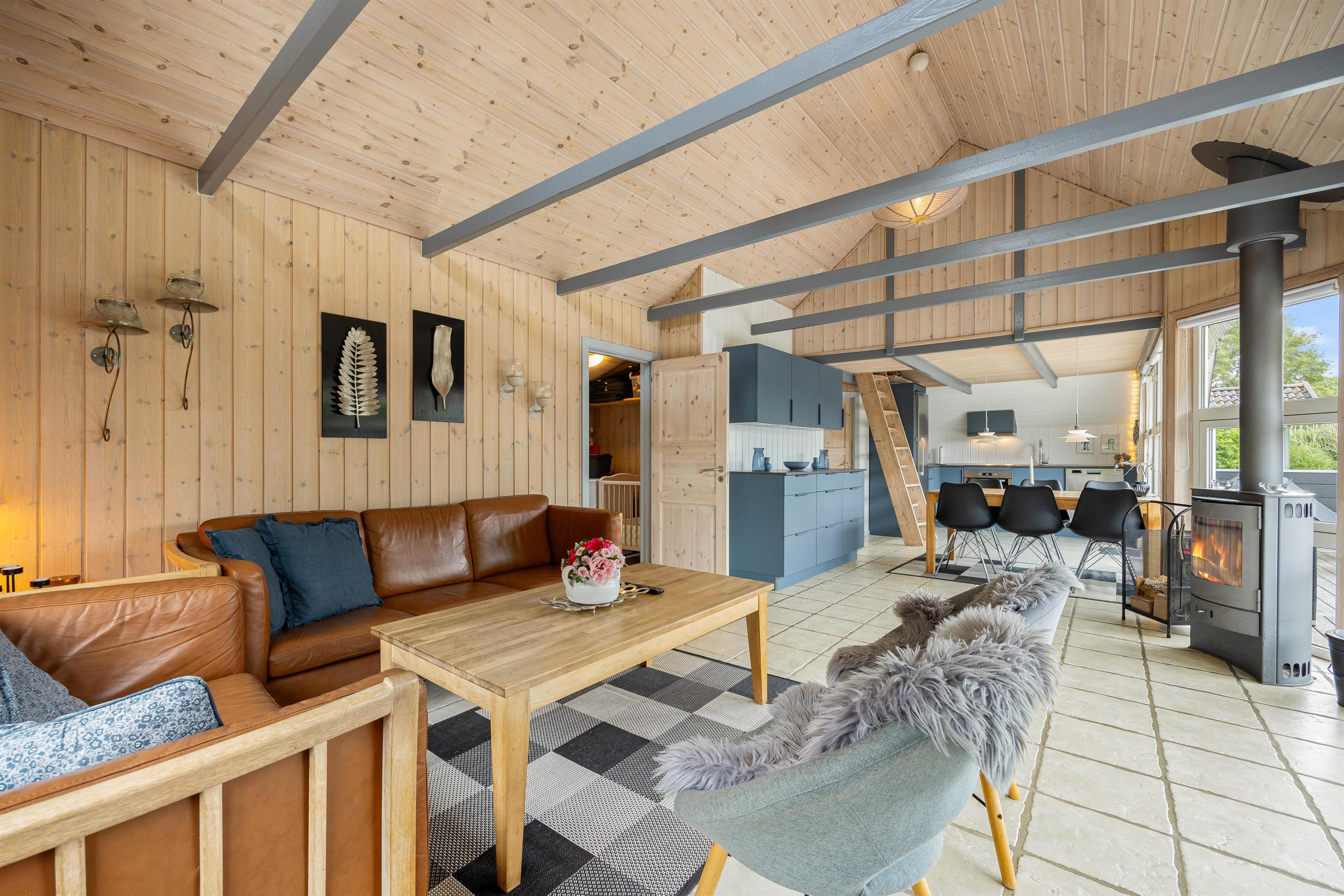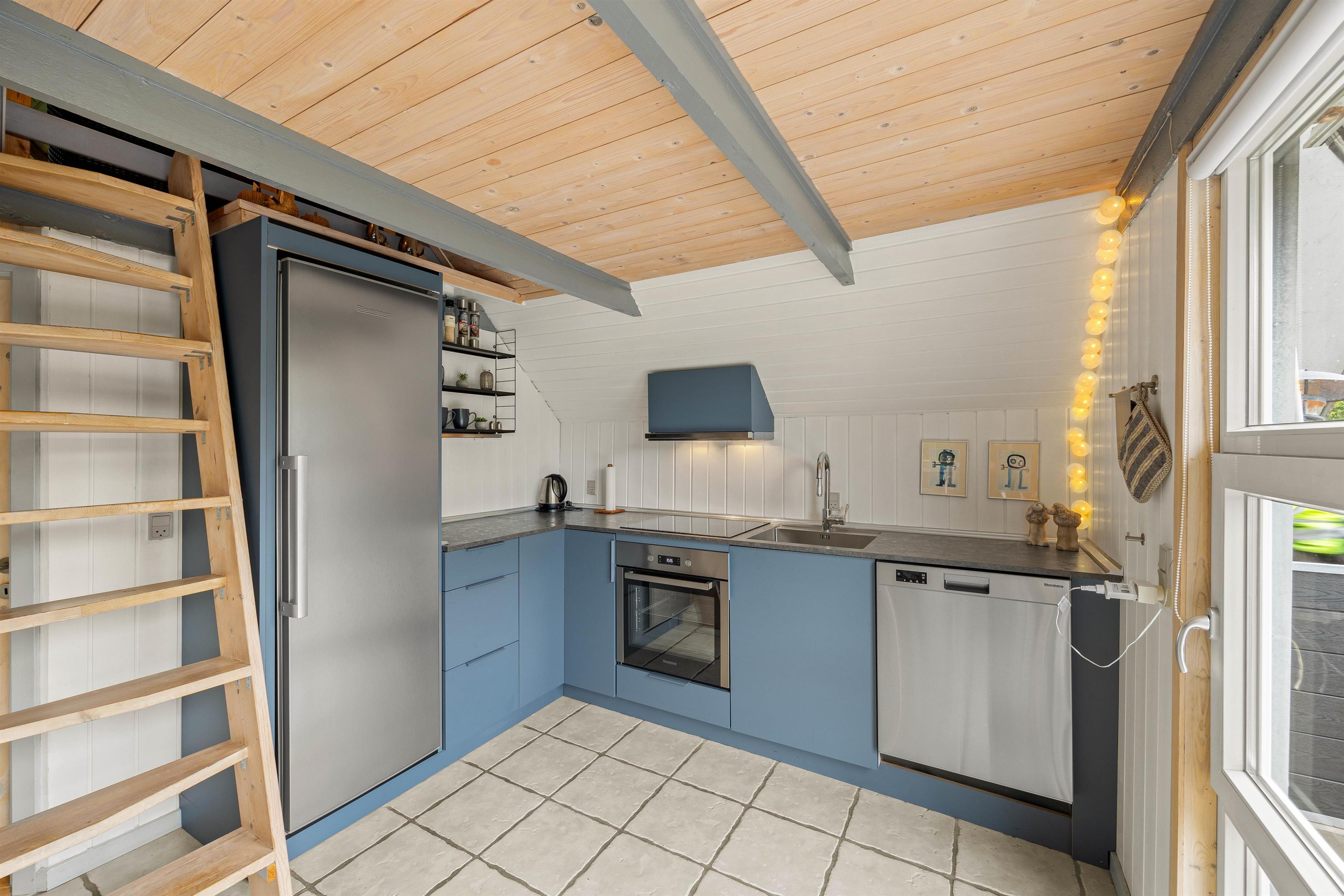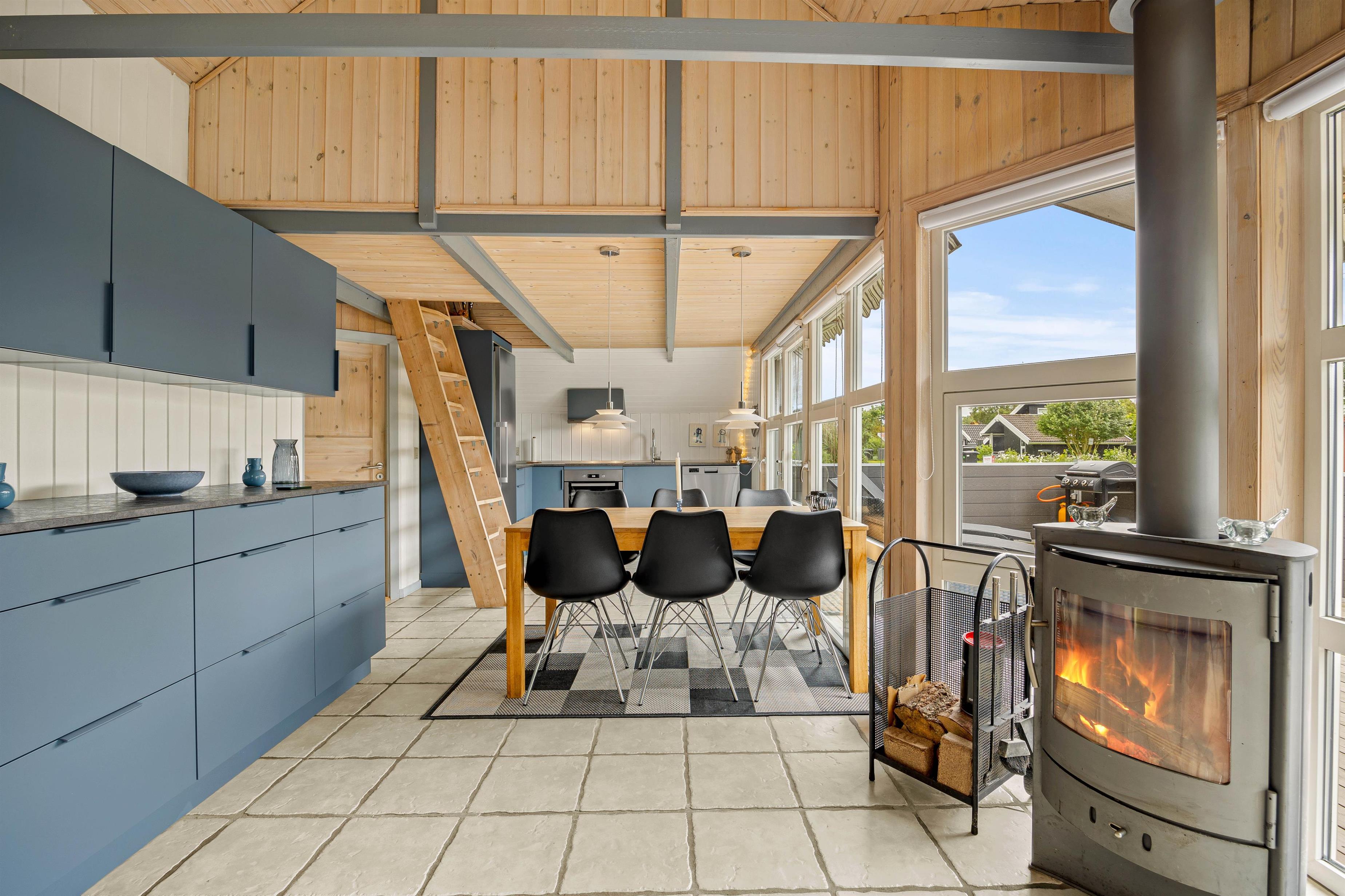Indenfor byder sommerhuset på et funktionelt og moderne køkken udstyret med en opvaskemaskine, hvilket gør madlavningen og hverdagen nem og bekvem for jer. Stuen er indrettet med en hyggelig brændeovn, der skaber en varm og indbydende atmosfære, perfekt til afslapning efter en dag med udflugter.