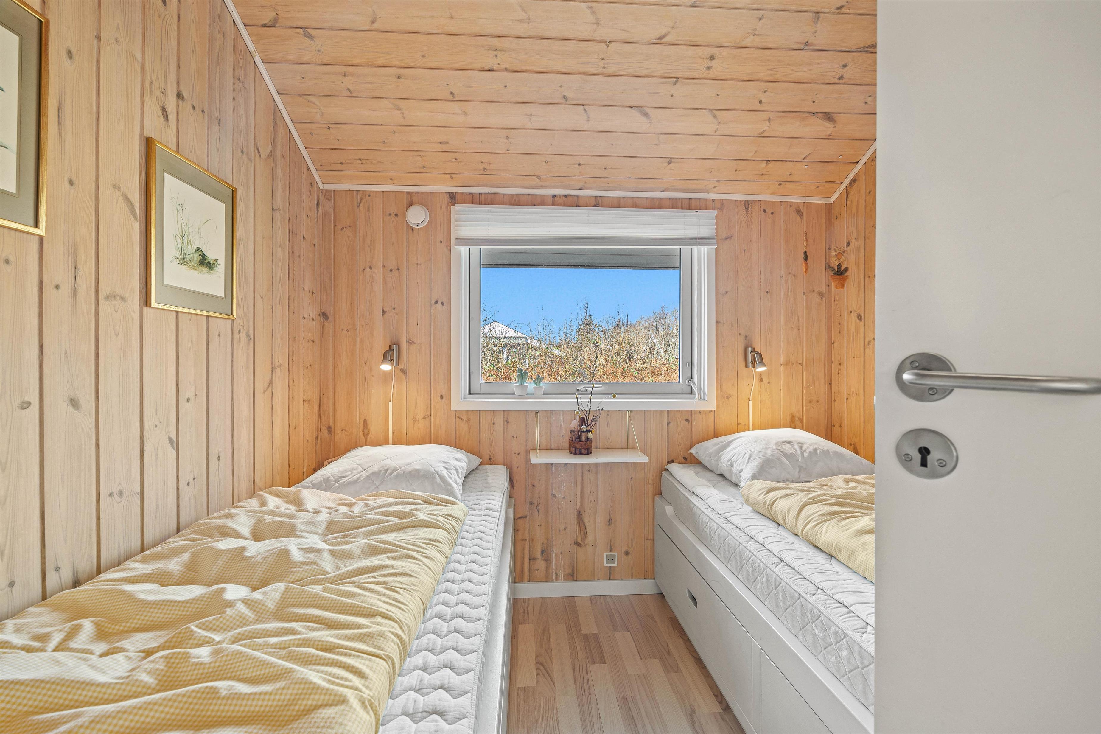 De 2 soveværelser er indrettet med en dobbeltseng i det ene og 2 enkeltsenge i det andet, hvilket gør det perfekt til børnefamilier. Badeværelset byder på gulvvarme, som sikrer, at I ikke skal fryse tæerne på de ellers kolde morgener.