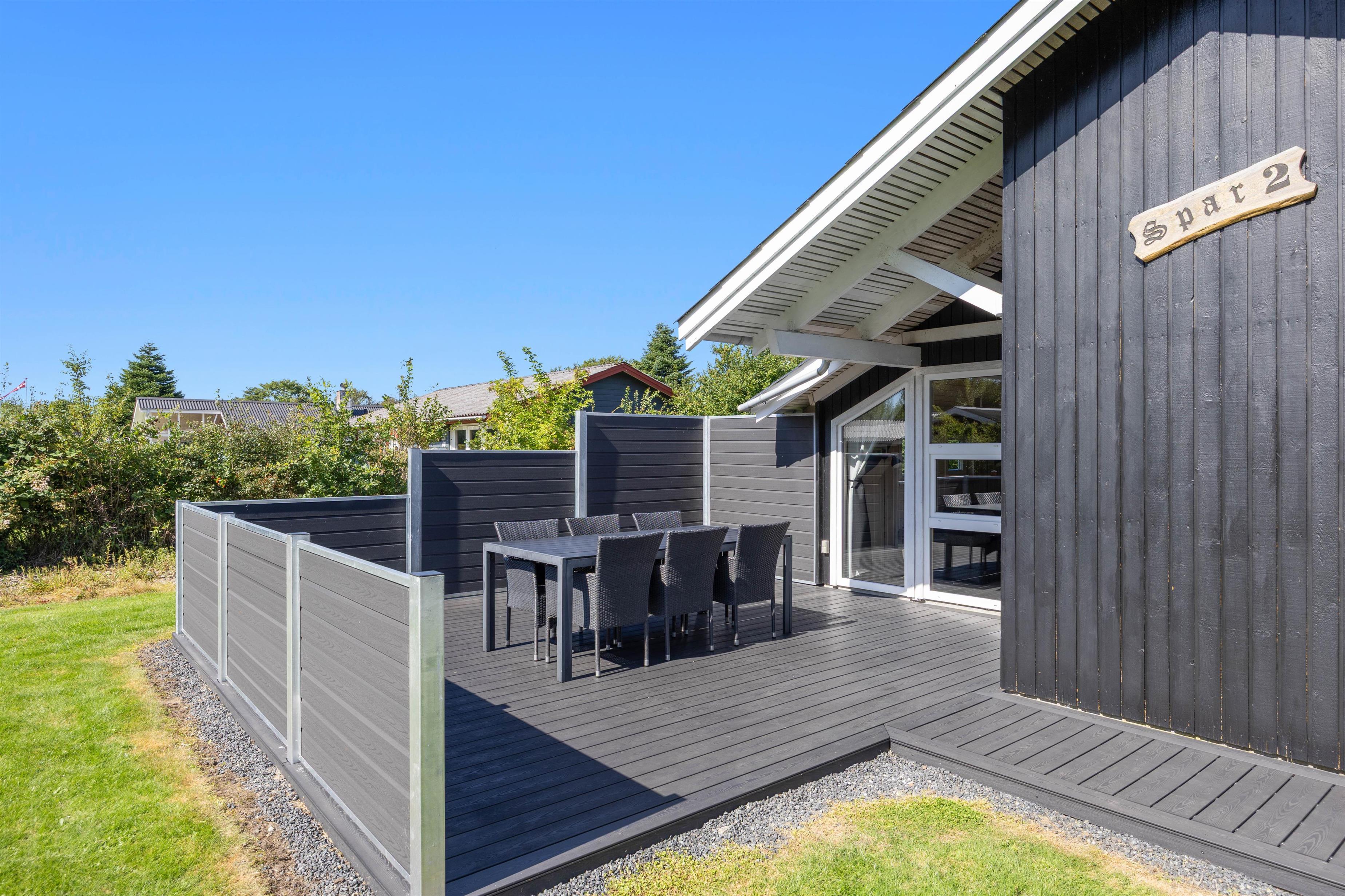 Sommerhuset har i alt 3 soverum, hvoraf 2 er indrettet med dobbeltsenge, der begge måler 160 centimeter i bredden. På det sidste værelse er der 2 enkeltsenge, så i alt 6 sovepladser. Badeværelset har en god størrelse, og gulvvarmen her sørger for, at I ikke får kolde fødder, når I stiger ud af spabadet eller kommer ud fra saunaen efter at være blevet varmet godt igennem.