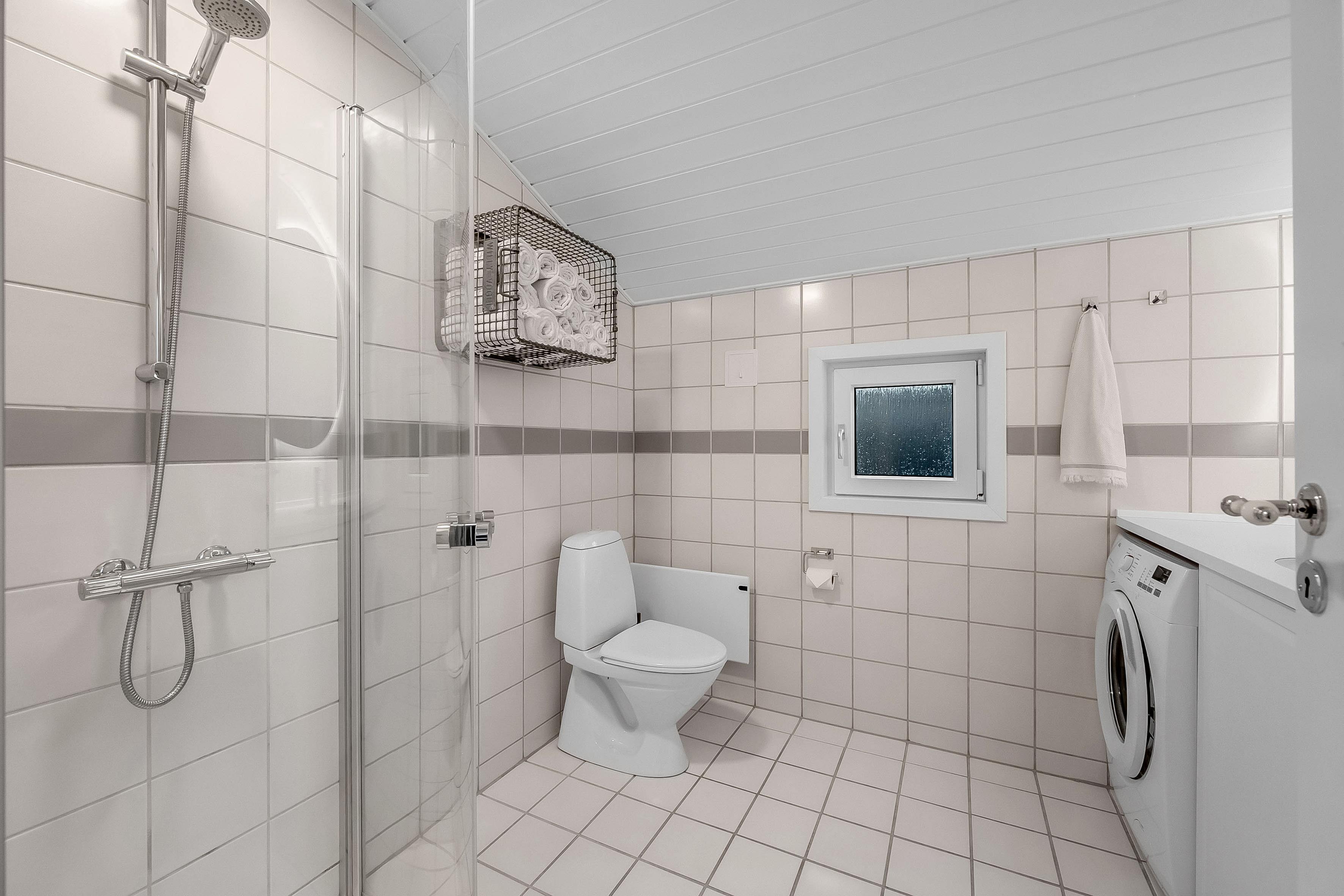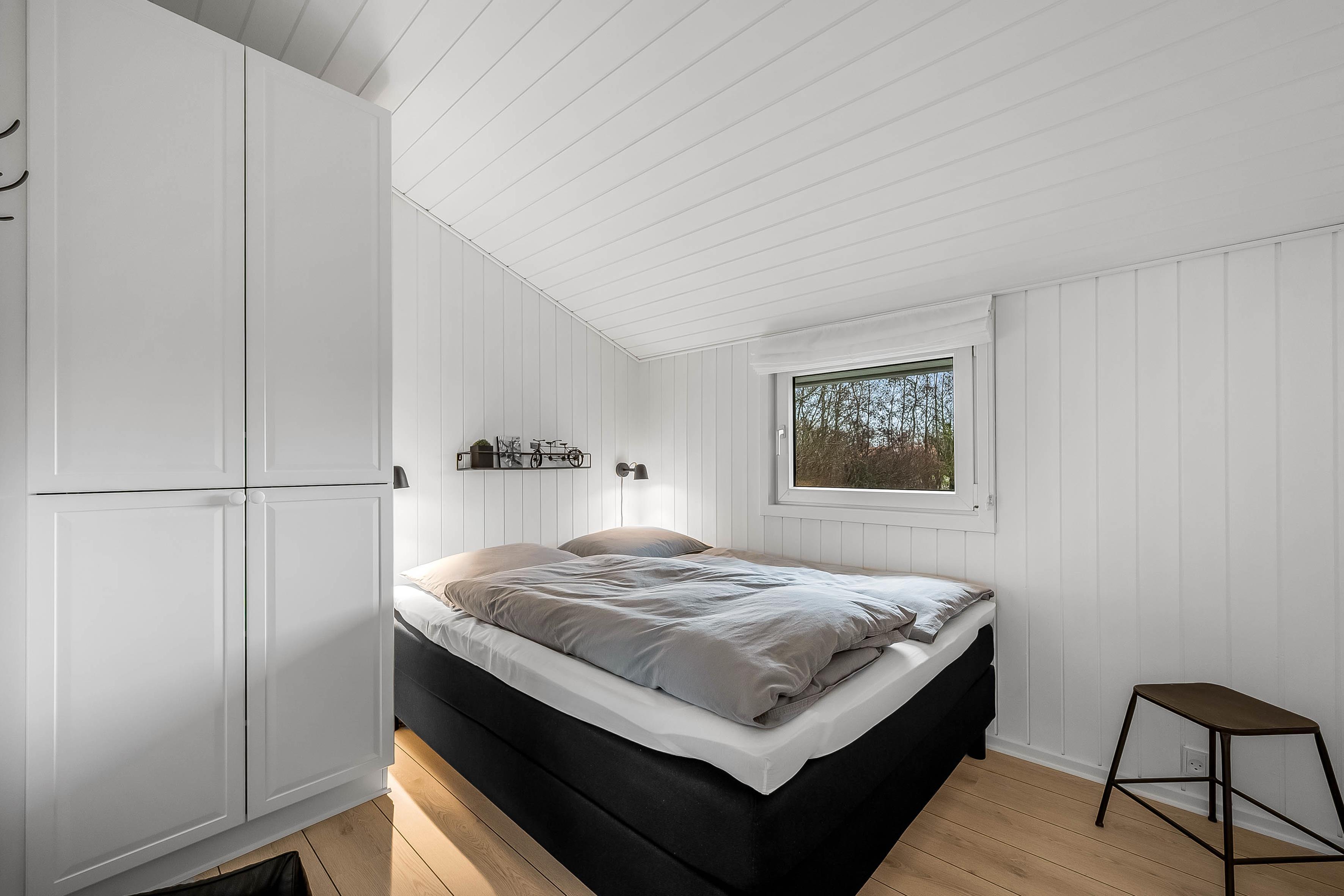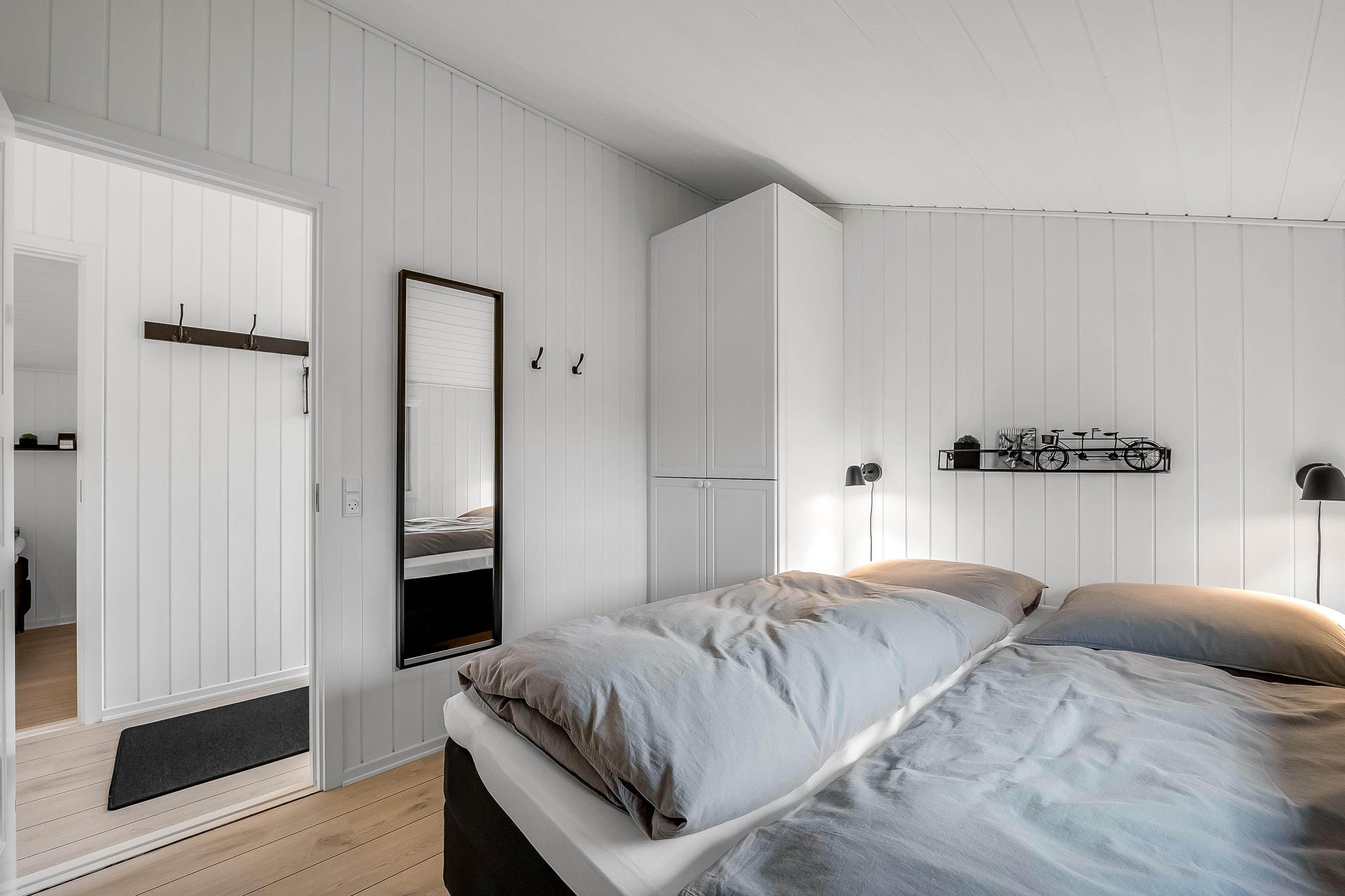 Den hyggelige alkove fungerer som en skøn hyggekrog i løbet af dagen og tilbyder en ekstra soveplads om natten. I sommerhuset er der to dejlige soveværelser med dobbeltsenge og et velholdt badeværelse med gulvvarme.