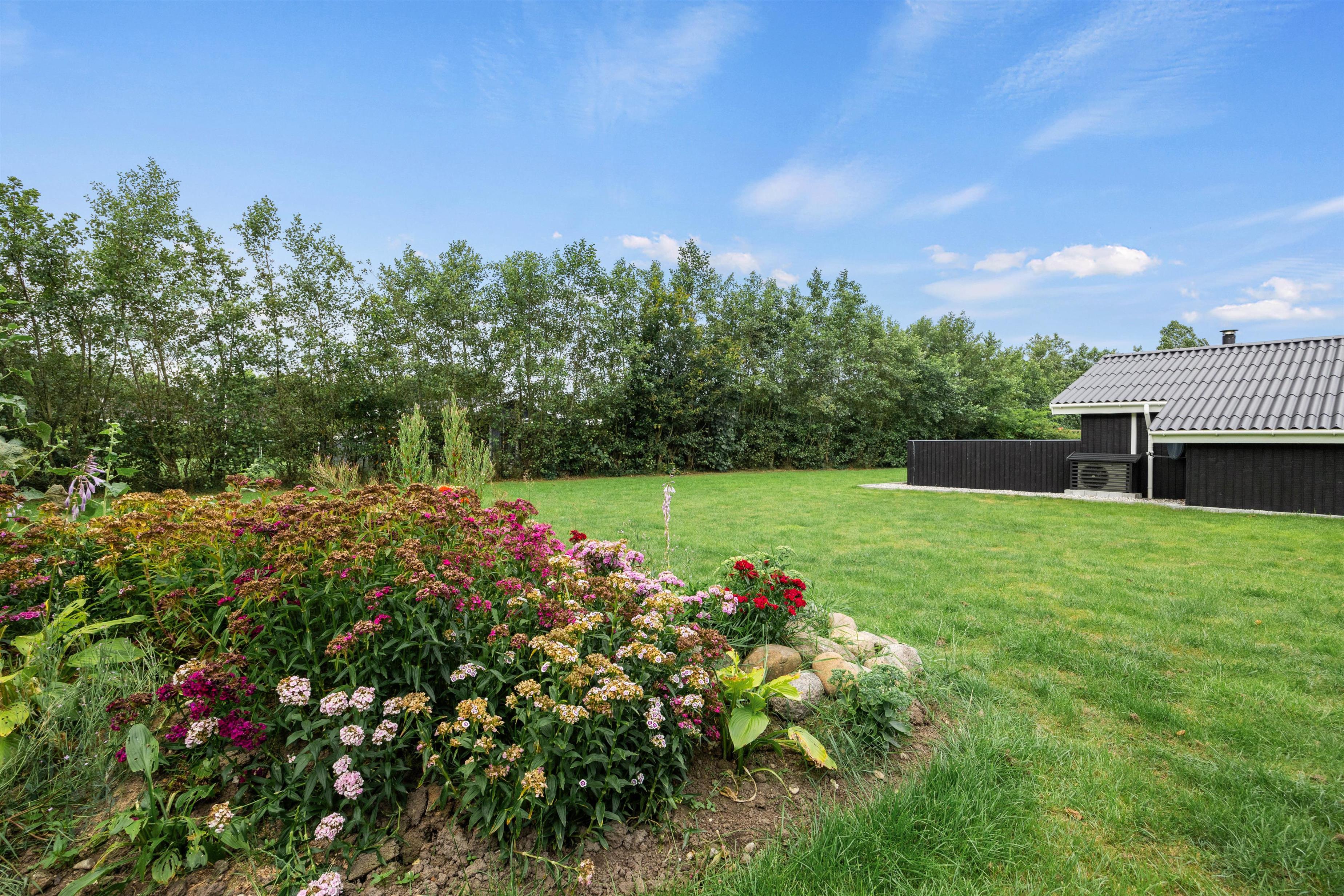 Havemøblerne sikrer, at I kan sidde komfortabelt og nyde et godt måltid sammen. Fra den lukkede terrasse har I adgang til en stor plænegrund på 1300m², der indbyder til spil og leg for både store og små. Det er det perfekte sted for en sjov dag udendørs med hele familien.