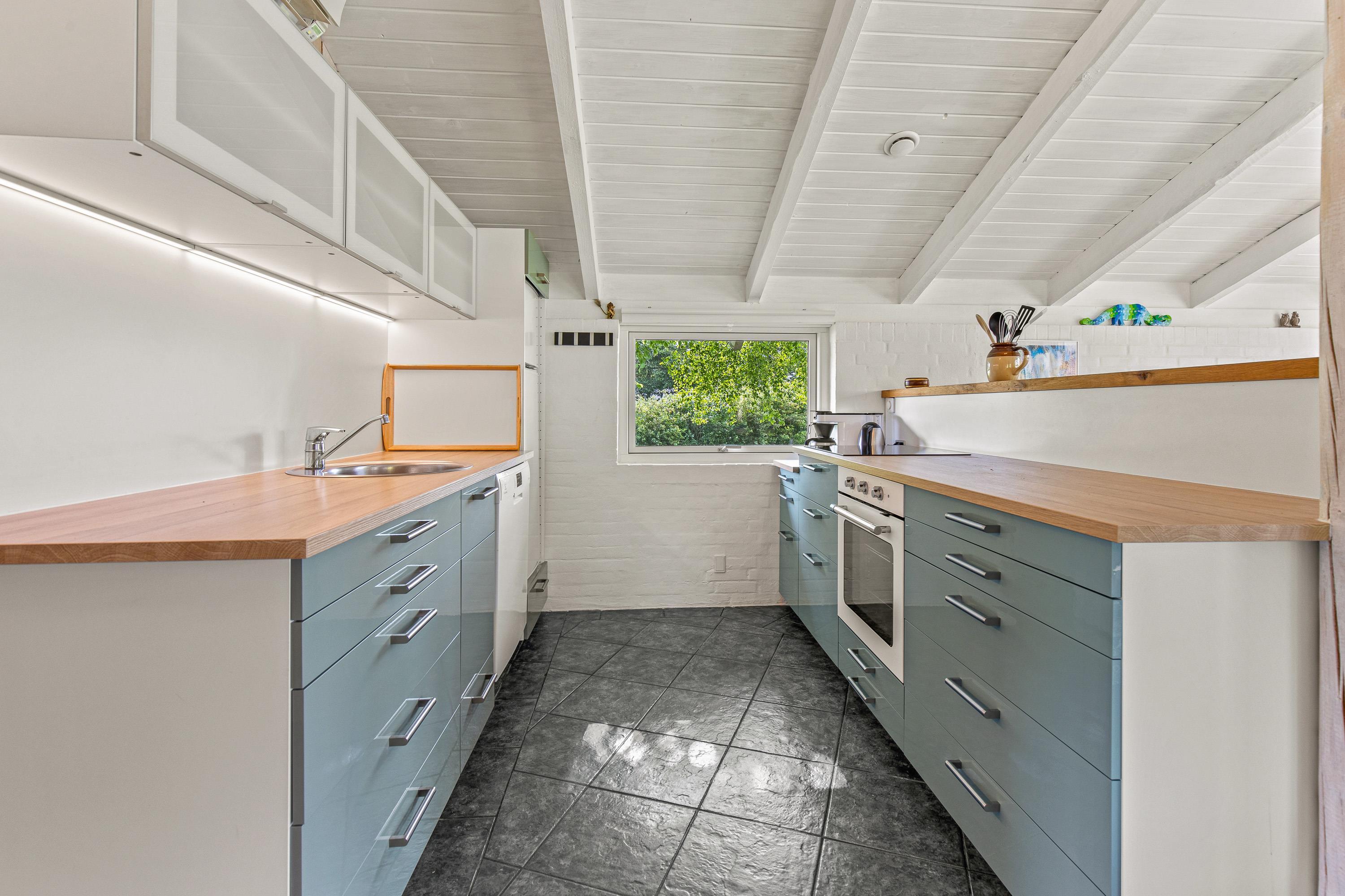 Badeværelset er indrettet med moderne bekvemmeligheder og gulvvarme, der sikrer en behagelig start på dagen. En integreret vaskemaskine gør det nemt at håndtere tøjvask, mens opvaskemaskinen i køkkenet tager sig af opvasken, så I kan bruge tiden på at nyde hinandens selskab.