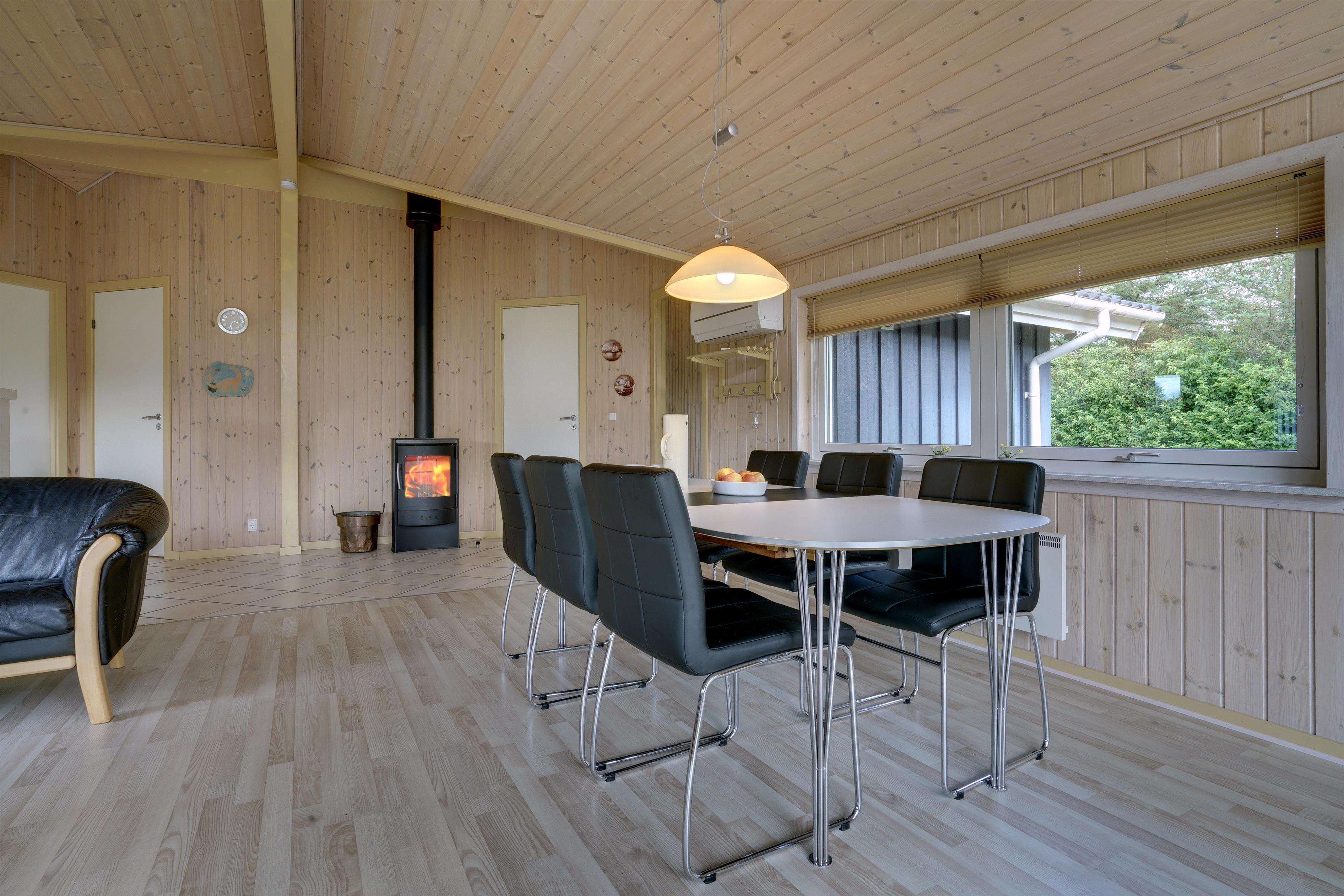 På Husfold 49 finder I et personligt og velholdt feriehus med en god planløsning og med en beliggenhed tæt på vandet. Her er højt til loftet og med god udnyttelse af alle rum. En praktisk entre med vaskemaskine og tørretumbler. Et veludstyret køkken, hvor I sammen kan tilberede mange måltider. Efter en lang dag er der god plads i det 2-personers store spabad. Fra spabadet er der adgang til saunaen. Udover varmepumpe, har huset brændeovn, så der kan spares på varmeudgifterne. I køkkenet finder I alle tekniske hjælpemidler. I vil kunne nyde mange aftenen under den overdækkede terrasse. Til udendørs hygge er der anlagt bålplads i natursten. Til børnene er der gynge og sandkasse. Den store græsplæne er som skabt til boldspil eller en badmintonkamp.