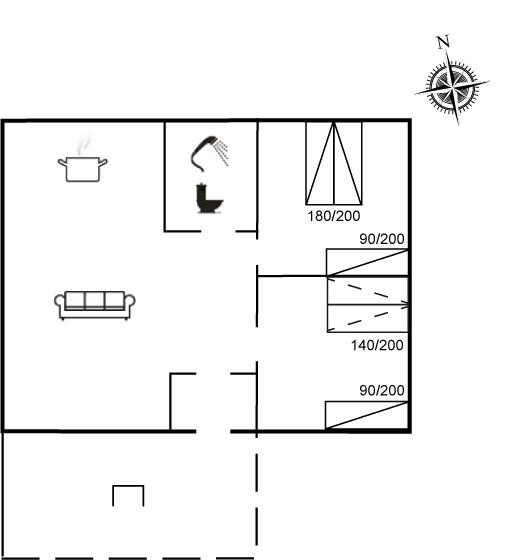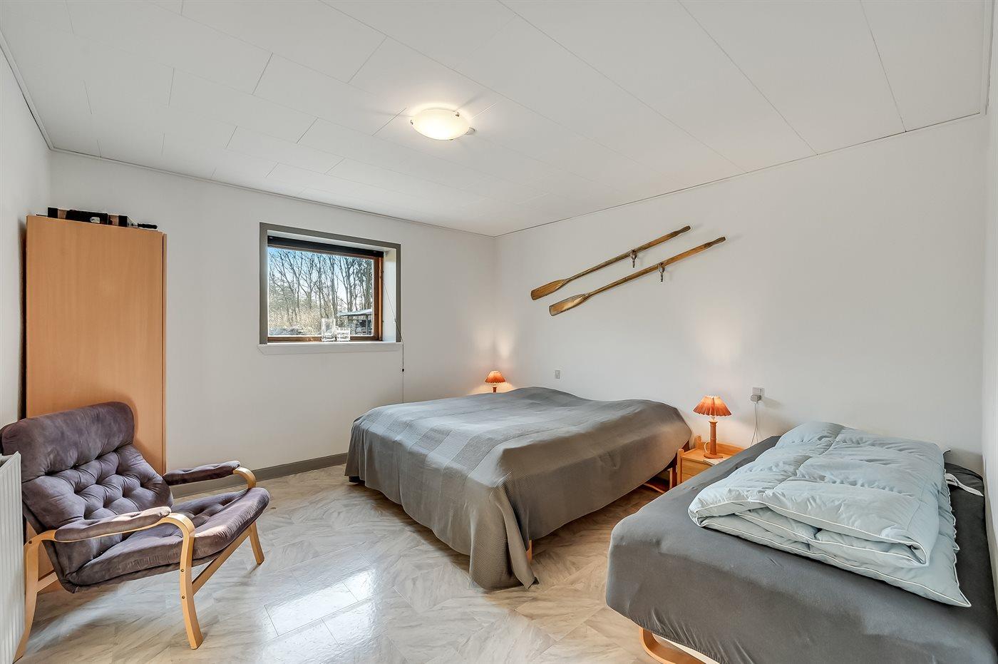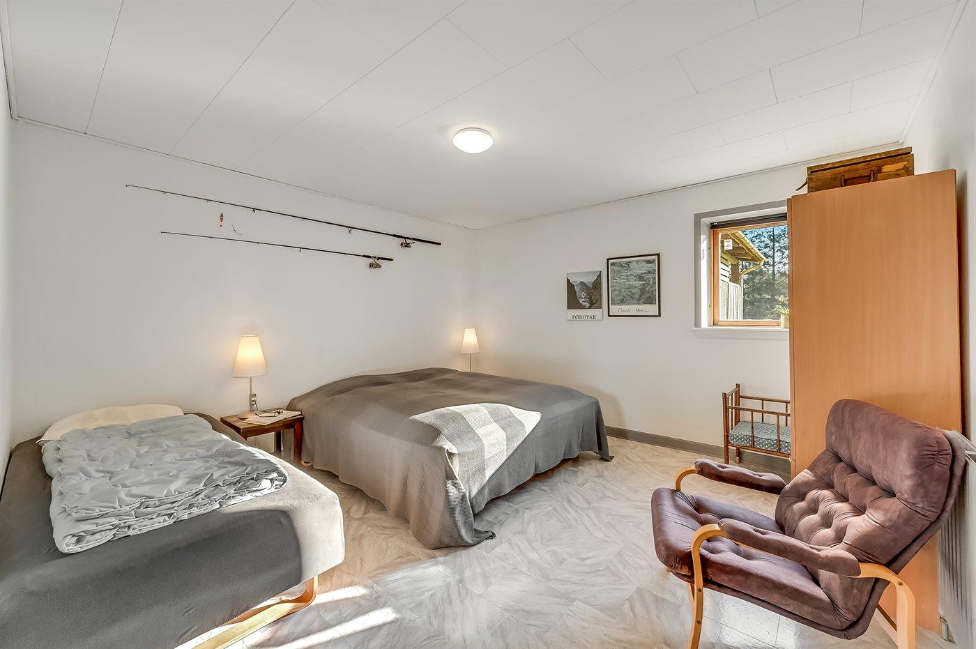 Der er i alt 2 soveværelser. Sovepladserne fordeler sig på: 2 sovepladser i dobbeltseng. 2 sovepladser i enkeltsenge. 2 sovepladser i sovesofa (dobbelt). Derudover er der 1 stk. barneseng.