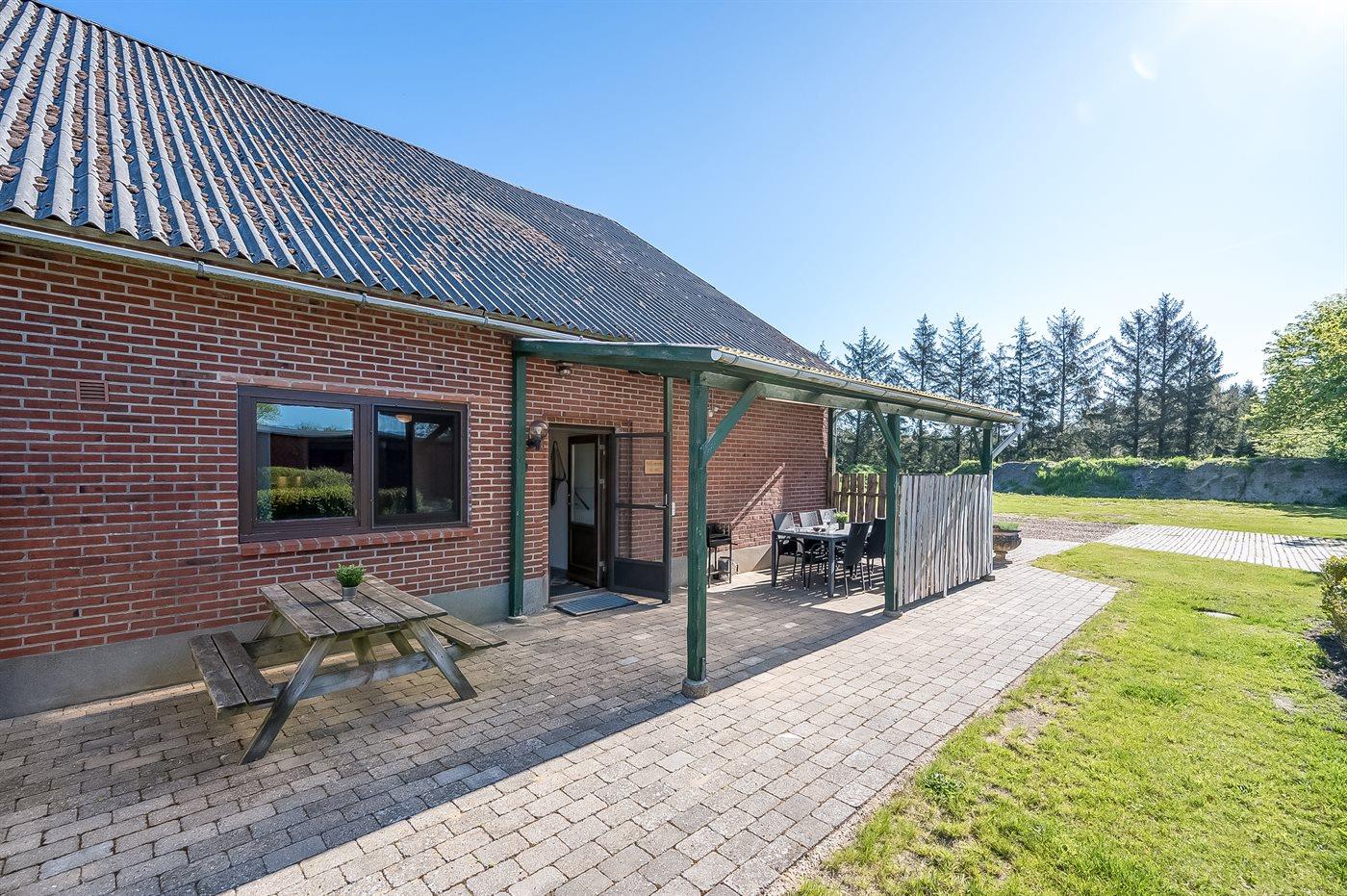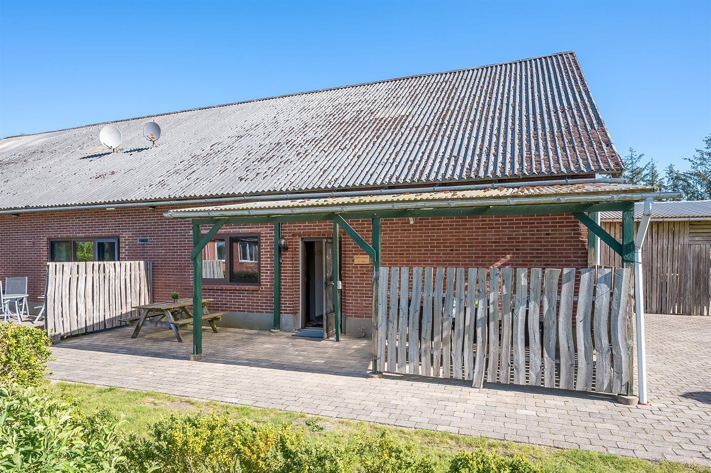 Ferielejlighed i en tidligere landejendom beliggende på en meget stor skov-/naturgrund i et flot naturområde med rigt dyreliv. Huset opvarmes med centralvarme. Til huset hører en overdækket terrasse med havemøbler og grill. Mange fiskemuligheder i omegnen - ca. 1 km til Skjern Å. Fryser til opbevaring af fiskefangsten. El og varme er inkl. i lejeprisen. Ejer bor i nabobygning.